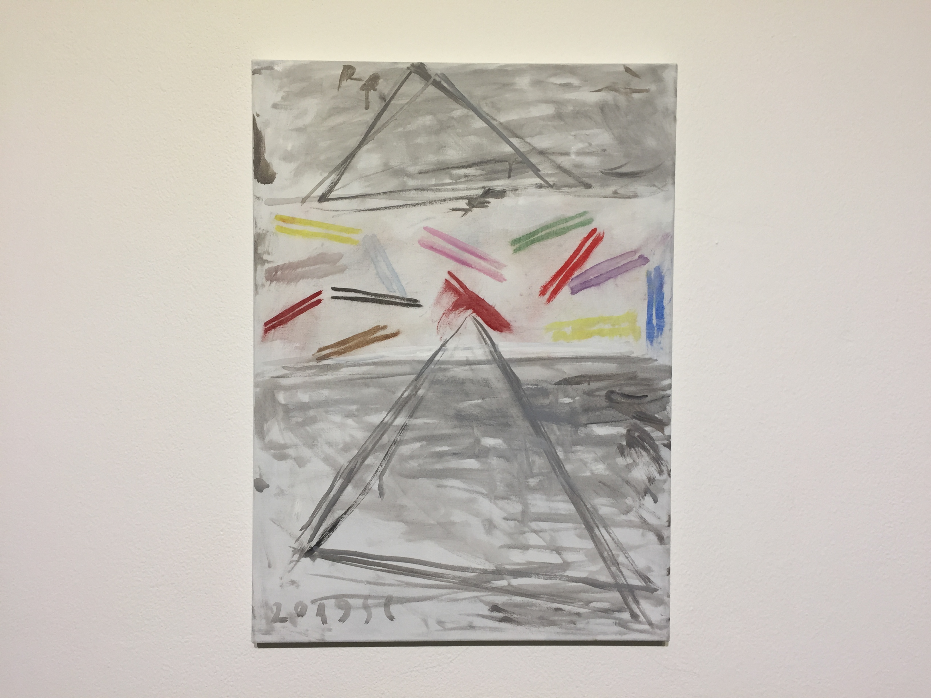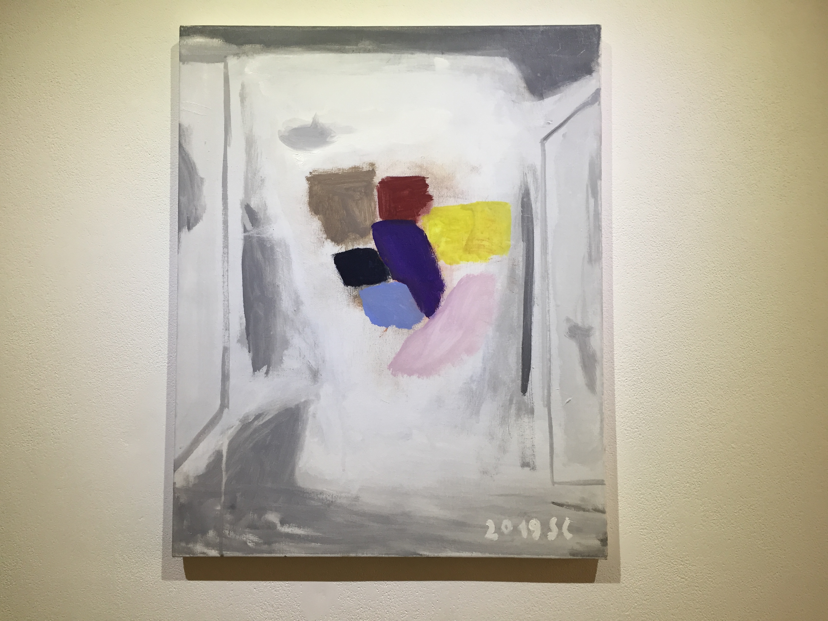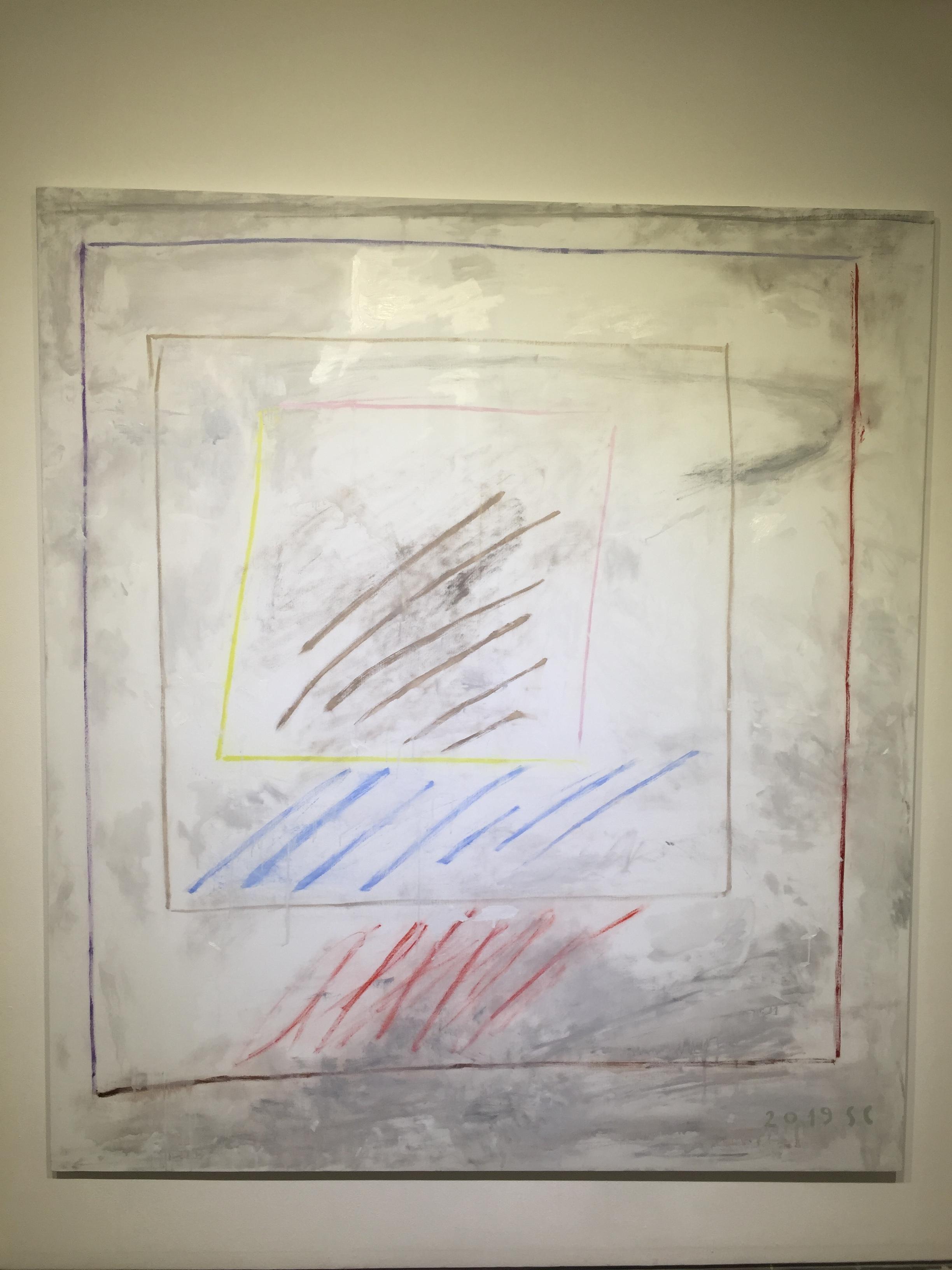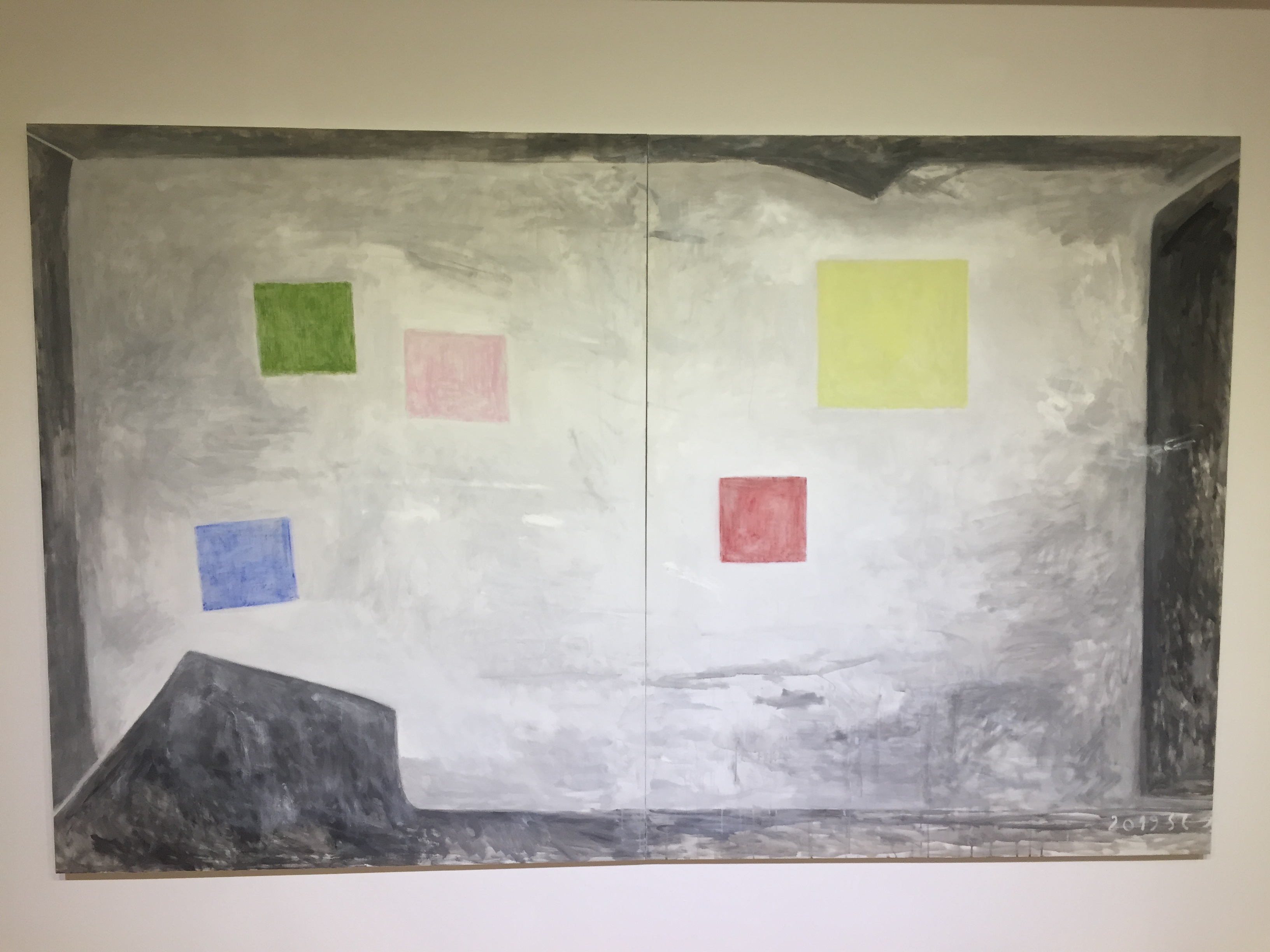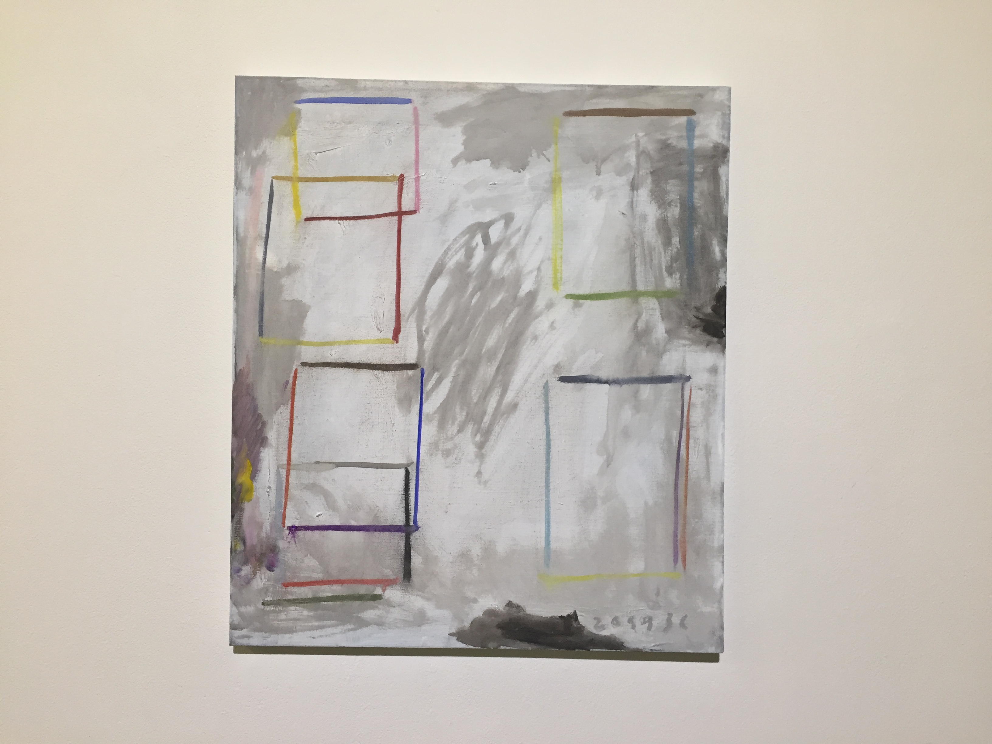 유화물감을 사용한 서양화지만 겹겹이 쌓인 회색바탕에 원색의 선, 면들을 보고 있자니 동양화가 떠오르기도 합니다.