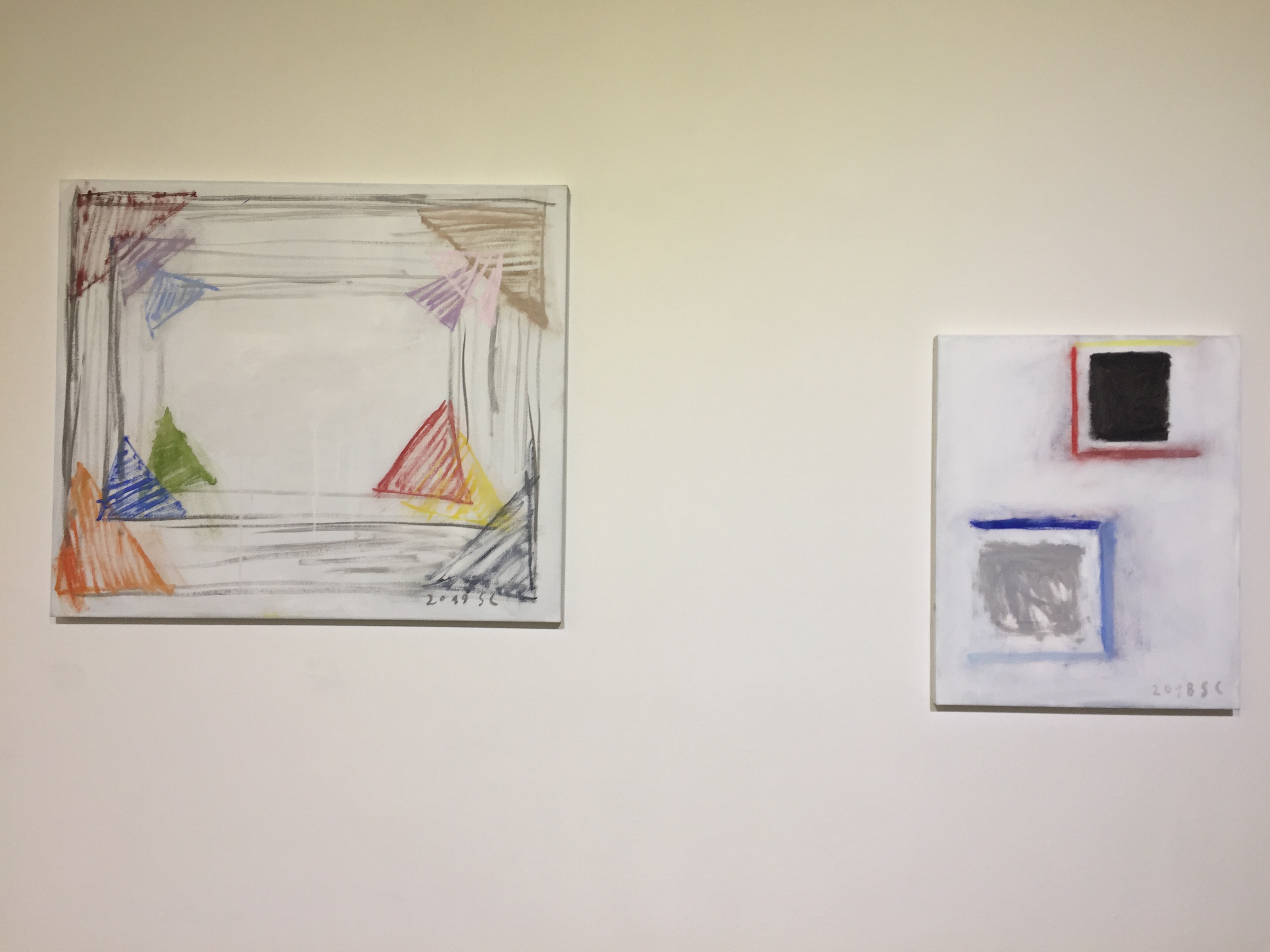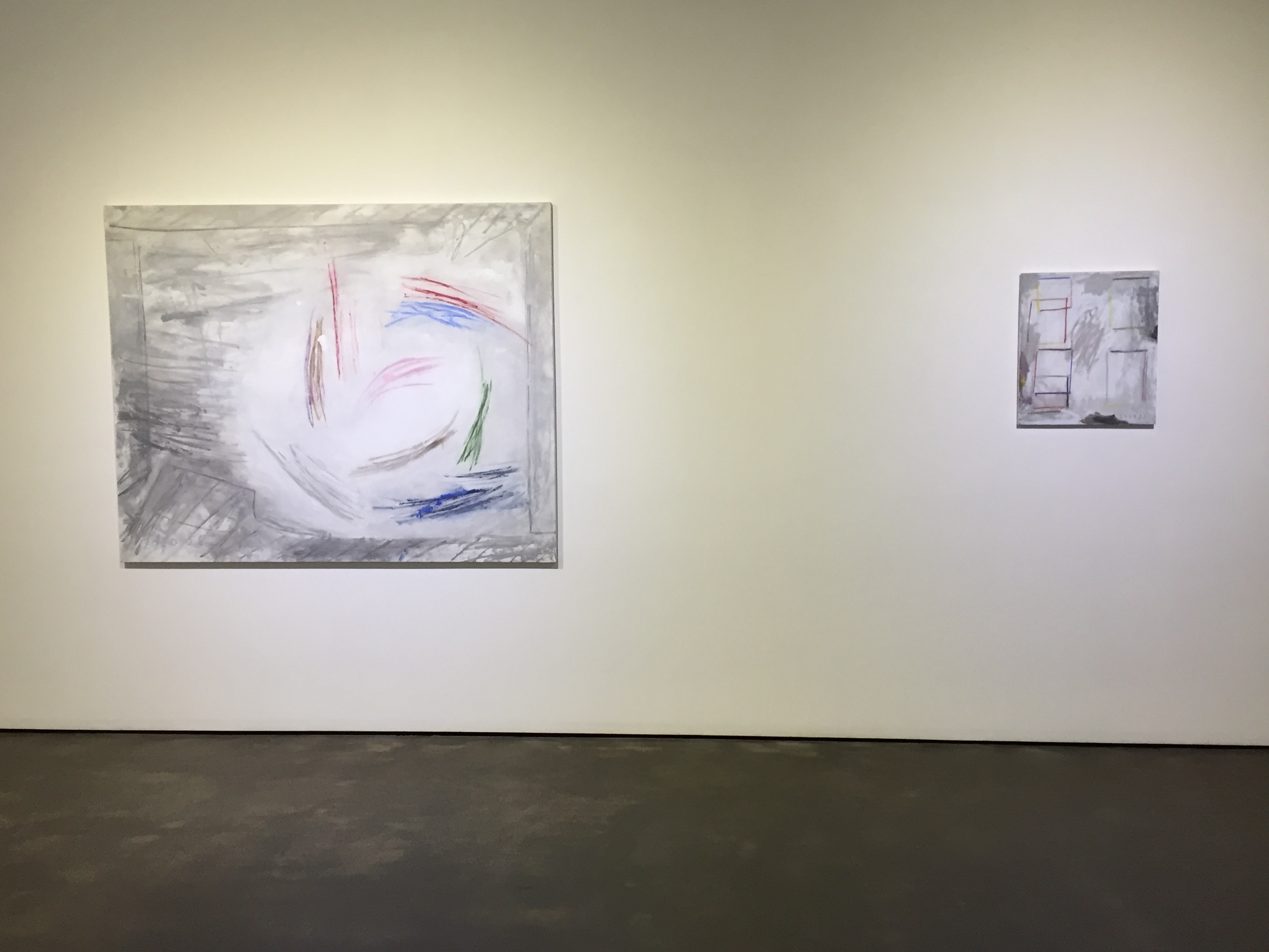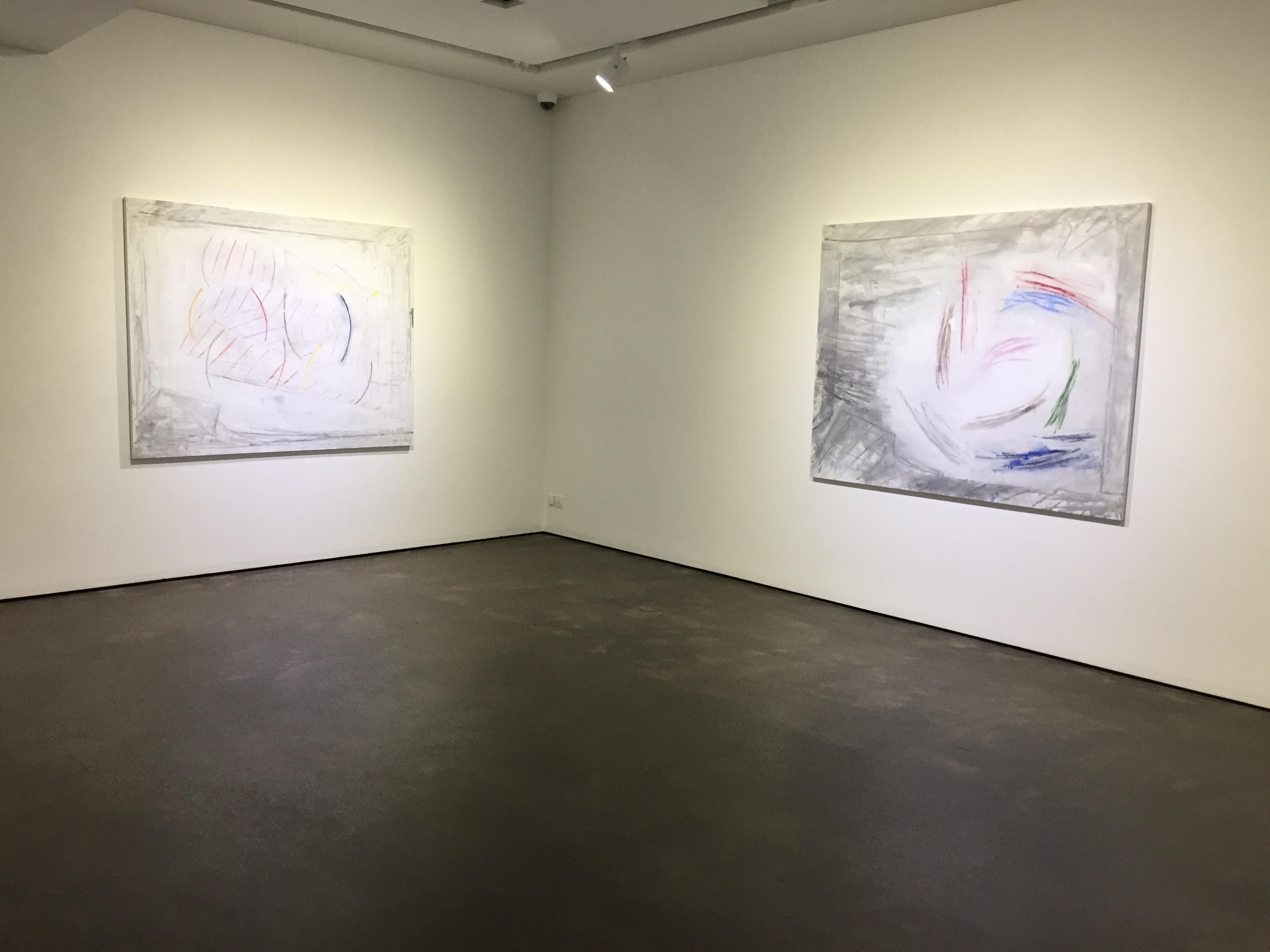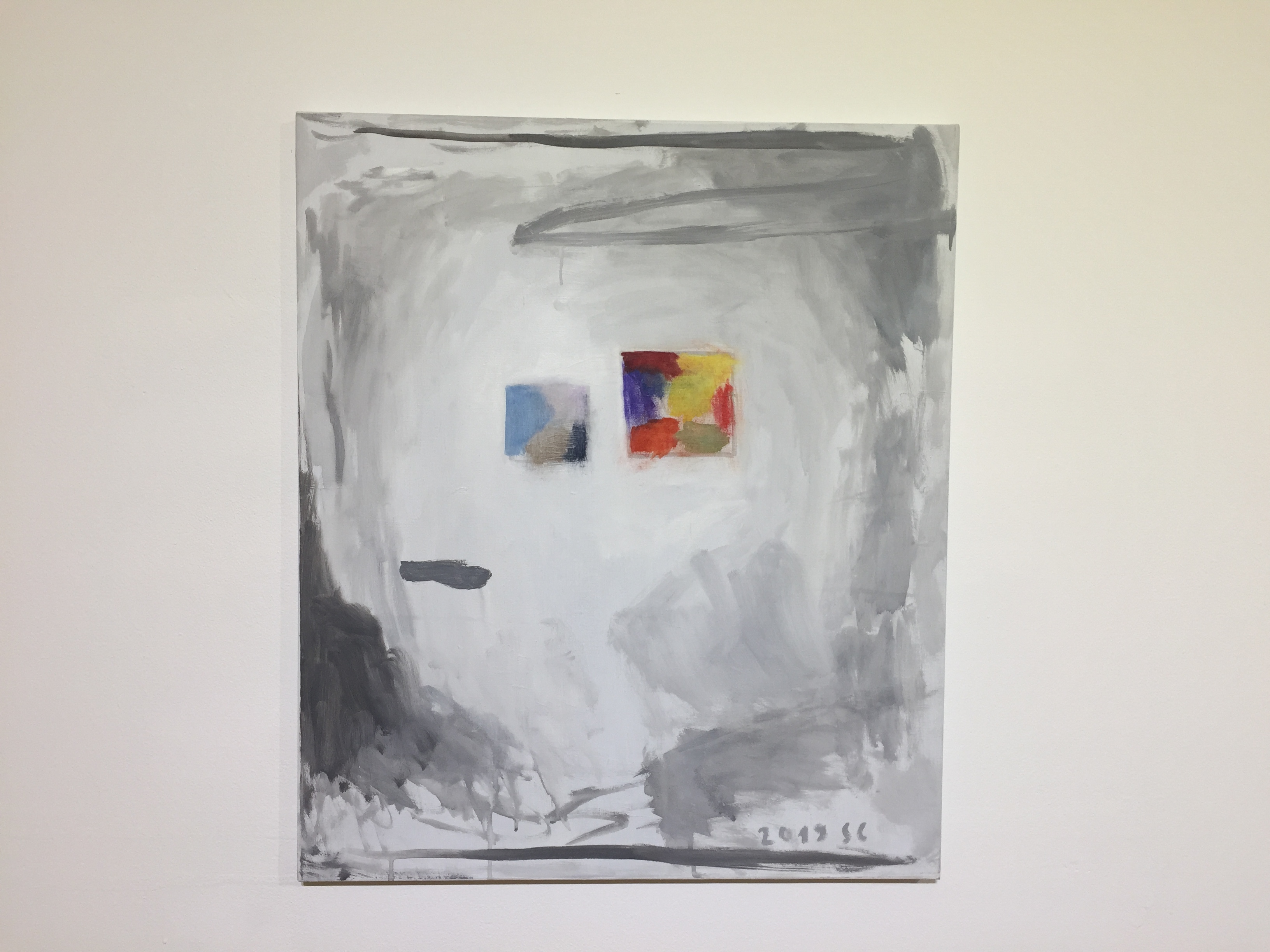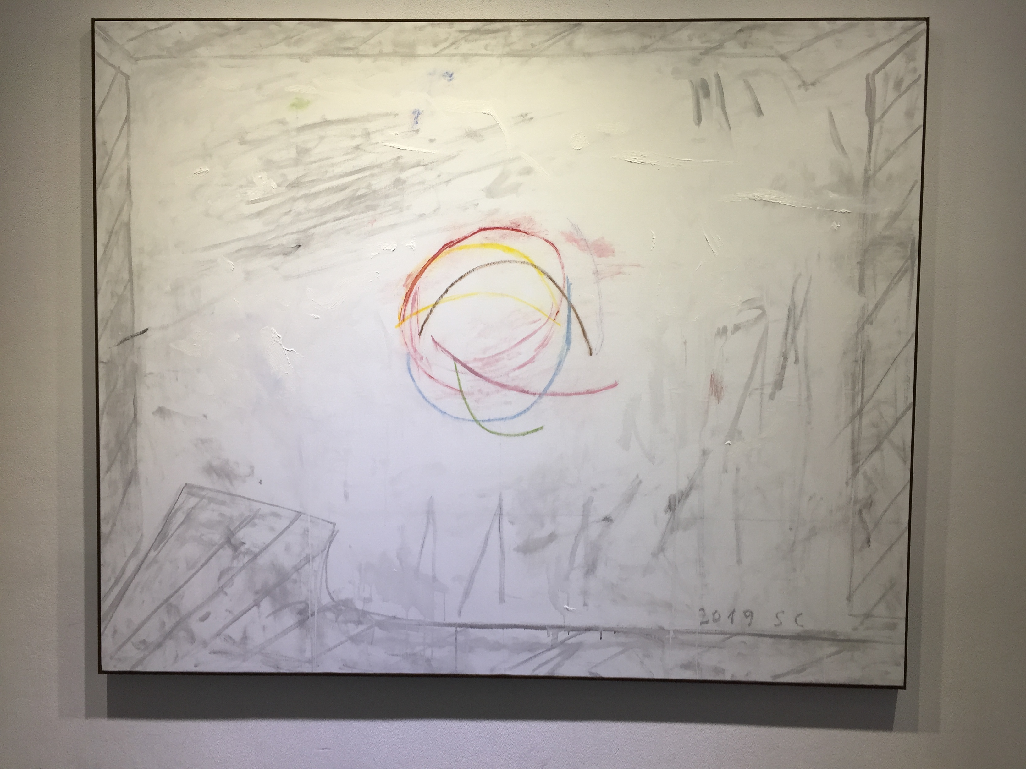 유화물감을 사용한 서양화지만 겹겹이 쌓인 회색바탕에 원색의 선, 면들을 보고 있자니 동양화가 떠오르기도 합니다.