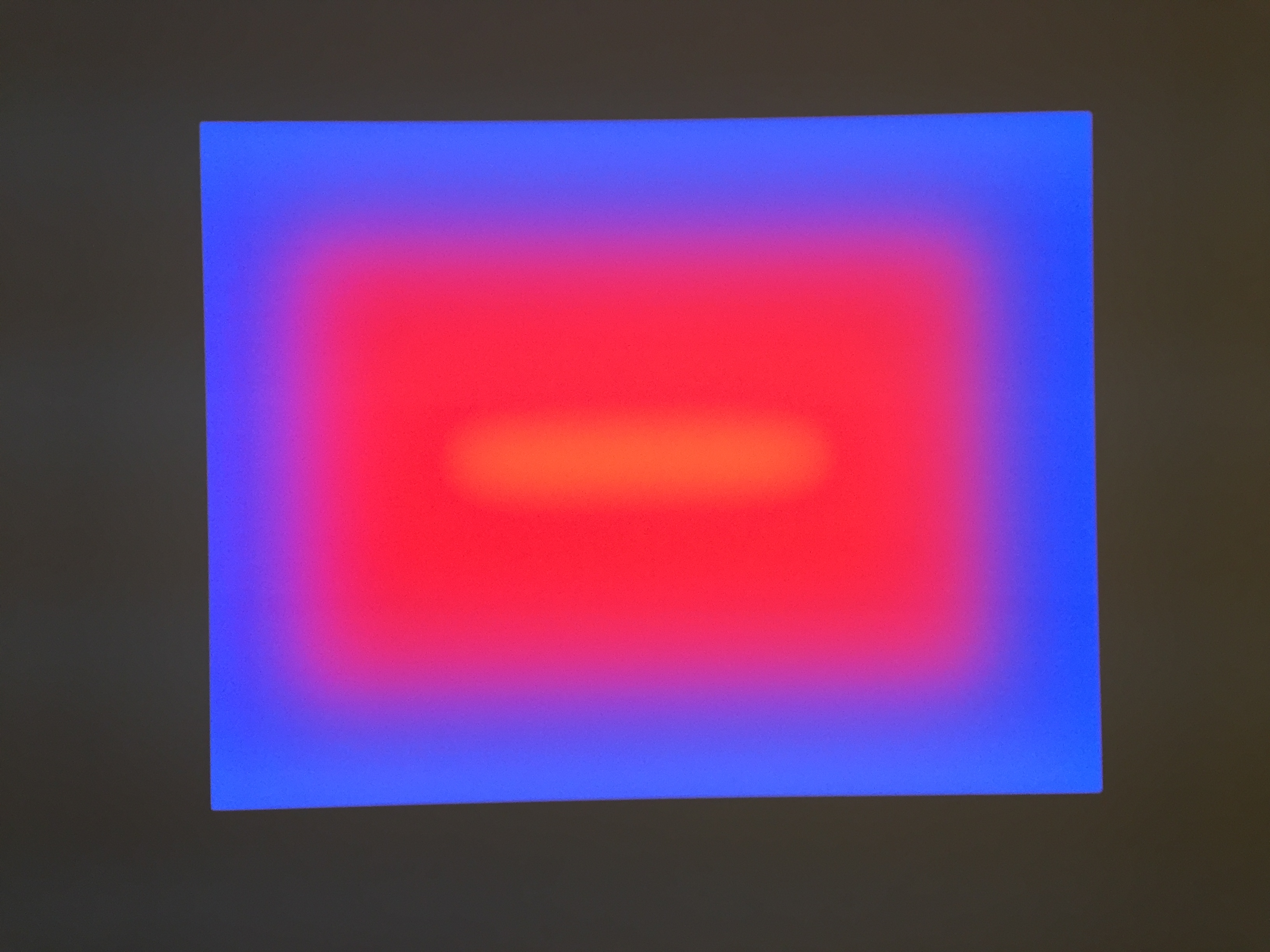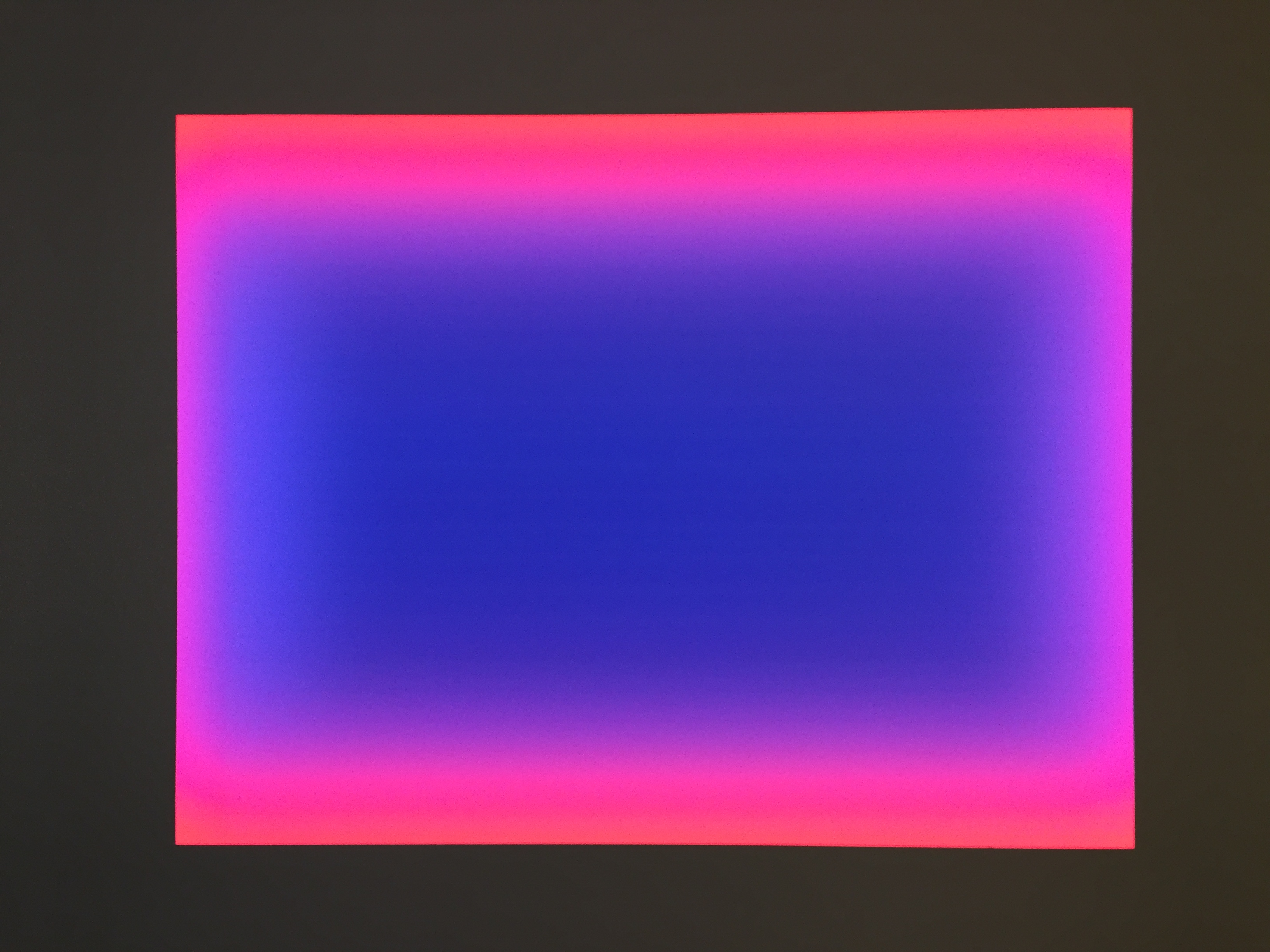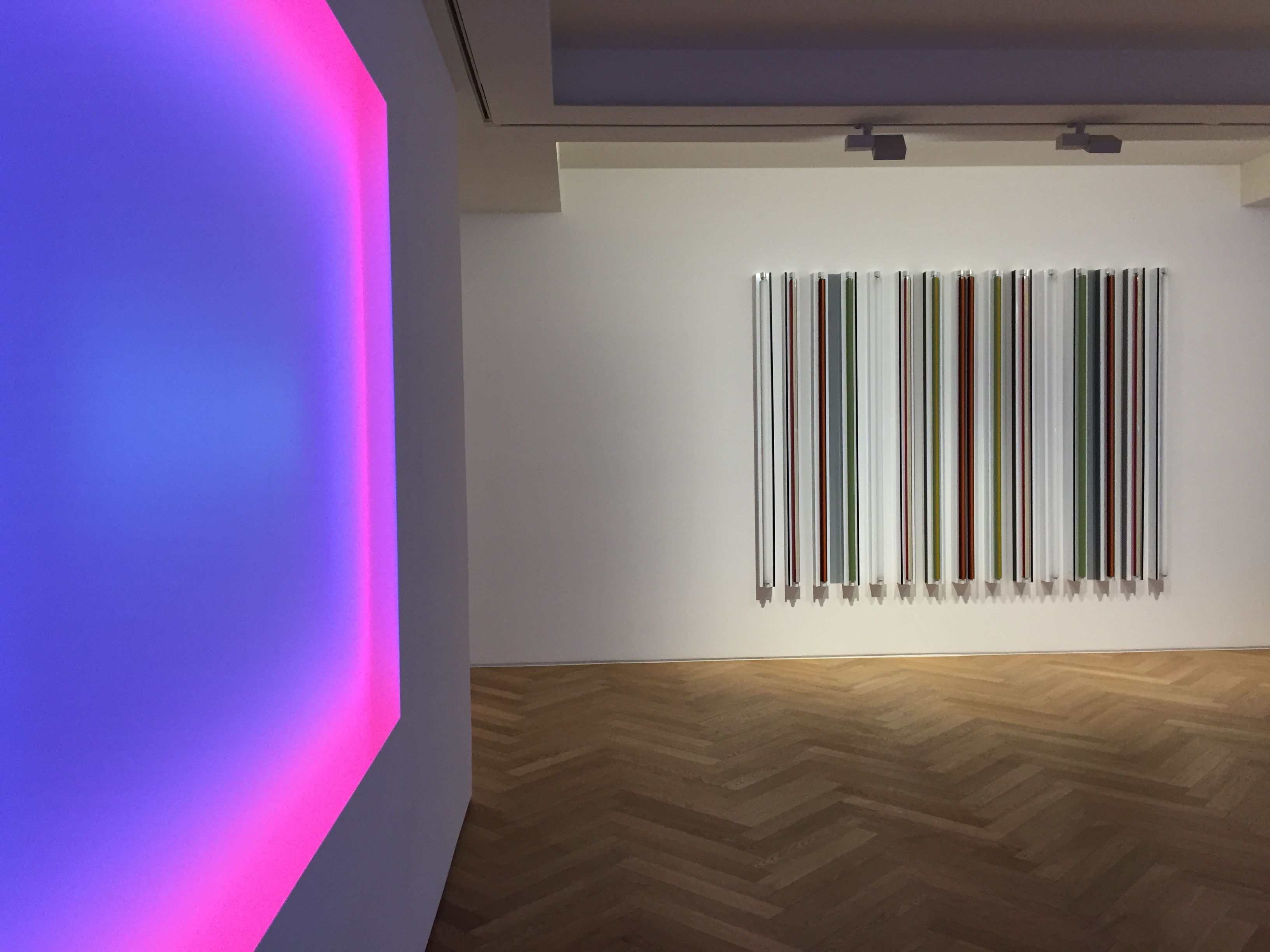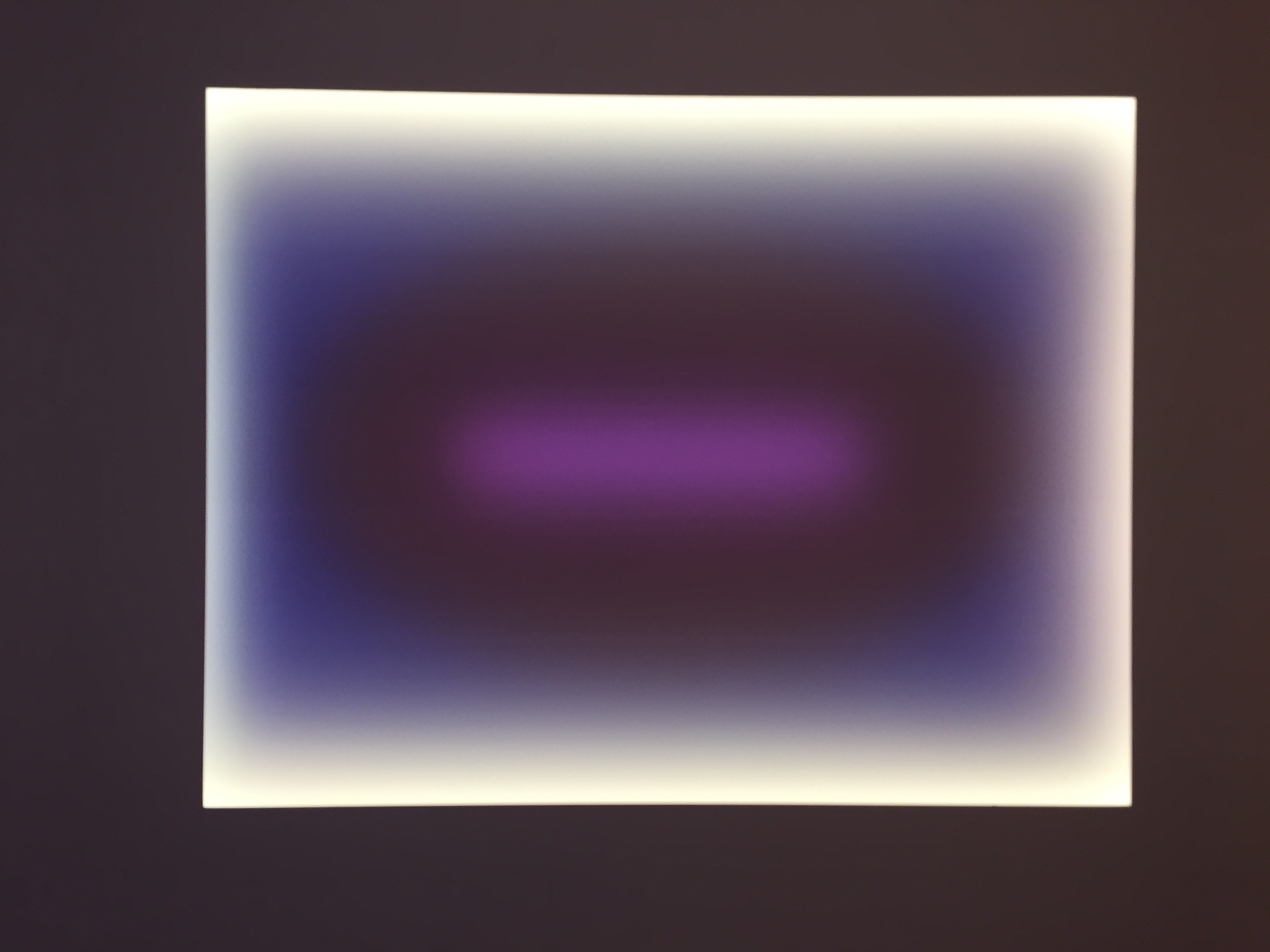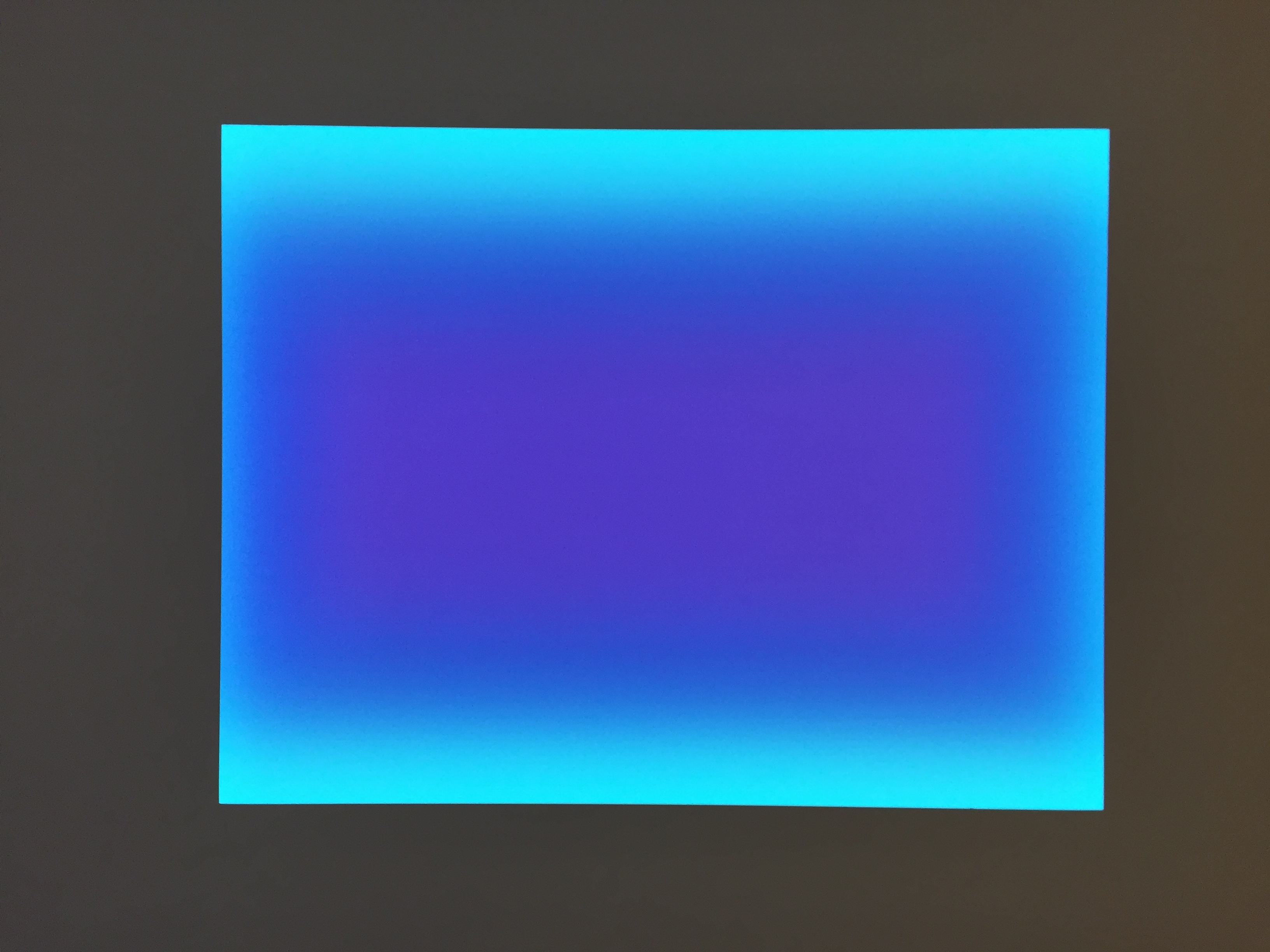 전시장 한쪽 벽을 채운 제임스 터렐(77)의 LED 설치작품 ‘아틀란티스, 미디움 렉탱글 글래스’(Altantis, Medium Rectangle Glass)는 하늘이 가진 무한한 색채의 경이로움을 무려 2시간 30분 동안 펼쳐보입니다.