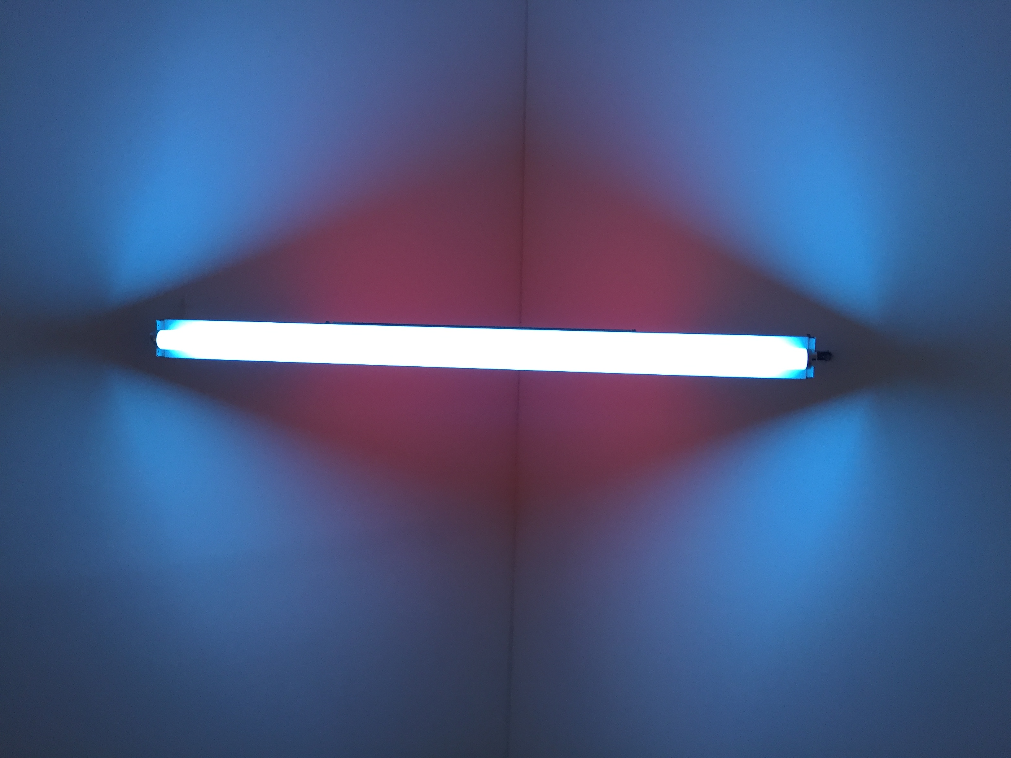 뉴욕 출신 미니멀리즘 예술 거장 플래빈은 전시장 모서리에 형광등을 설치해 마름모꼴 빛을 만들어냅니다.