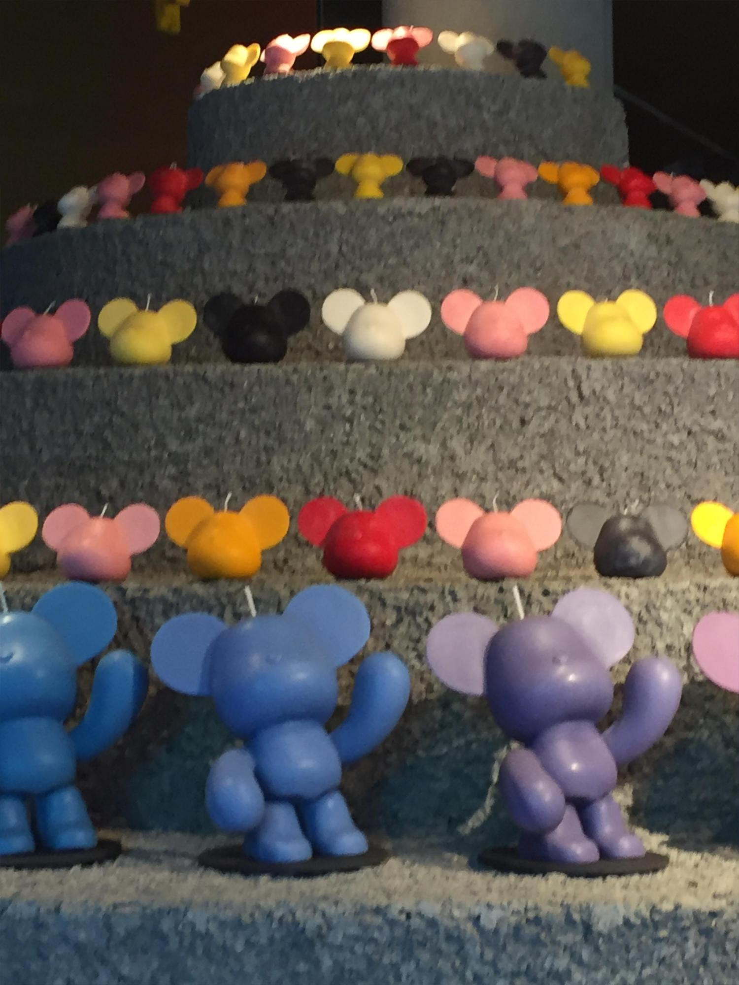 중앙에 초로 만든 곰인형들이 층층이 계단형의 공간에 전시되어 있습니다.