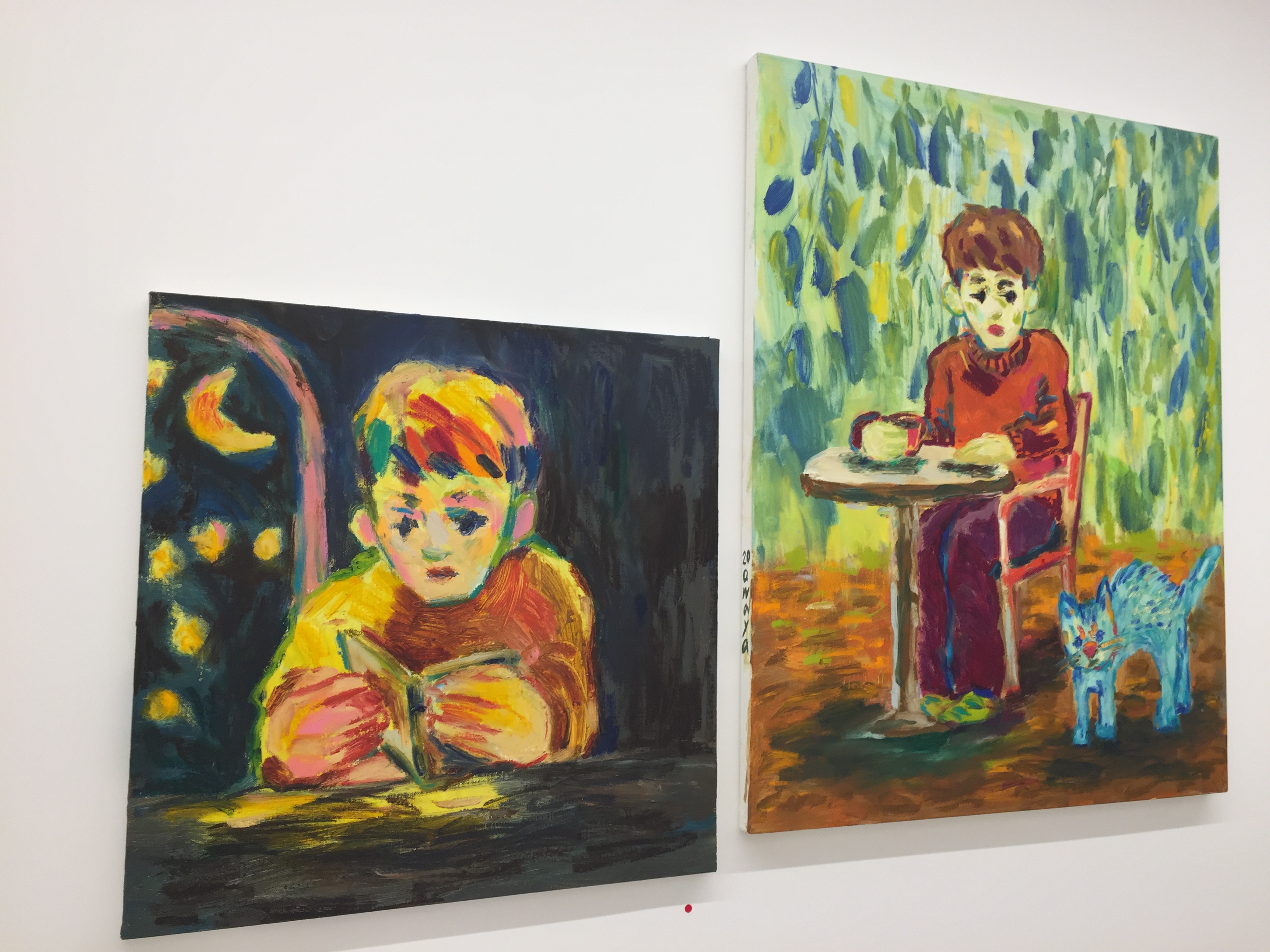 전시장에 들어서니 많은 사람들이 있었어요. 그림 옆에 빨간딱지도 많이 붙어 있어 작가님의 인기를 실감할 수 있었습니다. 그림들이 색감이 화려합니다. 쉽게 어울리기 힘들법한 색들이지만 작가님의 그림 속에서 조화롭게 신선하게 다가왔습니다.