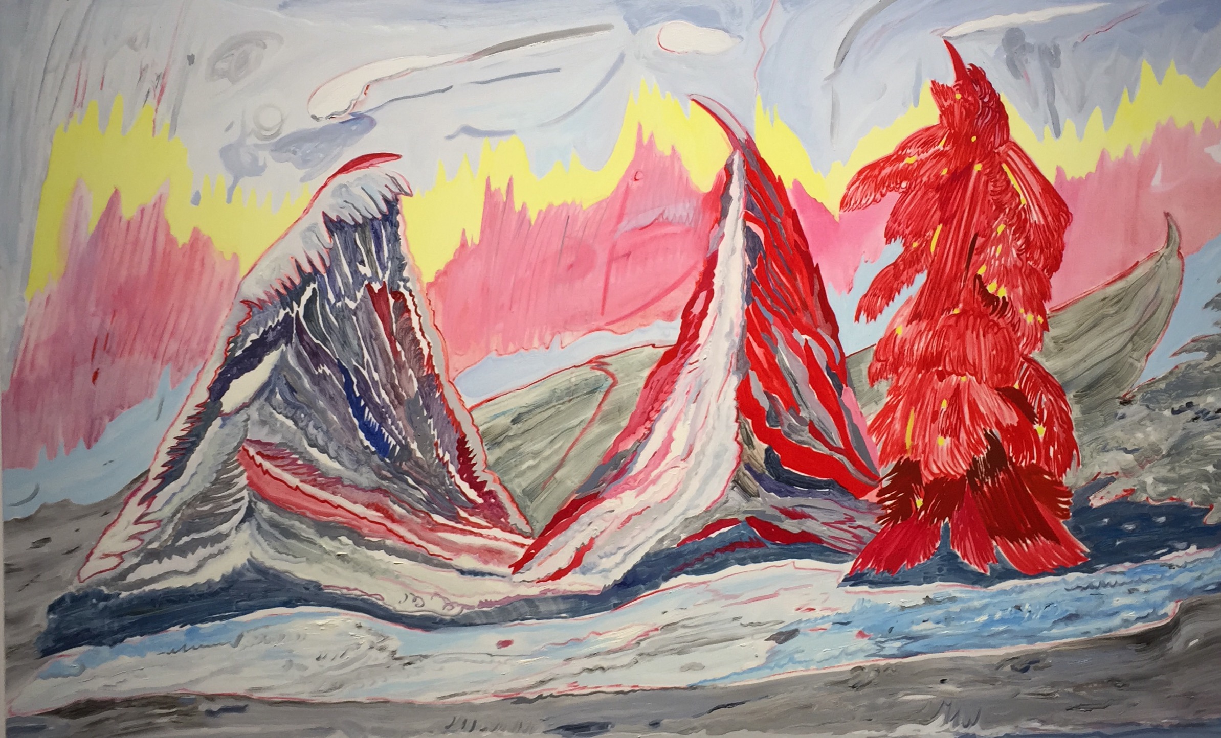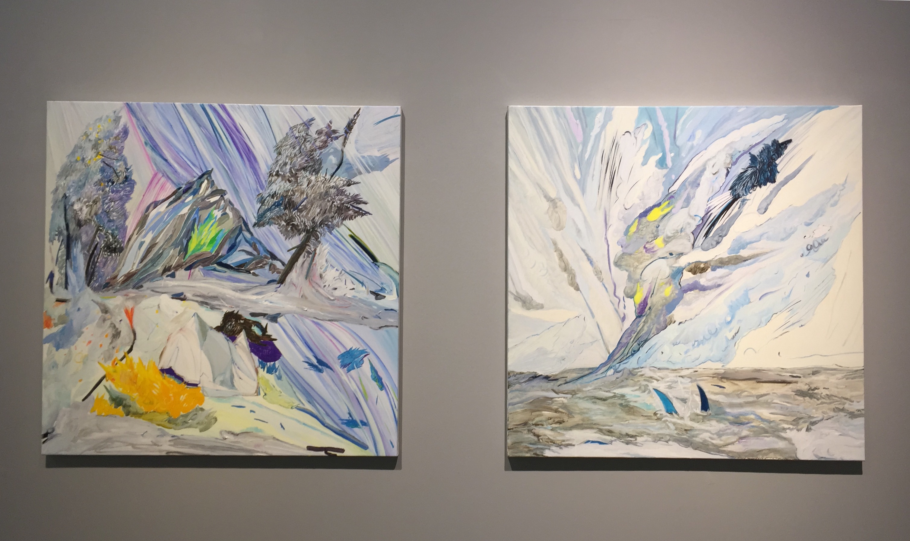 학교나 직장 등 사람들과 어울리며 생활하기 때문에 사람과의 관계가 중요한데요. 작가님은 이번 전시에서 관계에 대해 이야기하고 있습니다. '이 기분은 가짜', '통제권', '가짜 산', '내가 잘 숨겨줄게', '살아있을 때 안 좋은 예', '나를 보지 마세요' ,'Angry fish'이런 제목만 봐도 관계를 맺으면서 발생하는 문제, 현재, 감정 등이 느껴졌습니다.