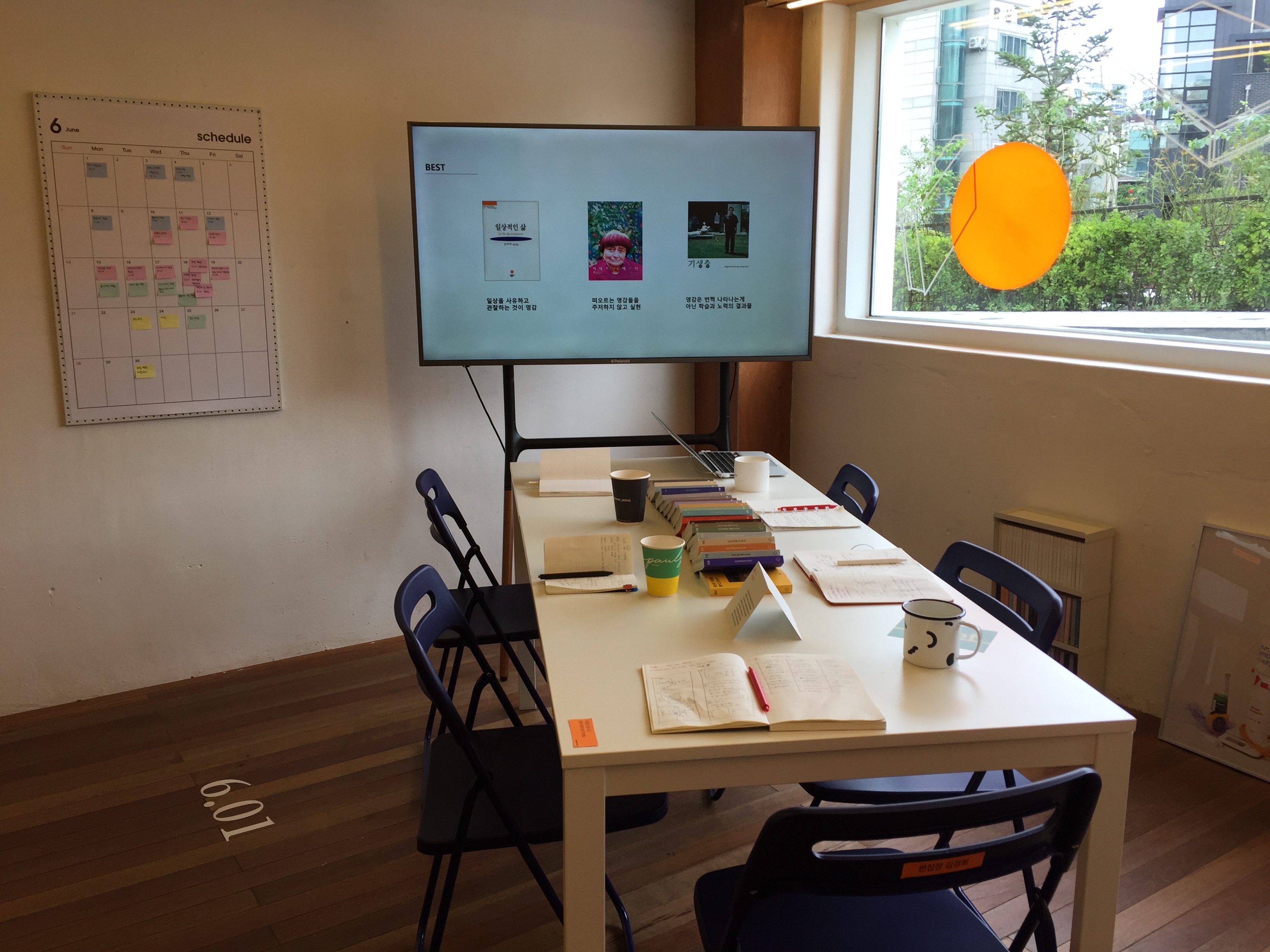 컬체 원고를 작성하는 에디터의 책상입니다.