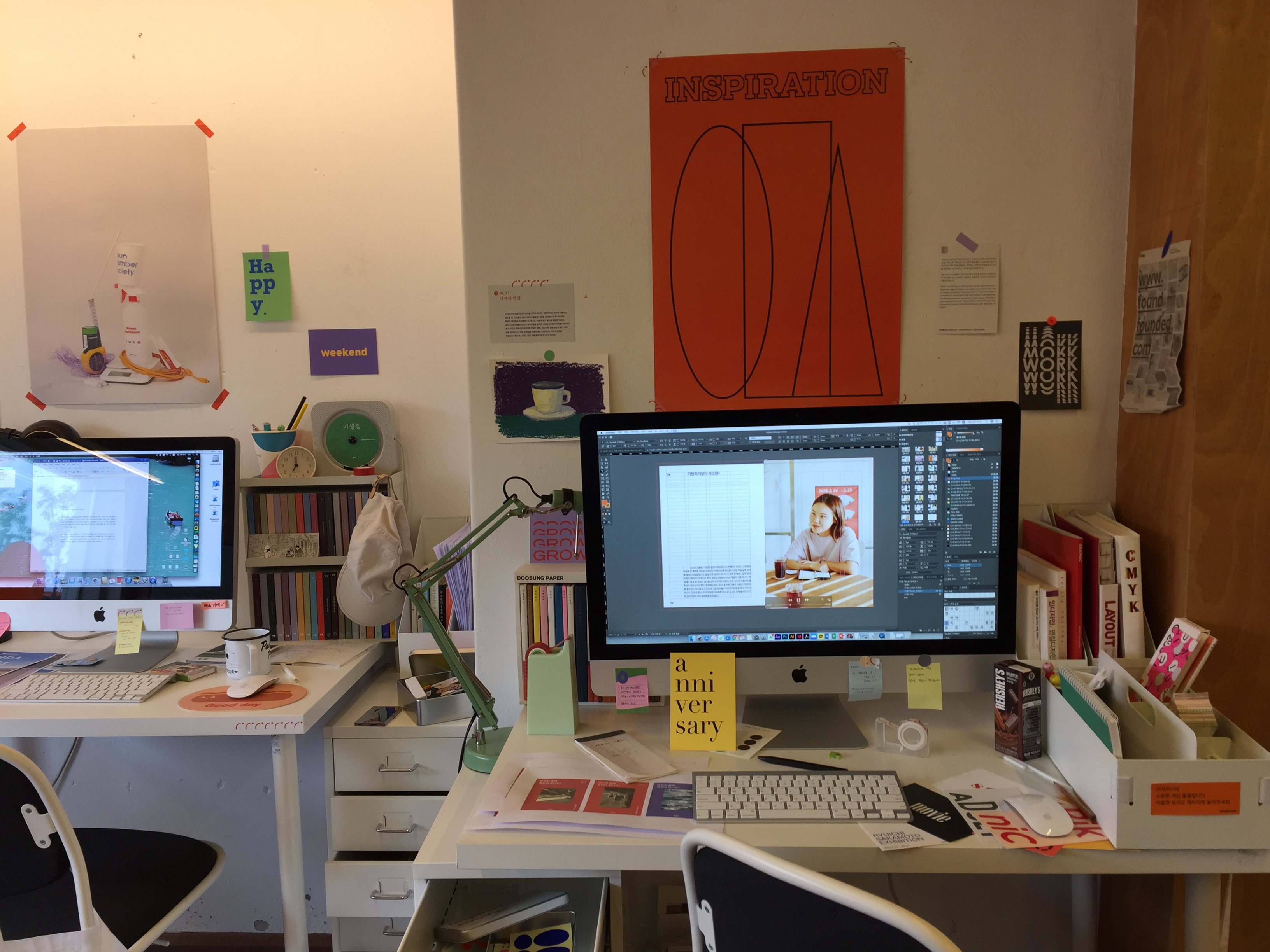 81호 표지 컬러 시안을 만들고 있는 디자이너의 책상입니다.