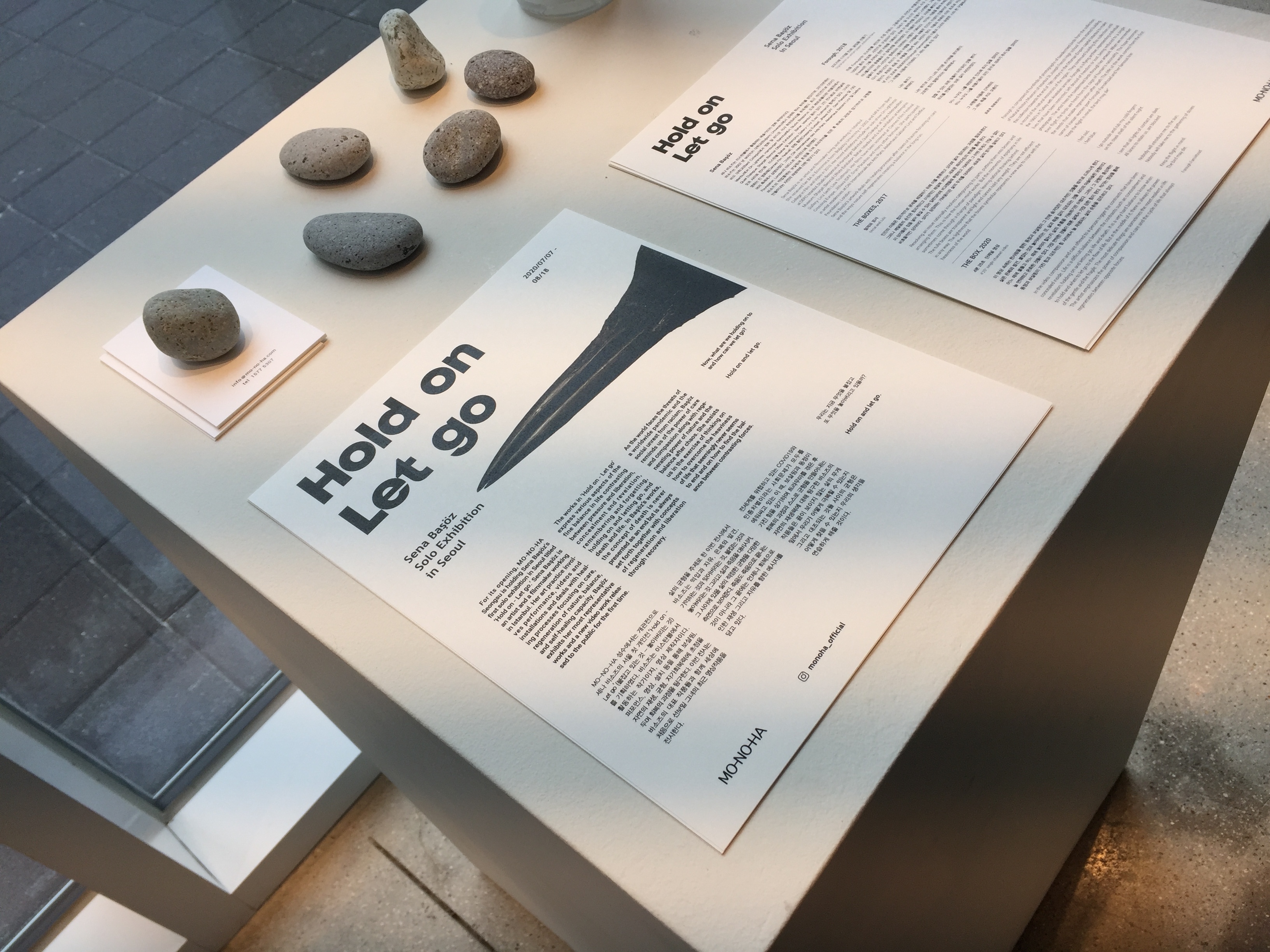 MO-NO-HA 성수에서는 개관전으로 세나 바소즈의 서울 첫 개인전 'Hold on Let go(붙잡고 있는 것 - 놓아버리는 것)'를 기획하였다. 바소즈는 이스탄불에서 활동하는 작가이자, 영상 제작자이다. 퍼포먼스, 영상, 설치 등을 통해 보살핌, 자연의 재생, 균형, 자기 회복력에 초점을 두며 회복의 과정을 탐구한다. 이번 전시는 바소즈의 대표 작품들과 함께 세상에 처음으로 선보일 그녀의 최근 영상작품을 전시한다.