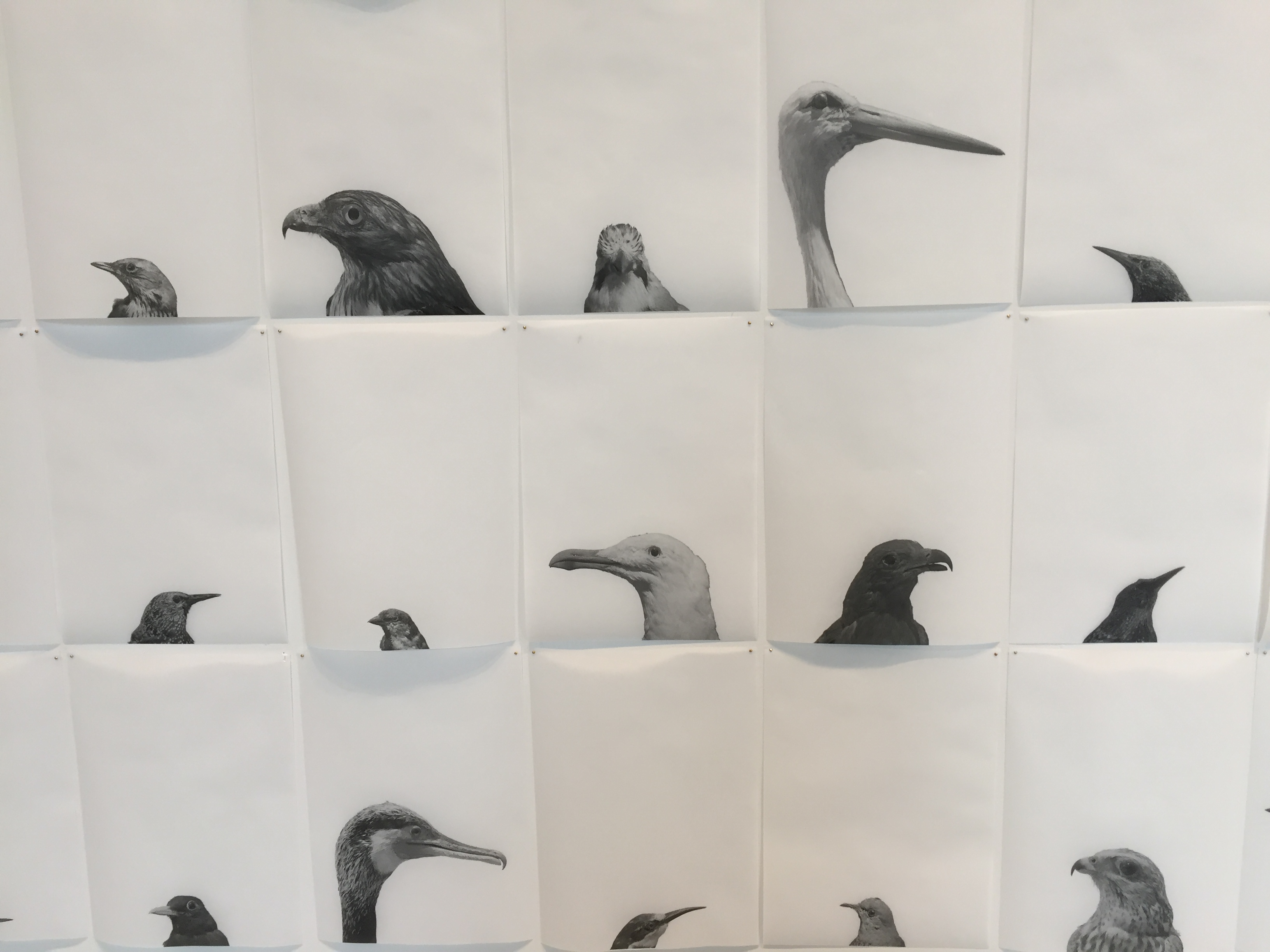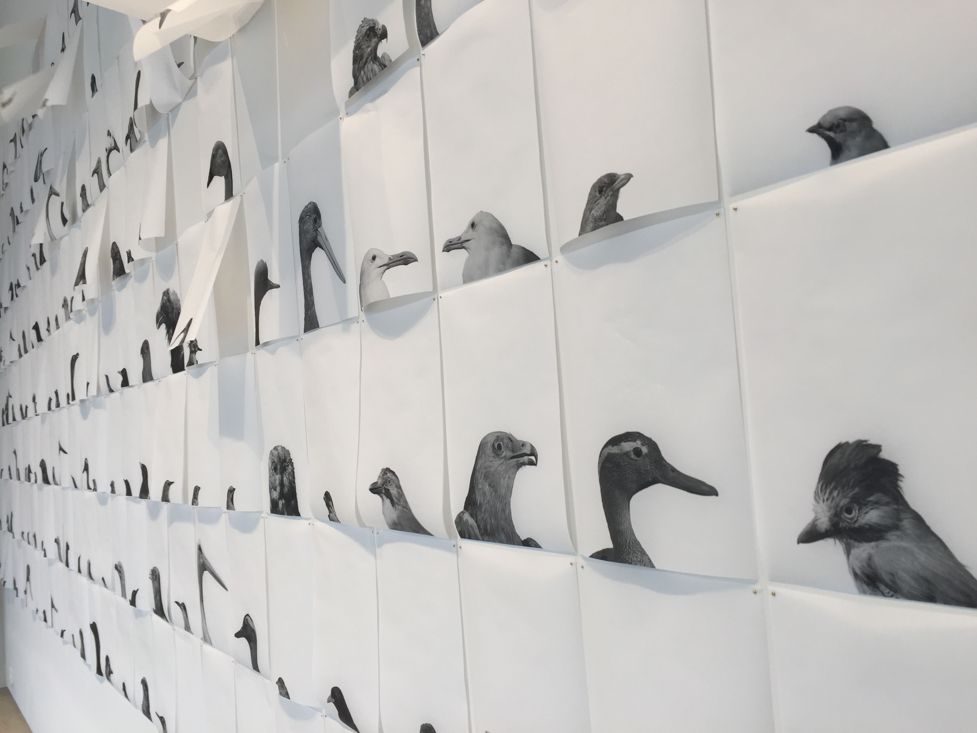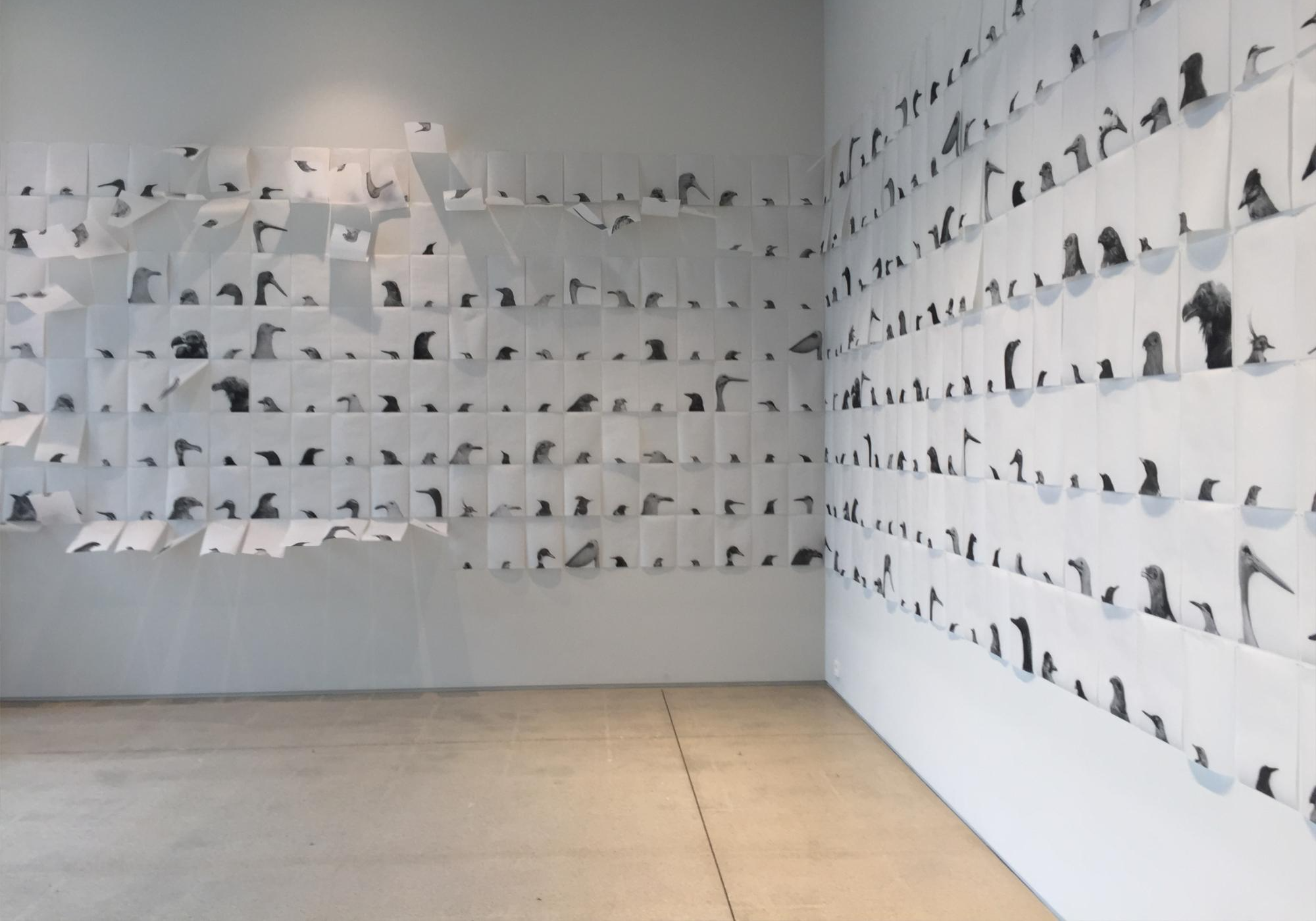 박제 조류사진이 인쇄된 종이가 돌아가는 공업용 선풍기가 돌아갈 때마다 펄럭이는데요.