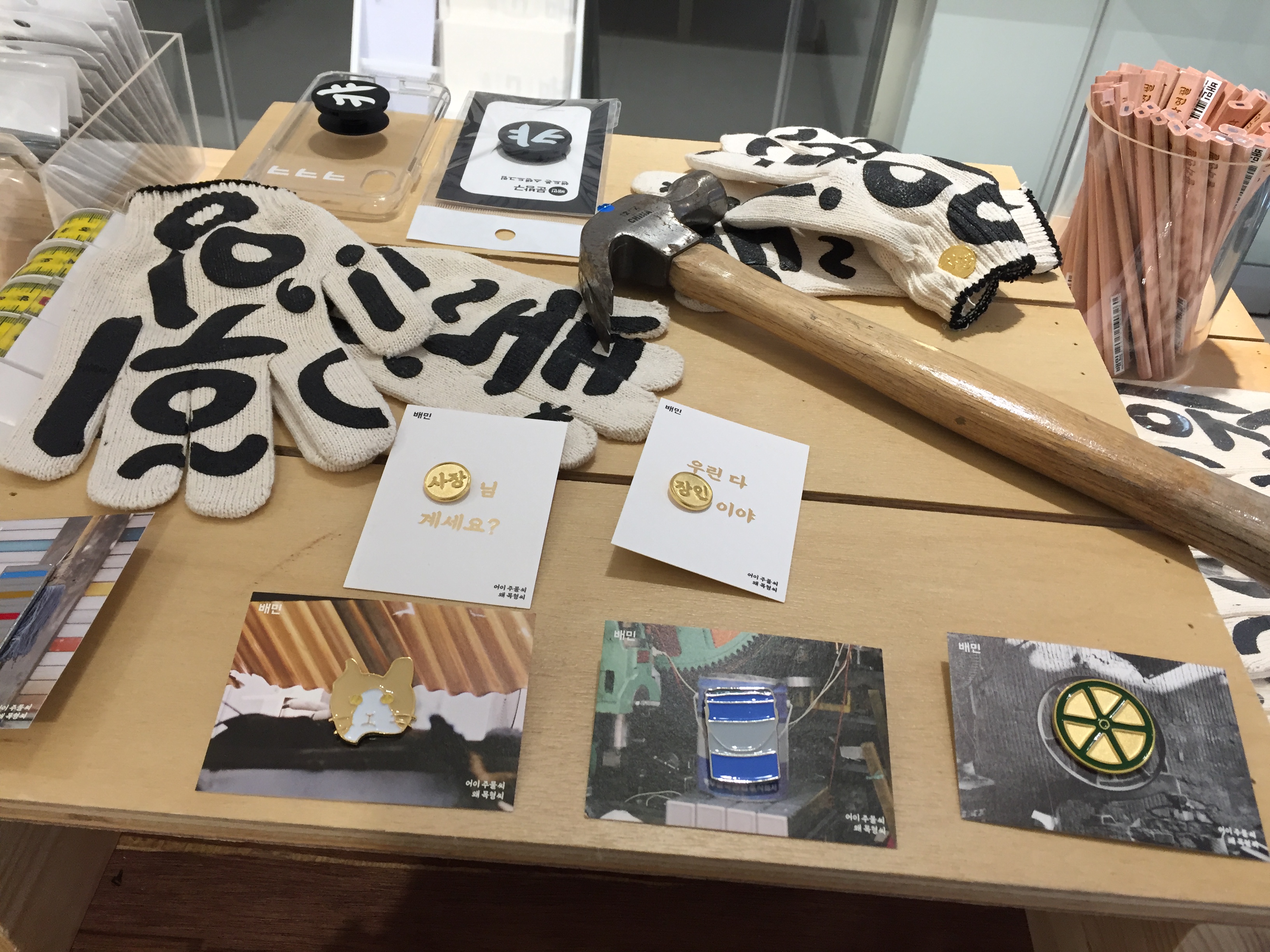 이번 전시의 기념품을 구입할 수 있는 곳입니다. 장인이 만든 기념품과 스티커를 공짜로 가져갈 수 있어요.