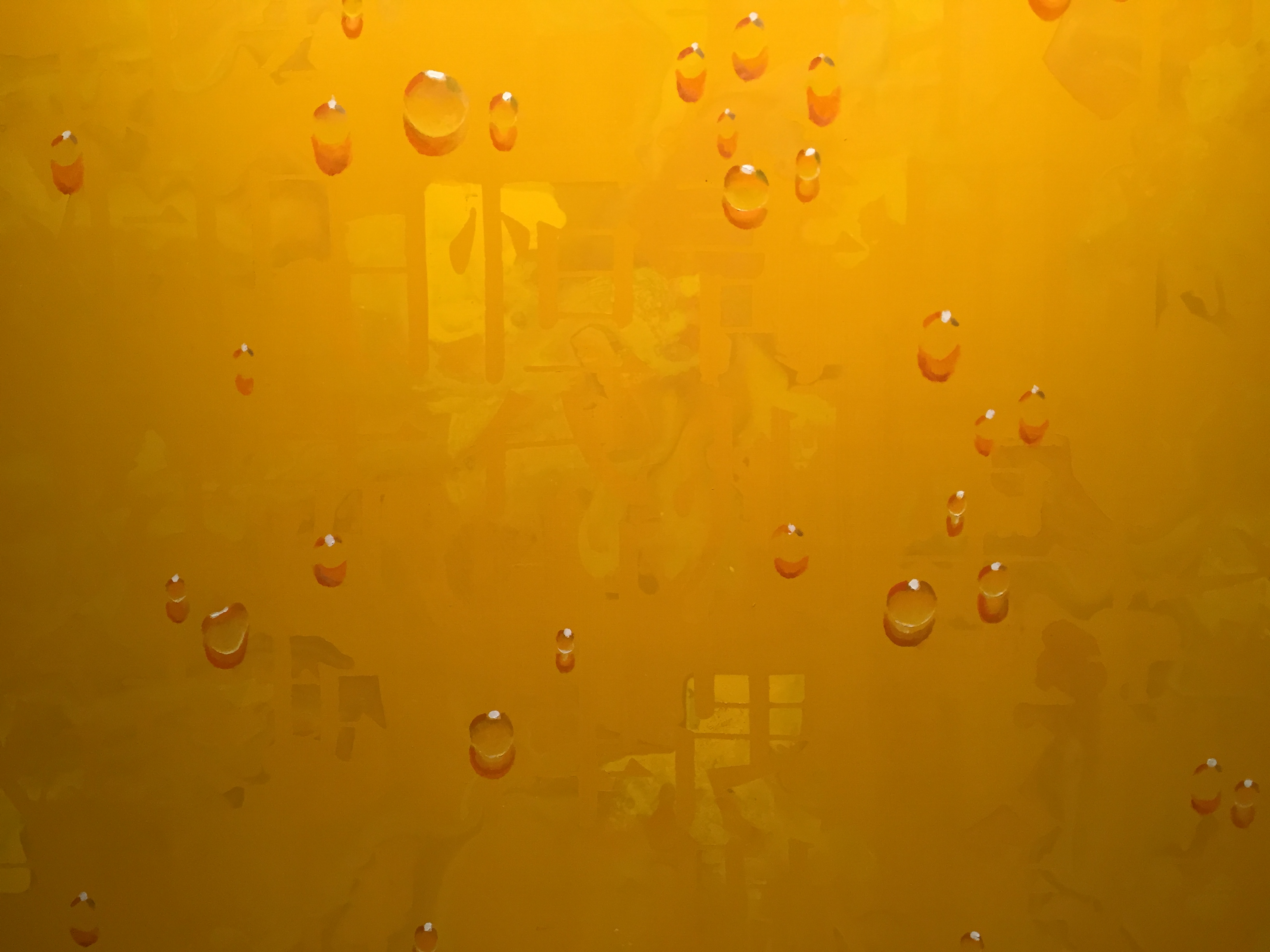 "물방울을 그리기 시작했을 때, 나는 거칠거칠한 캔버스, 목판, 모래, 흙과 같이 즉각적으로 물질성을 보여주는 표면 위에서 직접 작업하곤 했다. 하지만 화면이 커짐에 따라 캔버스는 물성을 상실했다. 그 자리를 공허감이 대신했다."