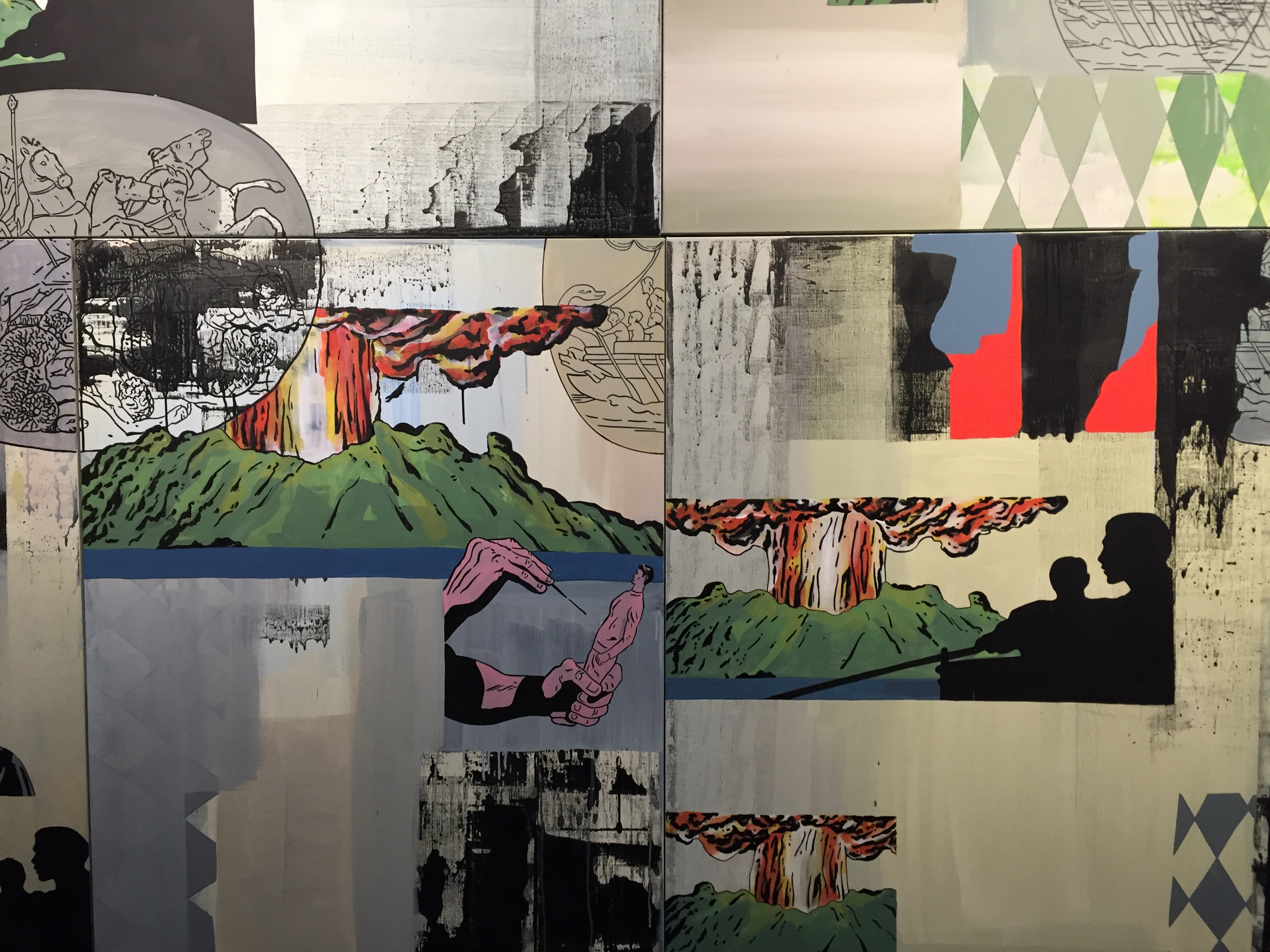 여러 개의 캔버스로 구성된 대형 작품의 찬찬히 살펴보는 재미가 있습니다.