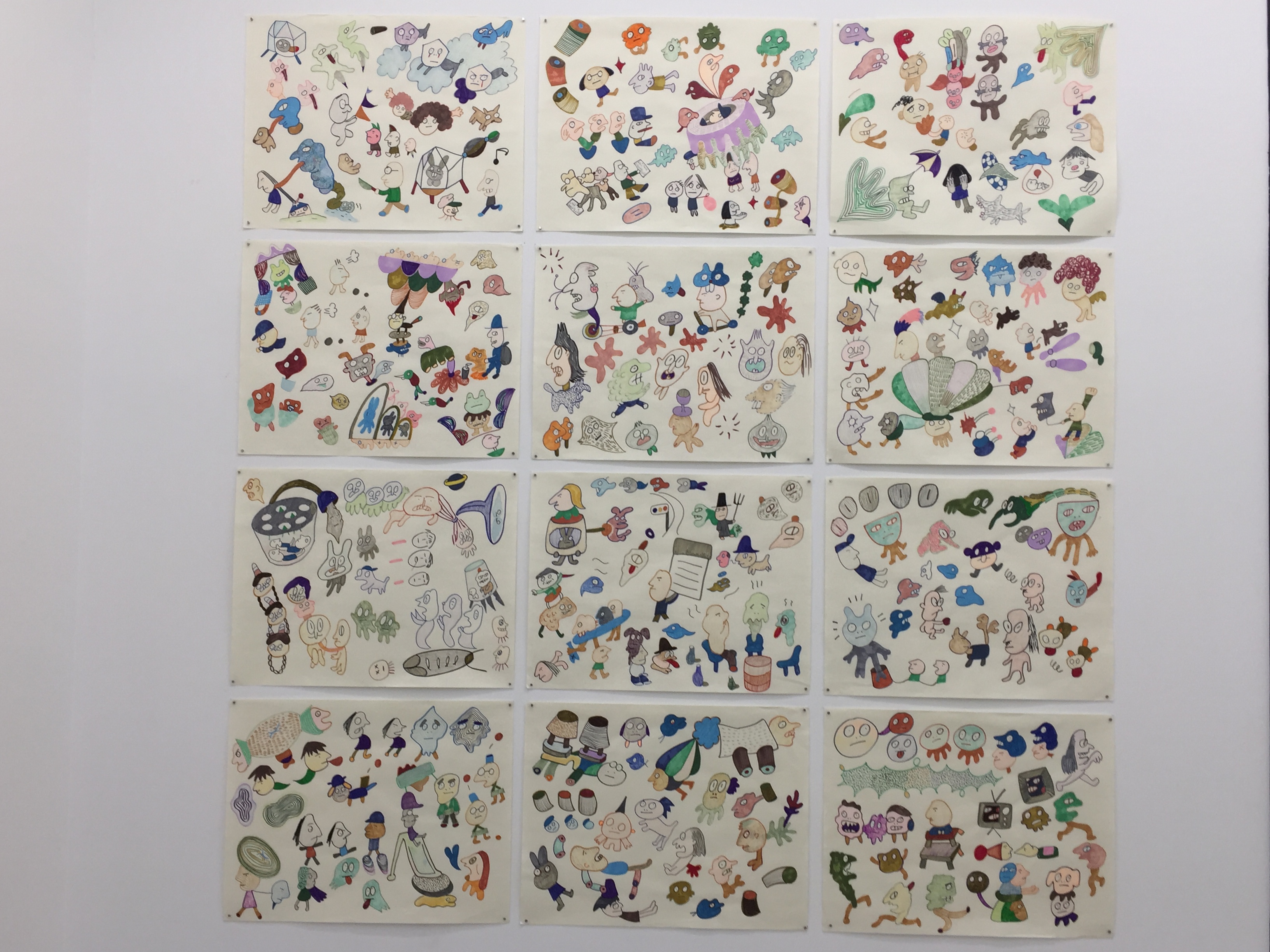 황은정의 작업 세계는 꿈과 무의식에 기반한 수많은 캐릭터들을 만들어내는 데에서 시작된다. 작가 는 어린시절부터 다양한 캐릭터를 스케치하는 작업을 해왔으며, 이를 통해 지금까지 수천 개의 캐릭 터를 만들어냈다. 이들은 작가의 자동기술적인 드로잉을 통해 생성되어 끊임없이 변주되고 변형된다.