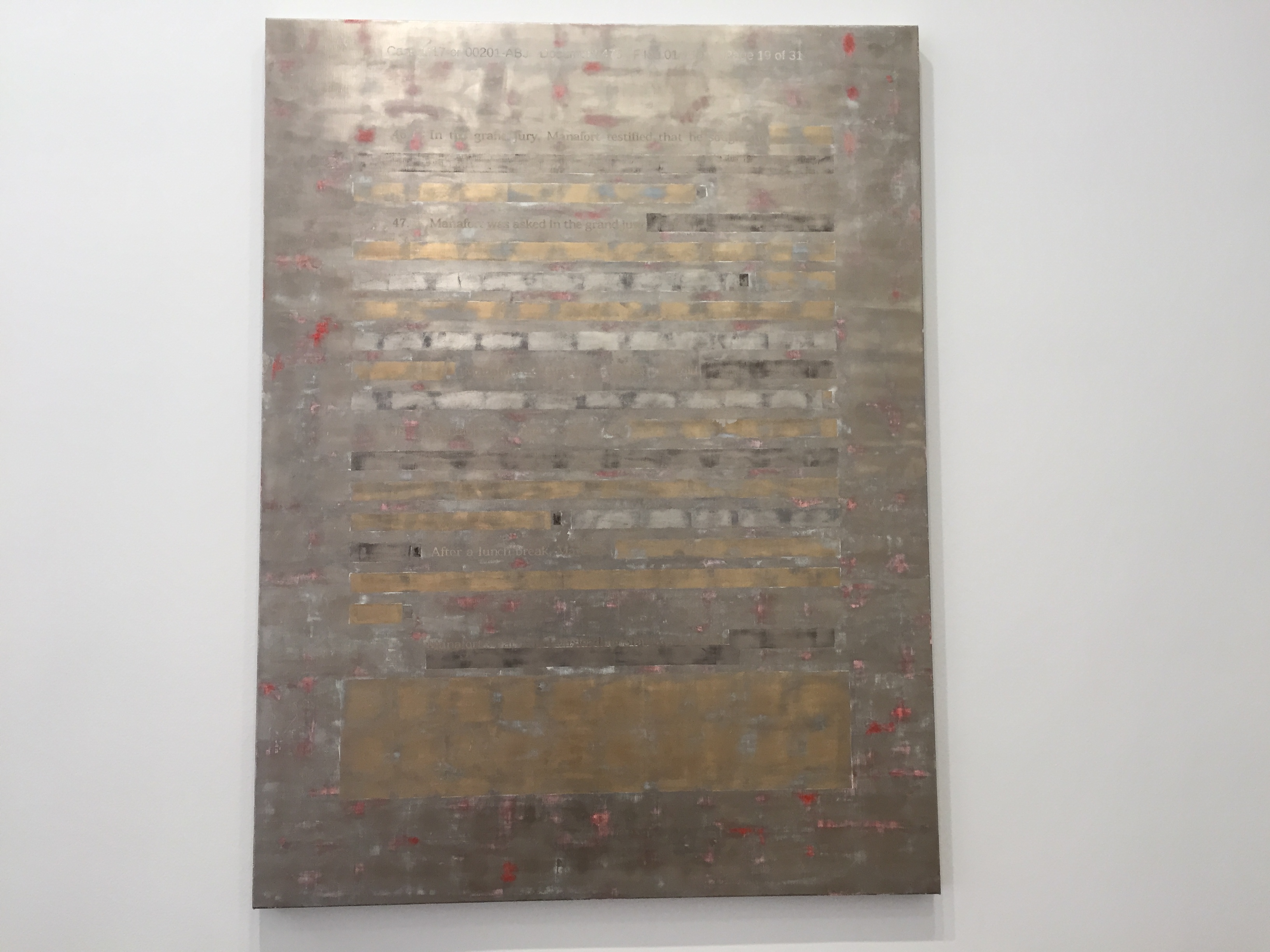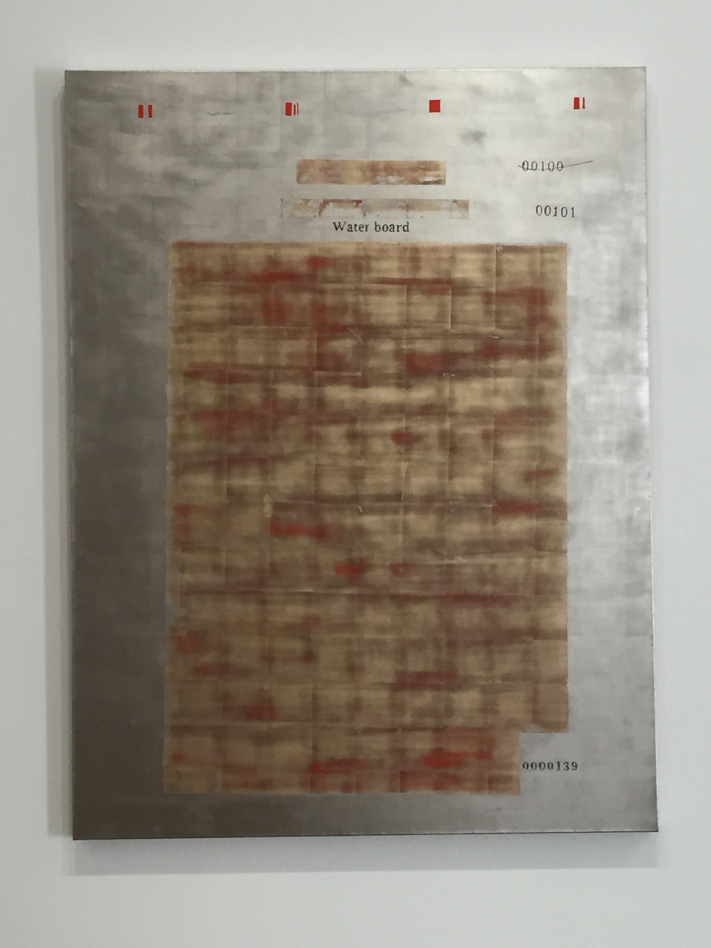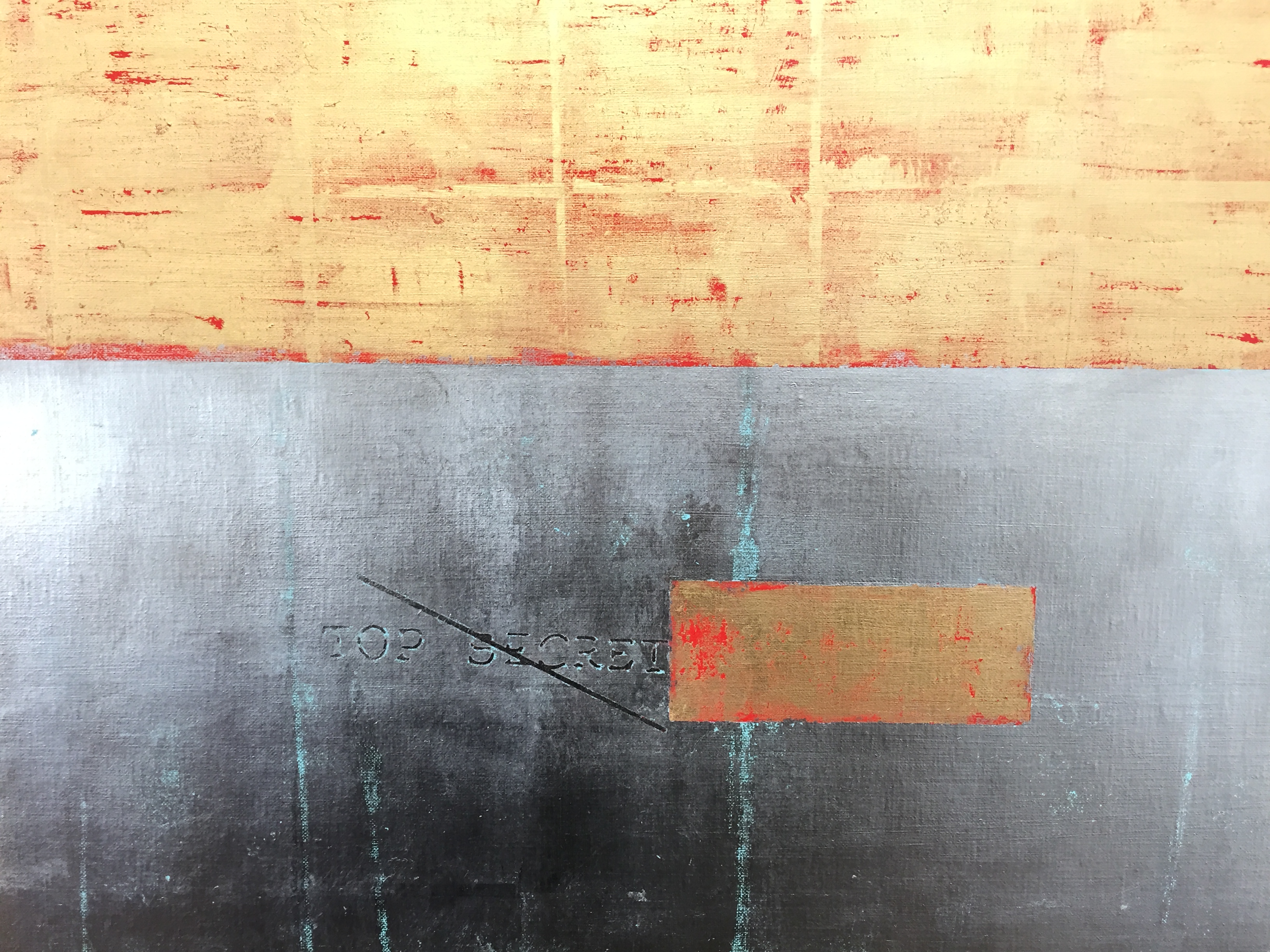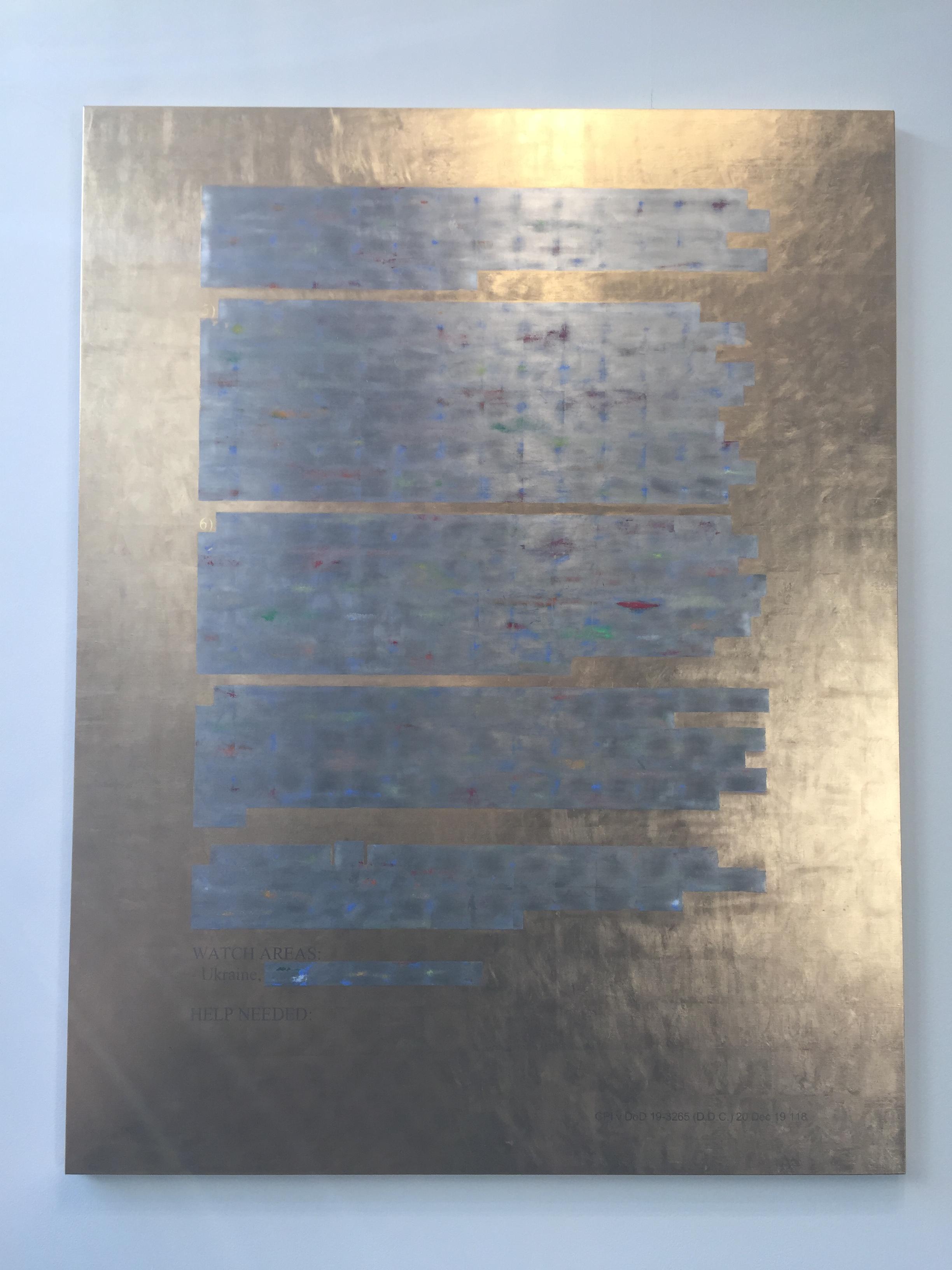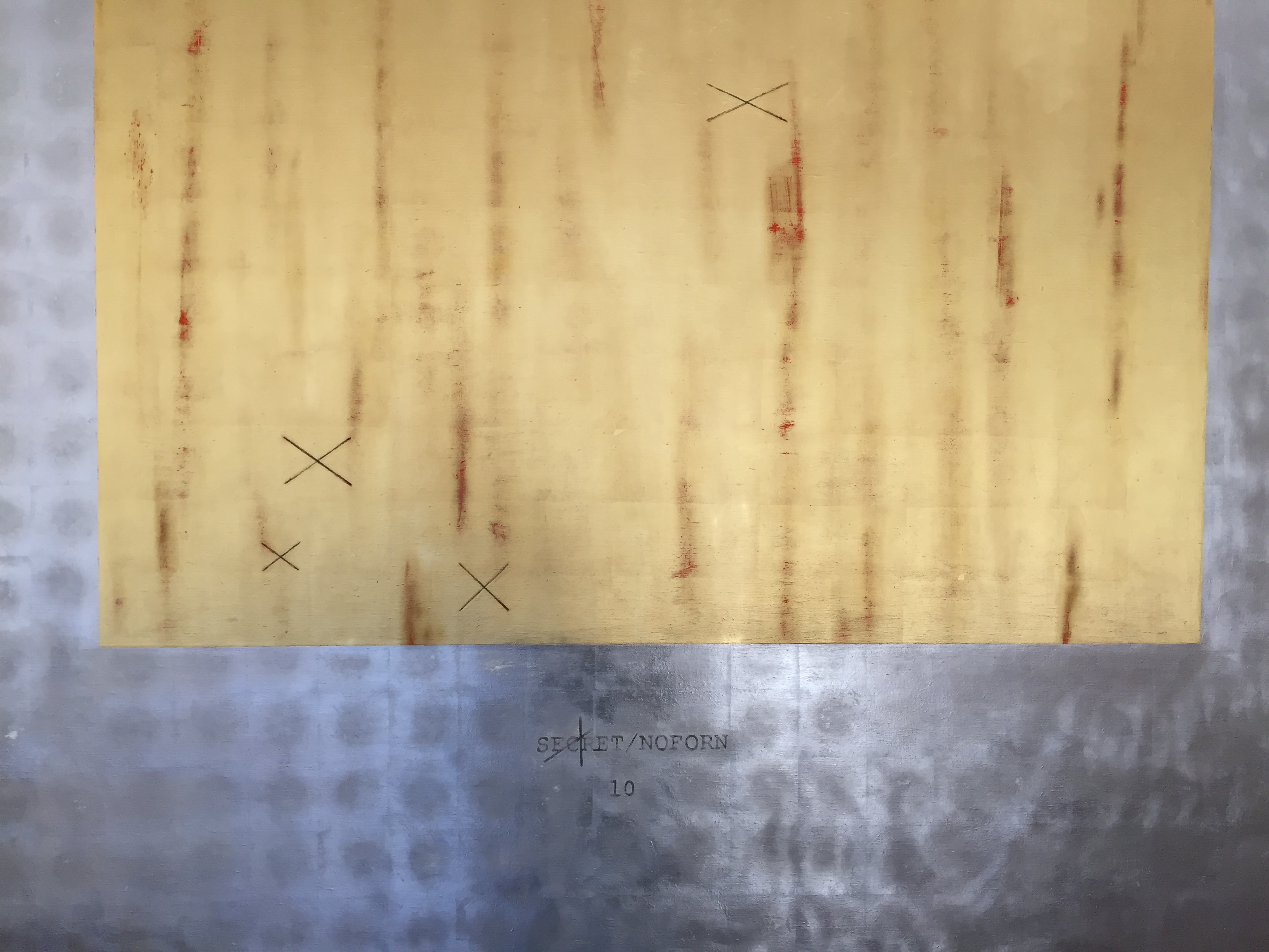 제니 홀저가 꾸준히 제작하고 있는 검열 회화(Redaction Painting) 연작이 K2 벽면을 장식한다. 린넨에 유화를 입히면서 미국 정보 공개법(Freedom of Information Act)에 따라 공개된 정부 문서를 회화로 번안해내는 방식이다. 이미 상당히 검열된 상태로 기밀 해제된 미국 정부 및 군부 문서가 작가의 손을 거쳐 거대한 추상화로 변모하고, 이때 정부문서 상의 검정색 검열 막대기는 다채로운 금박 및 은박으로 호환된다.