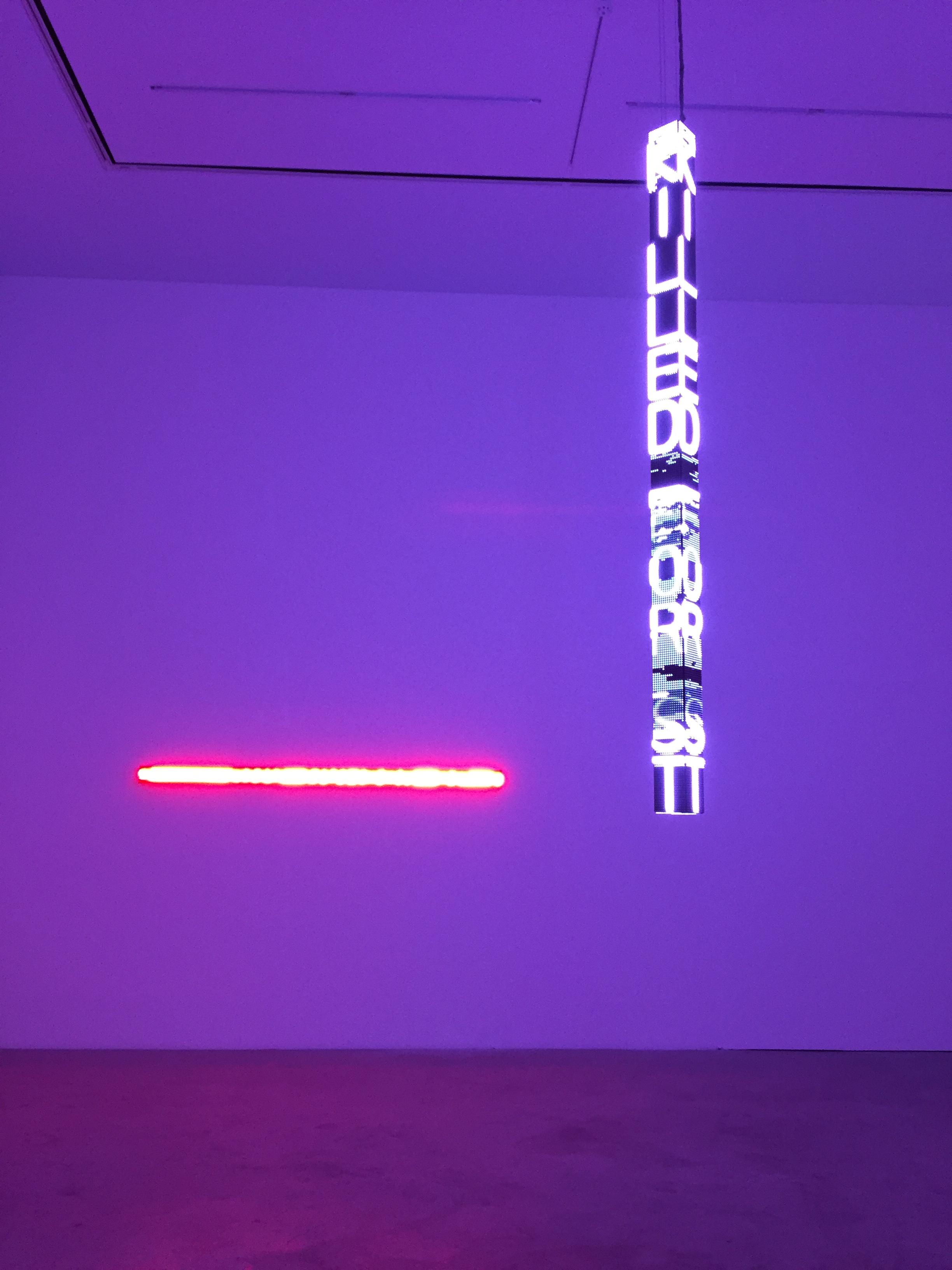 다양한 물질성을 매개로 전달되는 텍스트의 영향력에 대한 작가의 관심을 다시금 엿볼 수 있는 LED라는 매체는 작가가 1980년대 초반부터 즐겨 사용해왔는데, 이에 대해 홀저는 다음과 같이 설명한 바 있다.