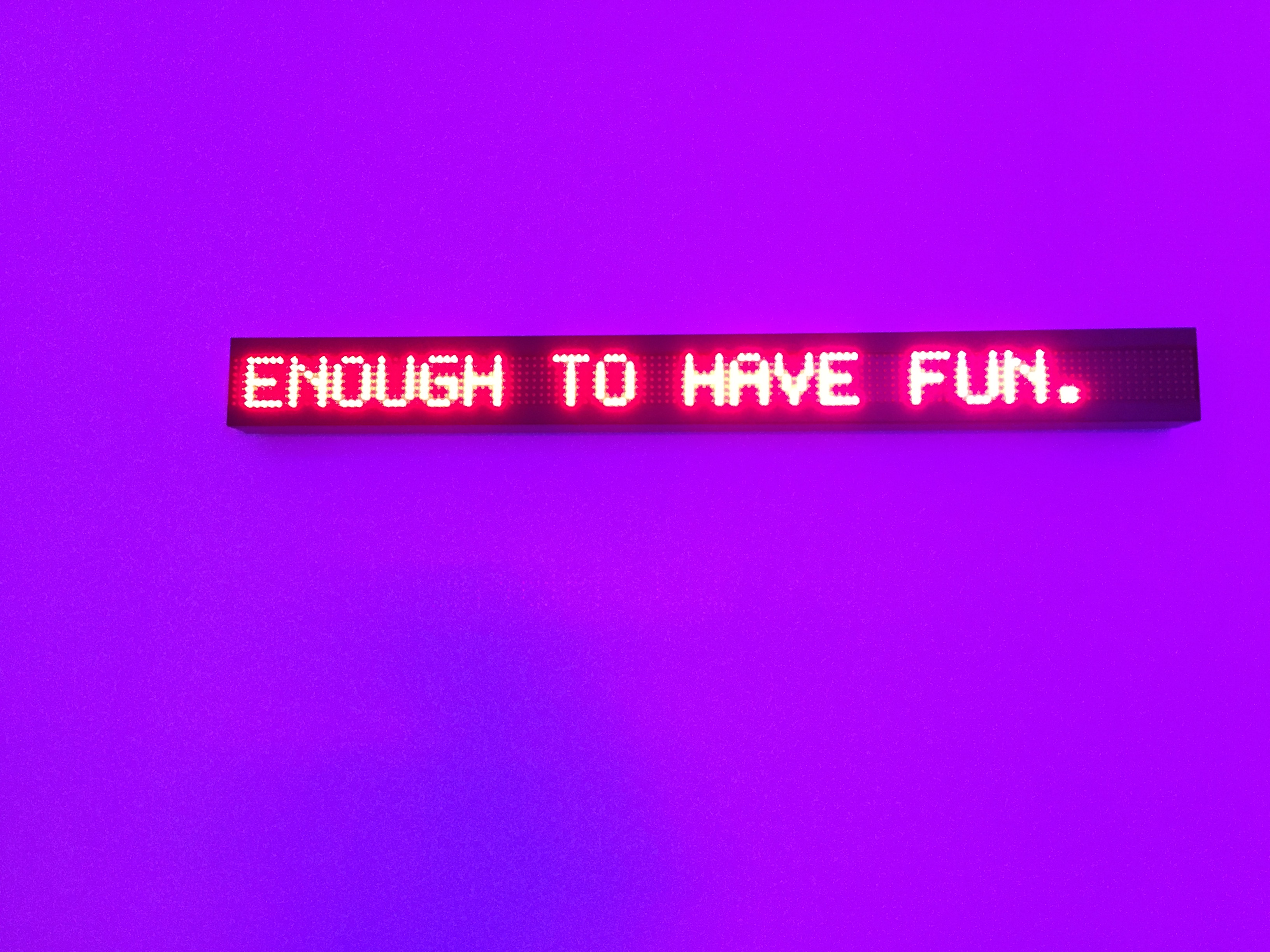 “LED 사인의 주요 기능 중 하나는 움직일 수 있는 능력에 있는데, 나는 이것이 구두로 전달하는 말과 너무 비슷하여 좋아한다. (LED 사인을 통해서는) 글자를 강조할 수 있고, 흐르게 하거나 멈출 수도 있는데, 내게는 이것이 마치 우리가 목소리로 내는 억양의 동적 등가물처럼 느껴진다.”