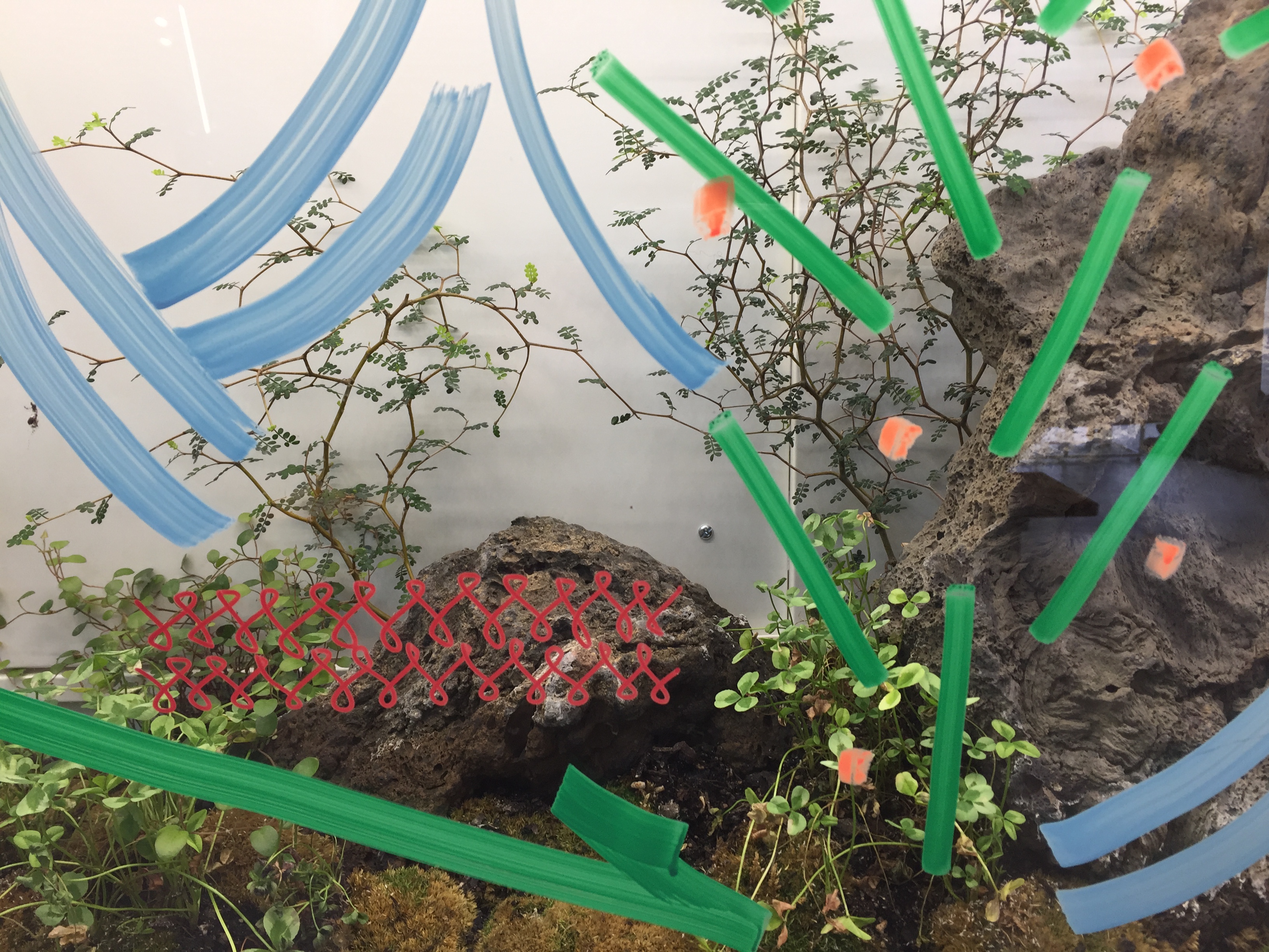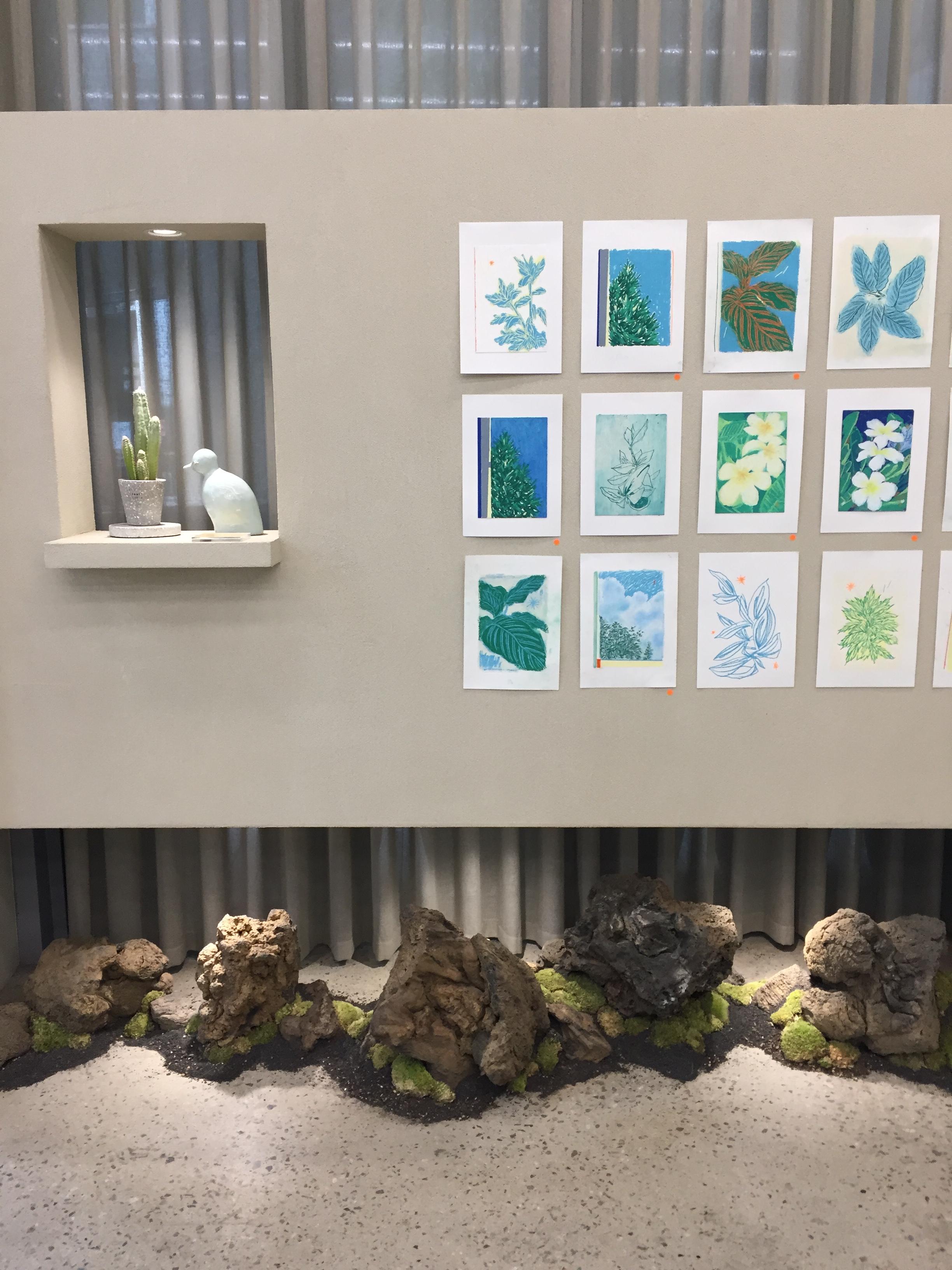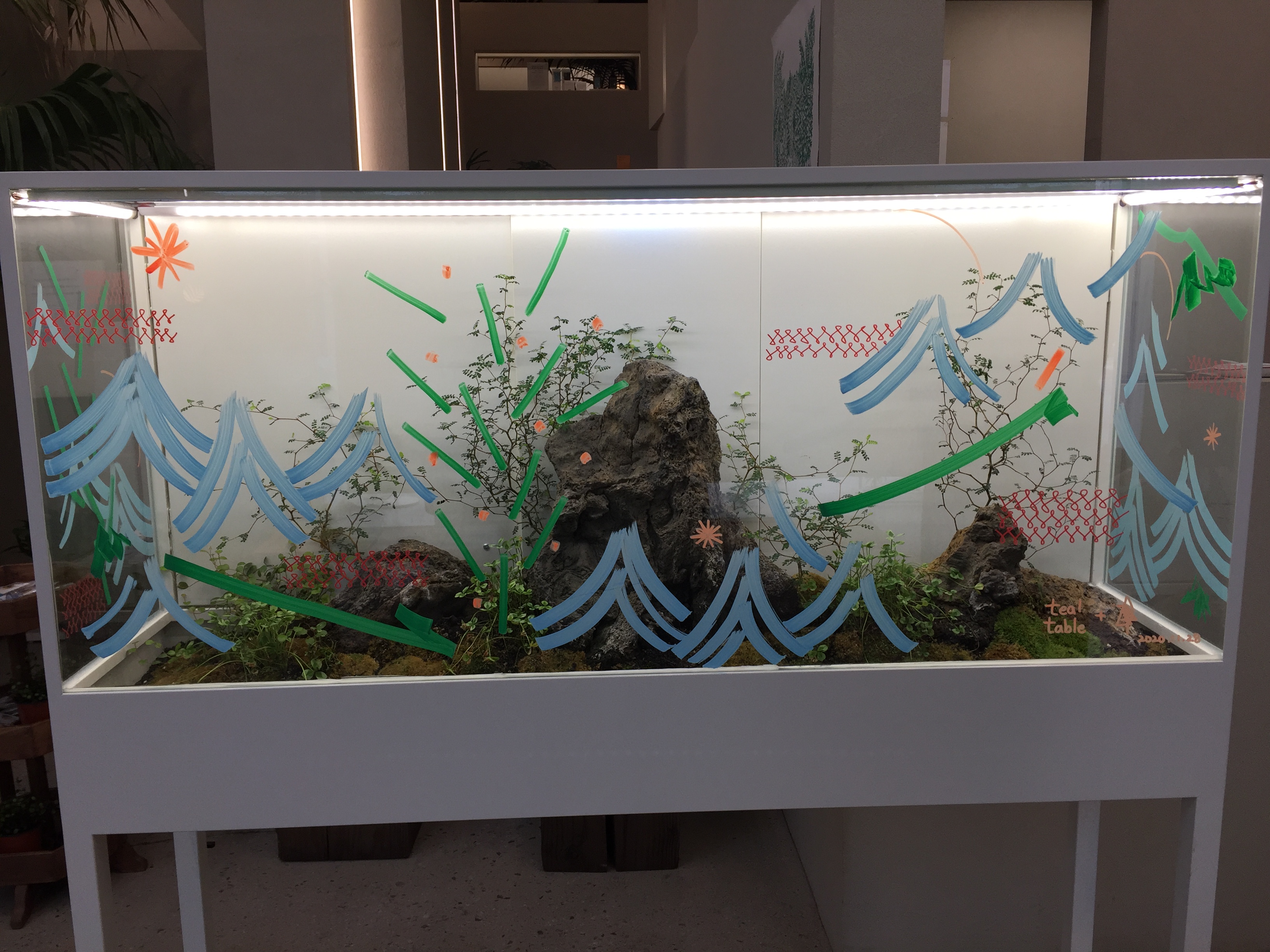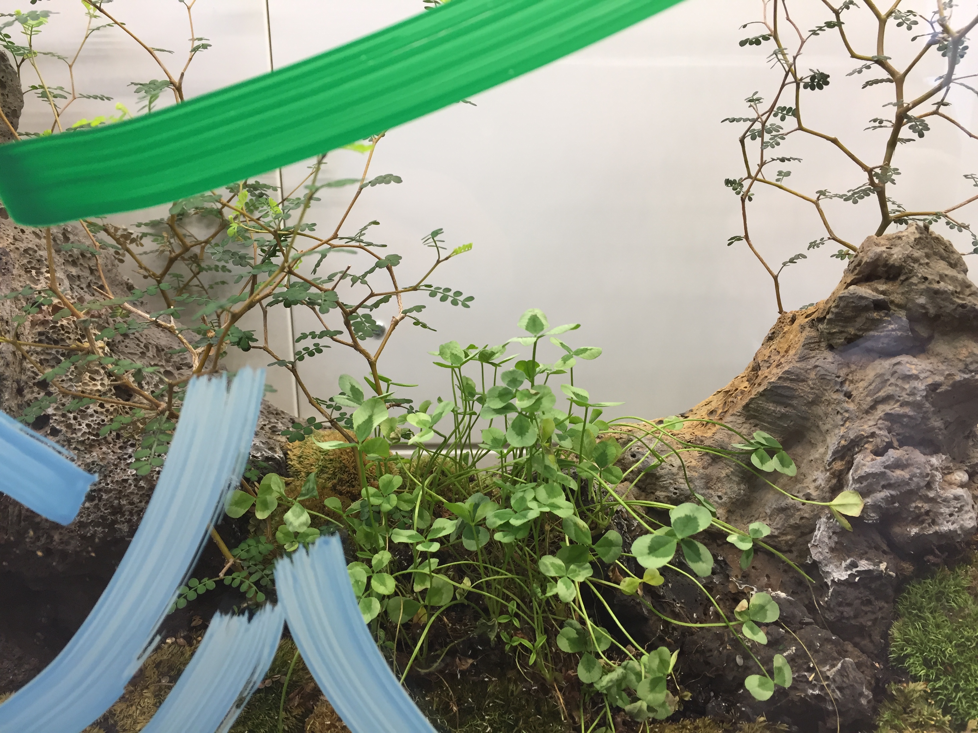 보는 시각에 따라 그림과 식물이 중첩되거나 분리되기를 반복하면서 마치 대화를 주고받듯이 연출된 전시 기업은 오히려 대상을 면밀하게 관찰하는 관람 방식을 유도합니다.