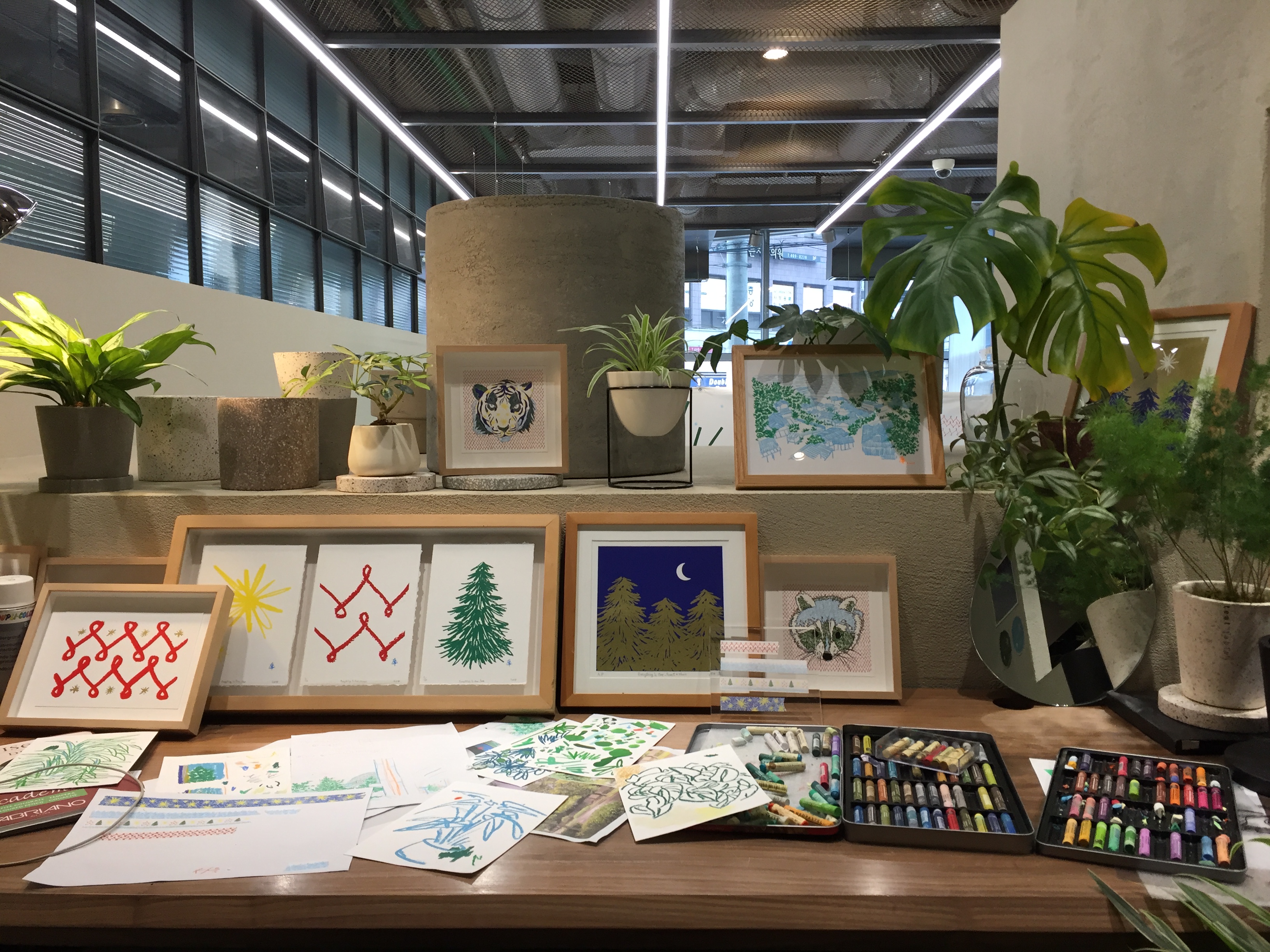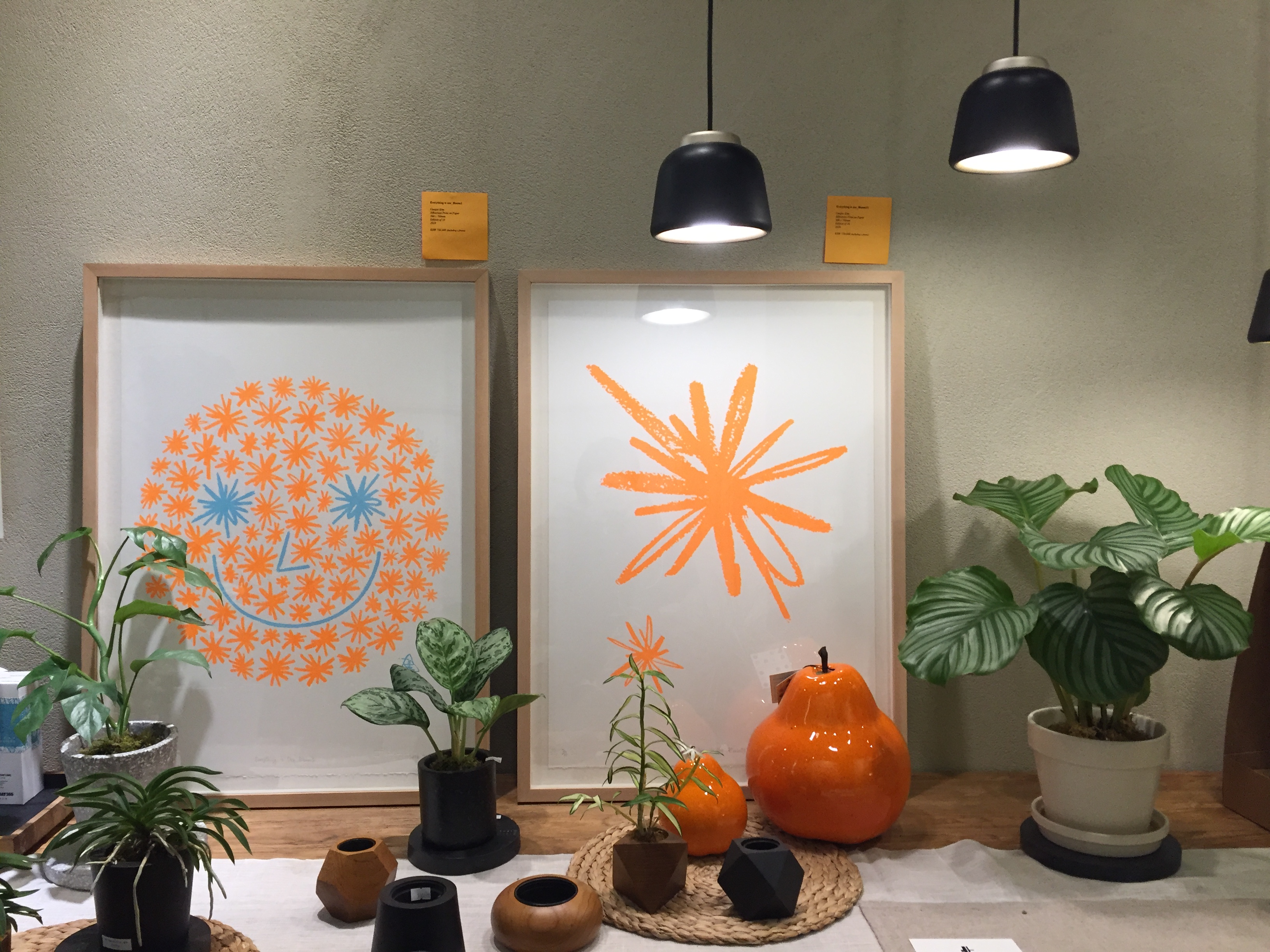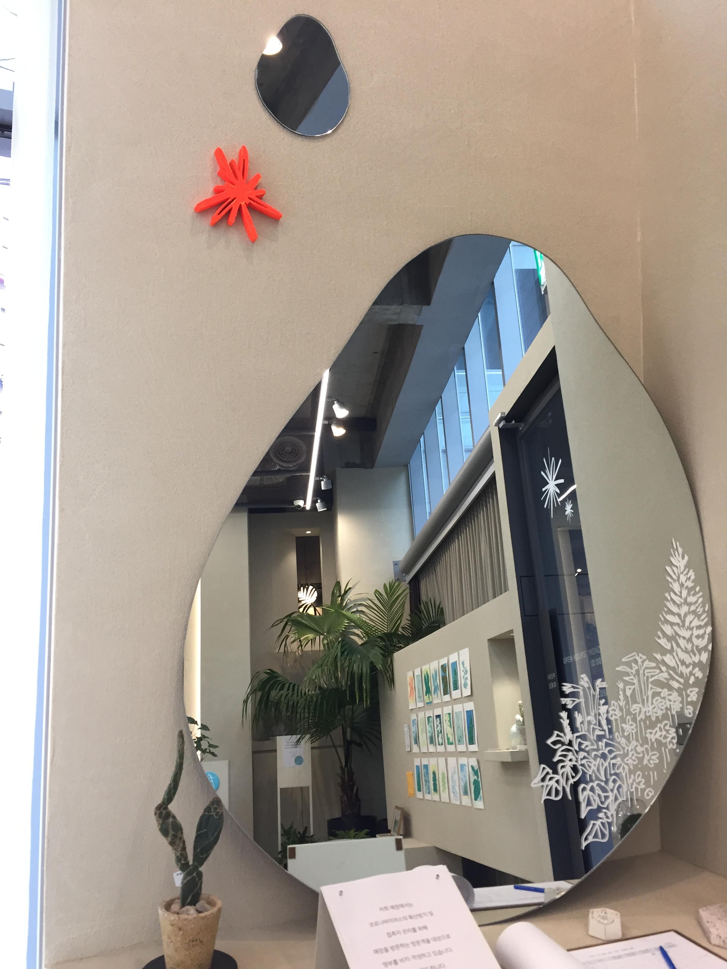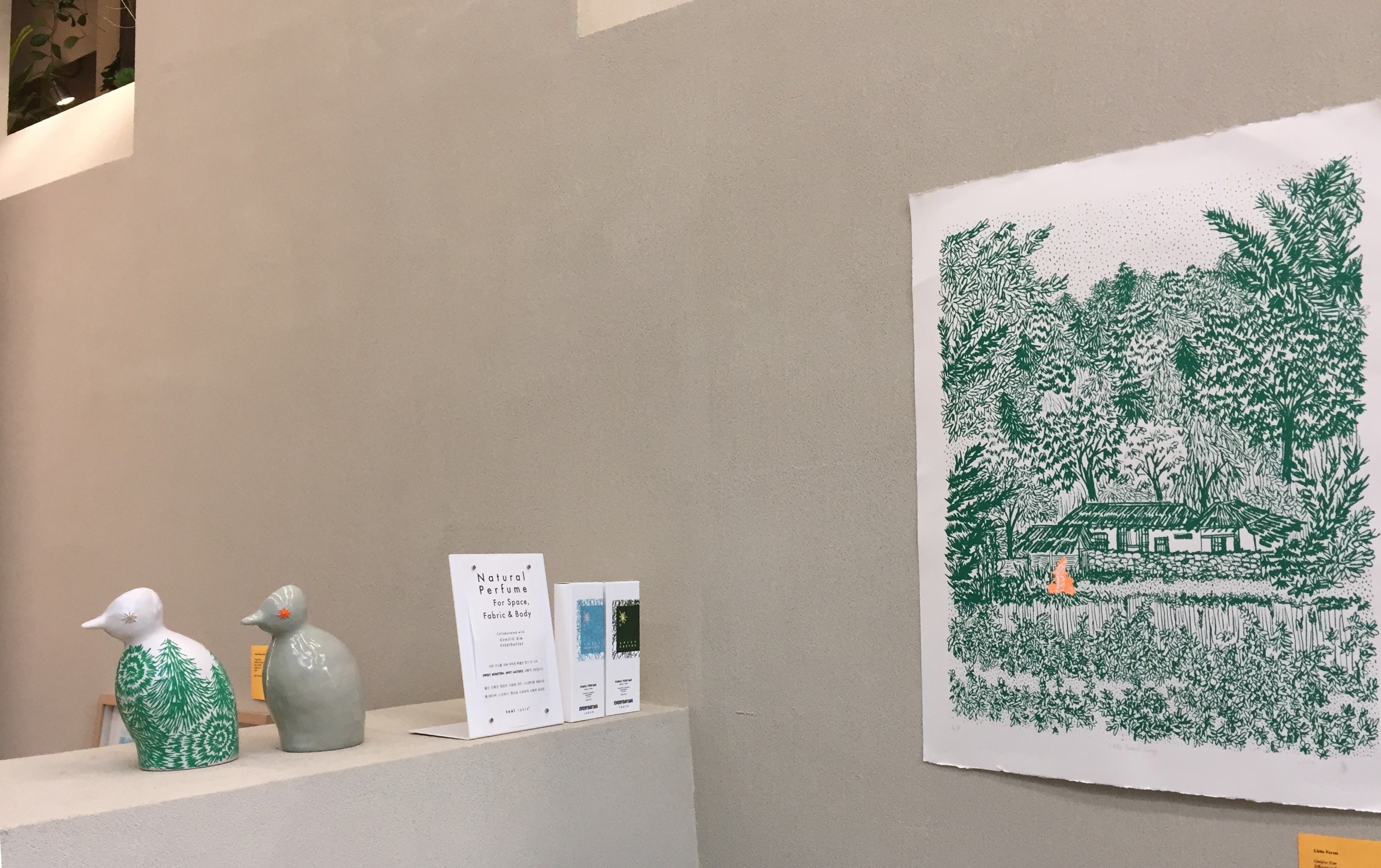 공생은 성수동에 있는 틸테이블 쇼룸에서 진행된 전시입니다. 김건주 작가님과 틸테이블 디자이너의 대화에서 전시가 시작되었다고 하는데요. 식물이 있는 쇼룸에서 그림들을 보니 힐링되는 기분이었습니다. 식물과 함께 있는 공간이 아름다워서 전시장에 좀 더 머무르고 싶었고, 전시장을 나오기가 아쉬웠어요. 룸 스프레이, 향수도 함께 전시되고 있어서 시각과 후각이 모두 만족한 전시였습니다.