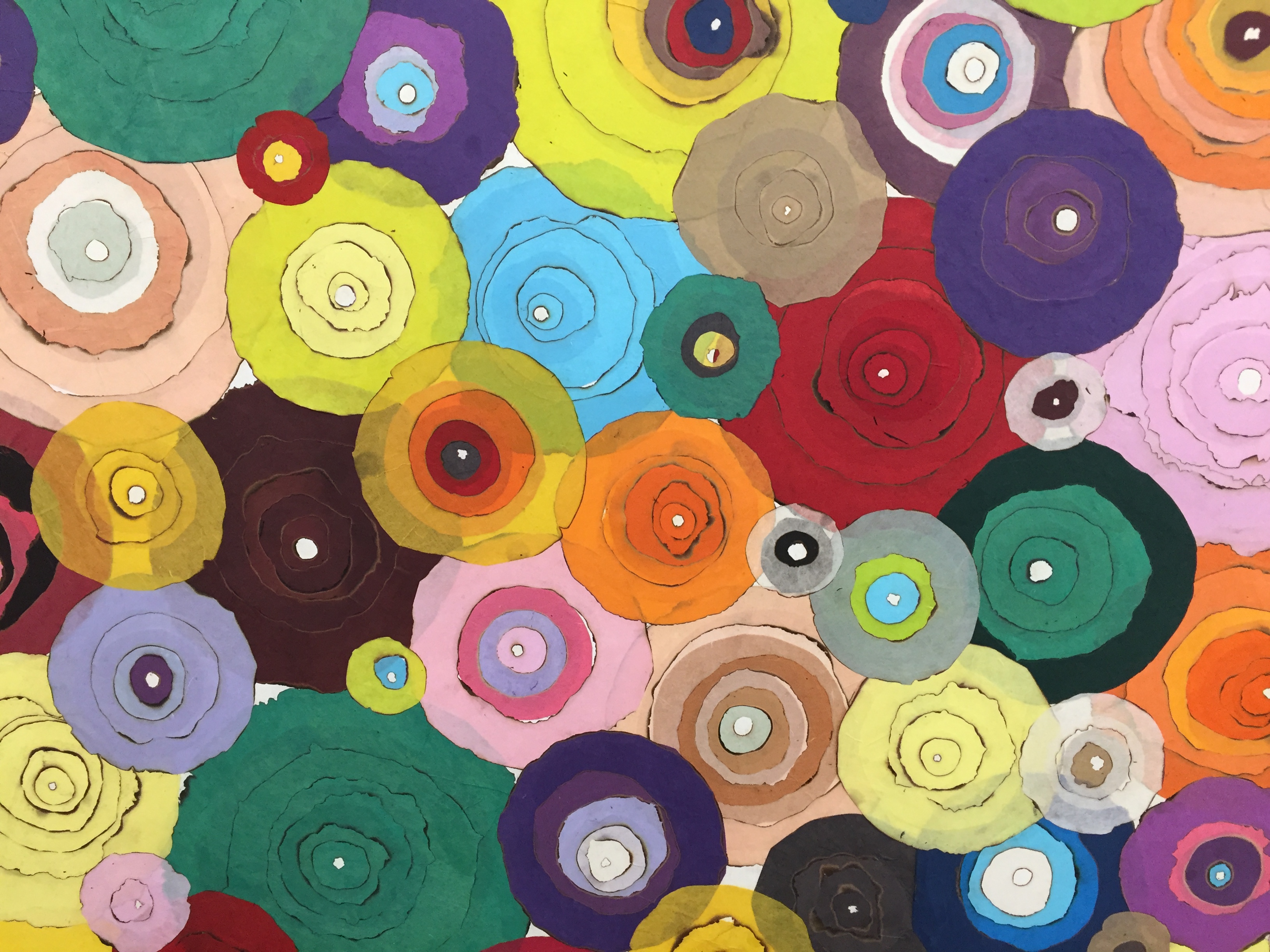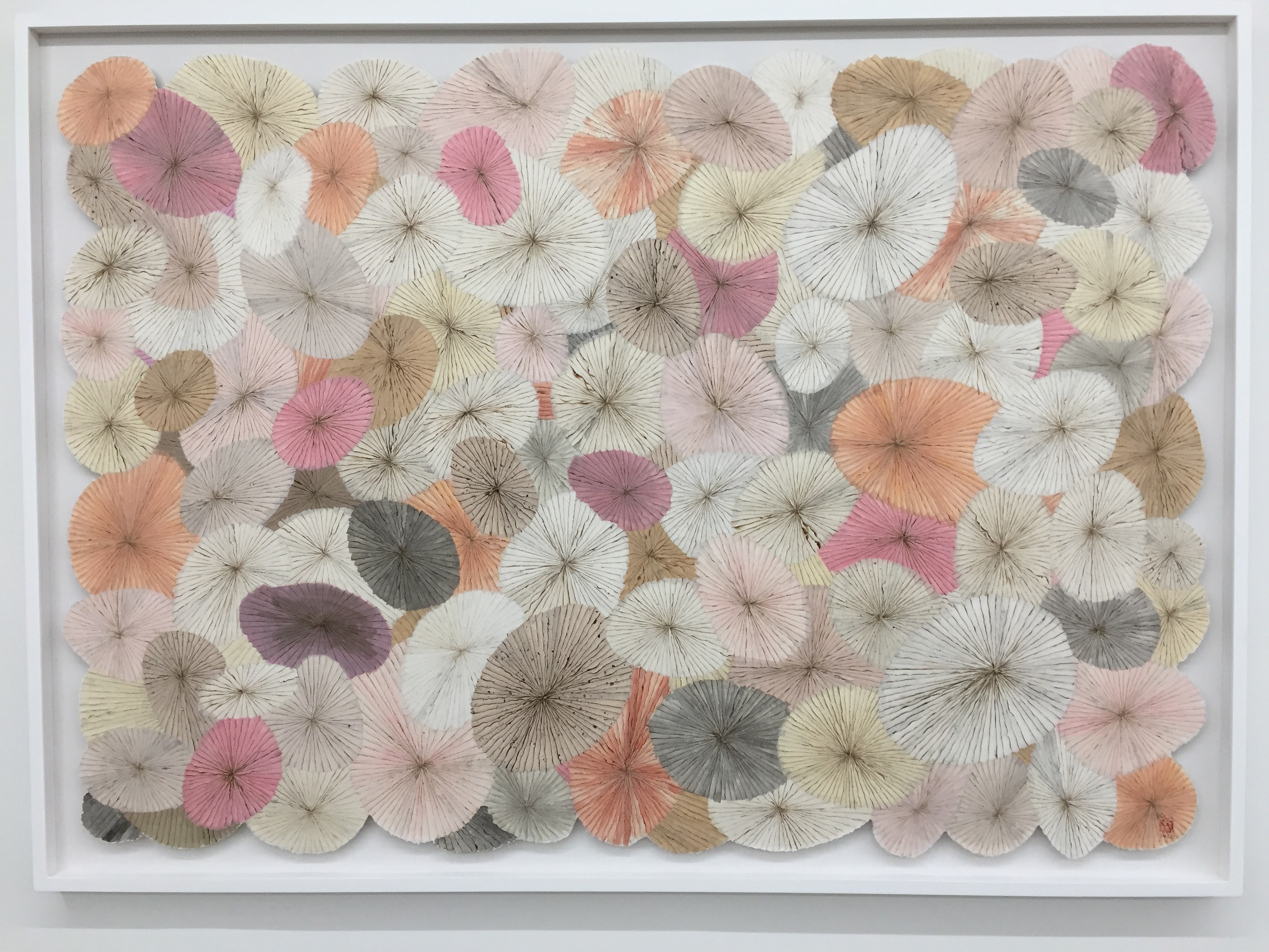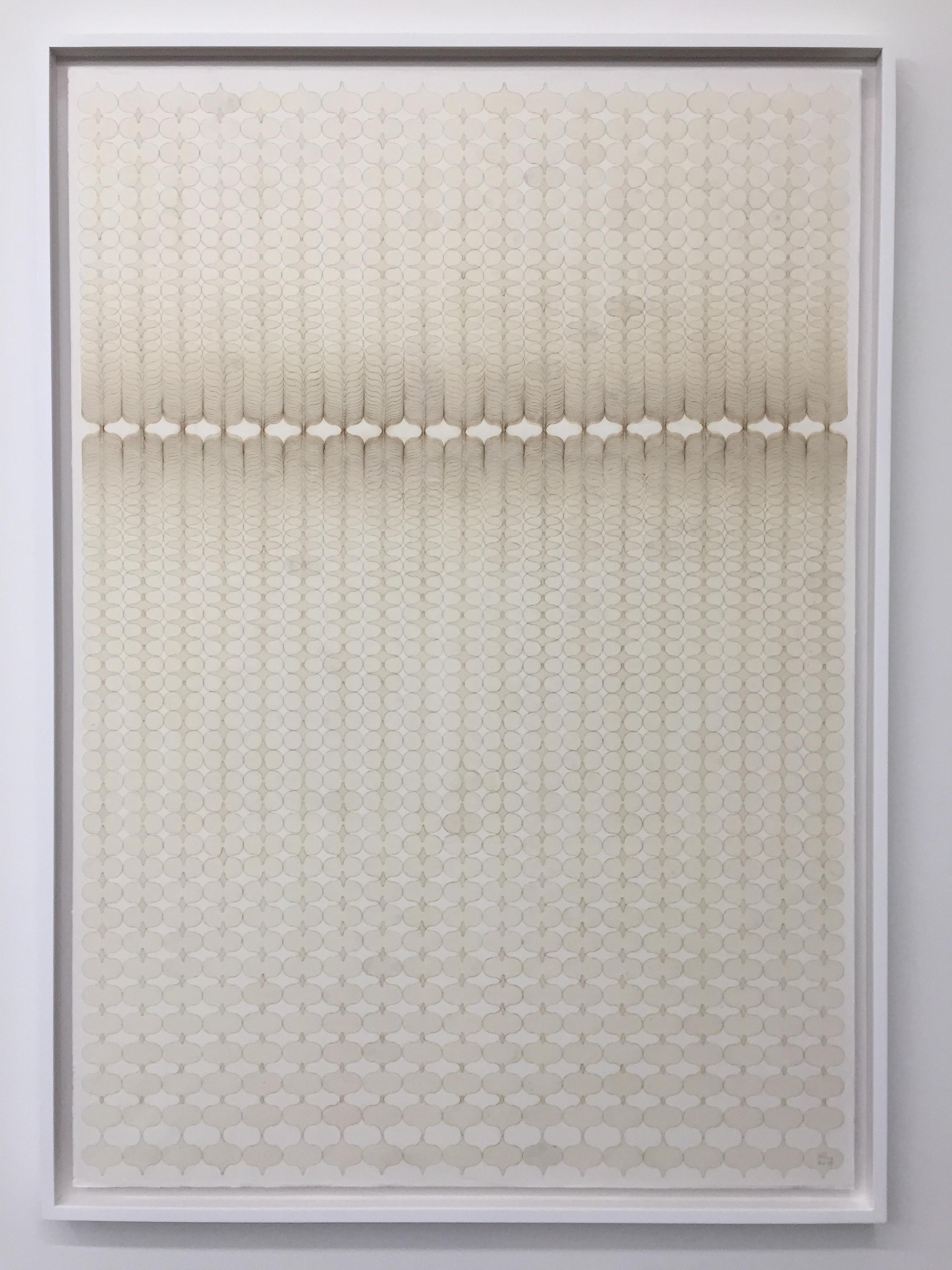 갤러리현대의 1층 전시장에는 ‘한지’라는 재료가 지닌 무한의 시간성을 영감의 원천이 되는 자연의 형태나 심상과 연결하는 작가의 방법론을 엿볼 수 있다. 한지 콜라주가 활짝 핀 꽃의 형상처럼 보이는 <Pieno di Vuoto> 연작, 물 혹은 물결의 소리를 작품화한 <Timeless>와 <The Water> 연작, 중심에서 방사형으로 뻗어 나오며 화면을 빼곡하게 채운 단색의 한지 조각의 치밀한 층위가 압도적인 <Nautilus>를 선보인다. 2층 전시장에는 <Timeless>와 함께 작가의 대표작으로 꼽히는 <The Street>, <Mountain>, <Story> 연작을 선보인다. 세 연작은 영감을 준 구체적인 장면이나 대상이 추상적 패턴으로 전환되는 김민정 작품의 특징을 잘 보여준다. 지하 전시장에서는 우연과 계획, 충동과 질서, 잘린 것과 남은 것 등의 대립 개념과 상충하는 에너지가 한 화면에 공존하는 <The Room>, <Corner>, <Sculpture>, <Couple>, <Order and Impulse> 등의 작품을 소개한다.