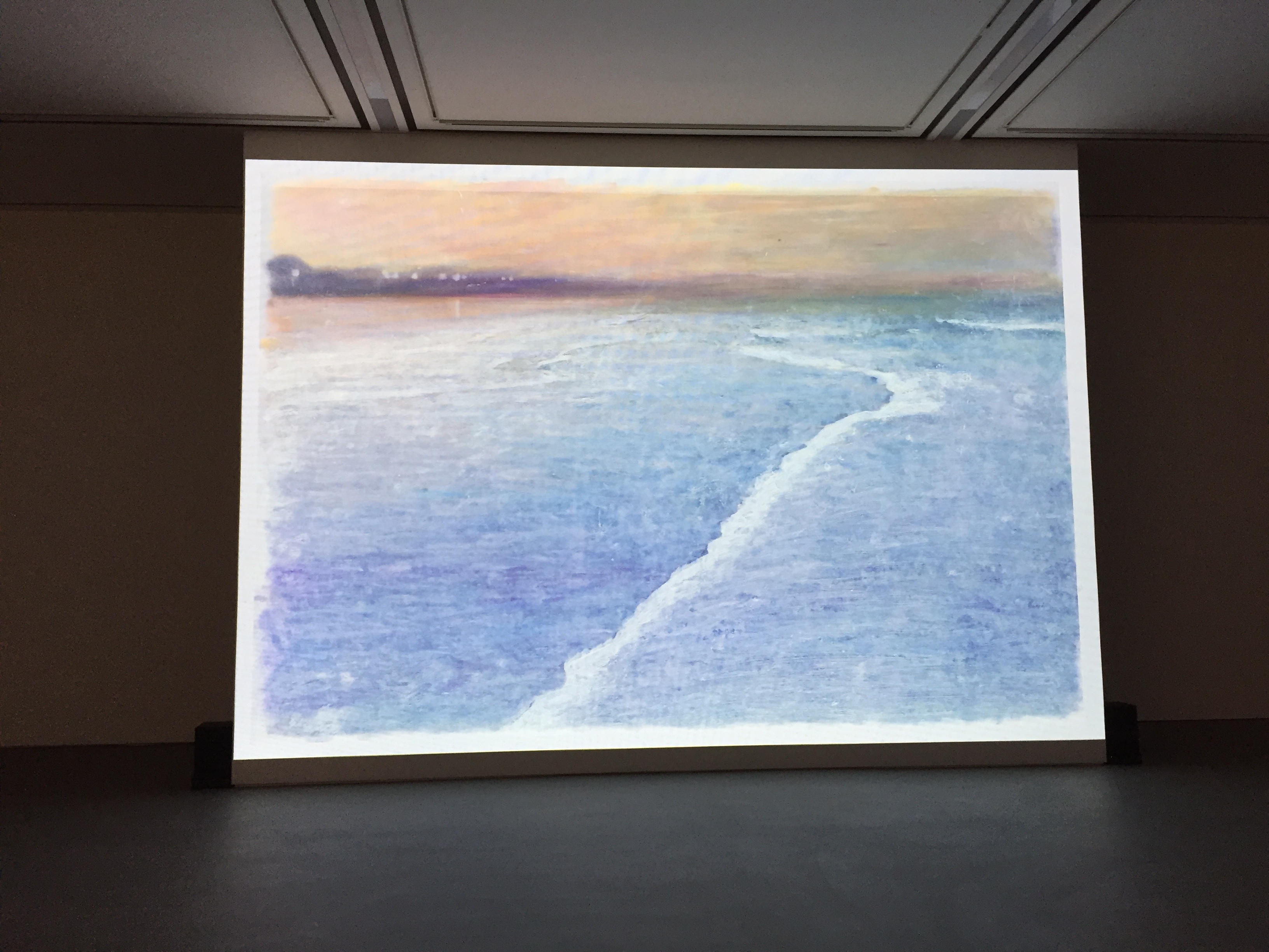 자신의 일상, 주변 환경, 인물들을 그린 이우성 작가님의 애니메이션 영상을 만날 수 있는 전시입니다. 코로나라는 특수한 상황으로 인해 갈 수 없는 장소, 볼 수 없는 풍경, 주변 사람에 대한 그리움을 그리기라는 반복행위를 통해 영상이 탄생했는데요. 이번에 음악과 함께 푸른 바다를 볼 수 있어 좋았습니다.