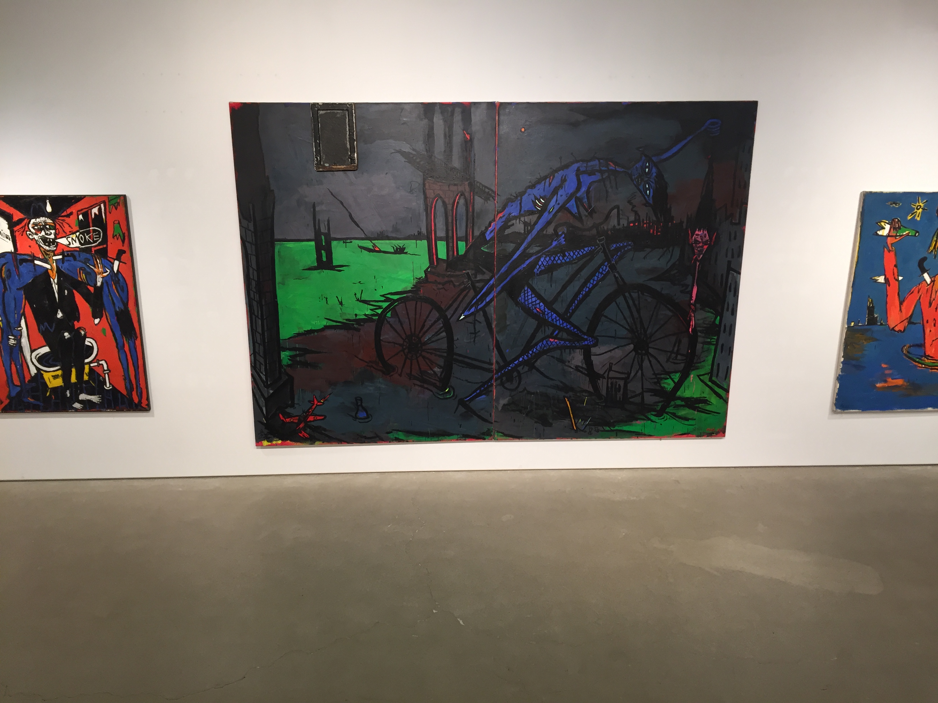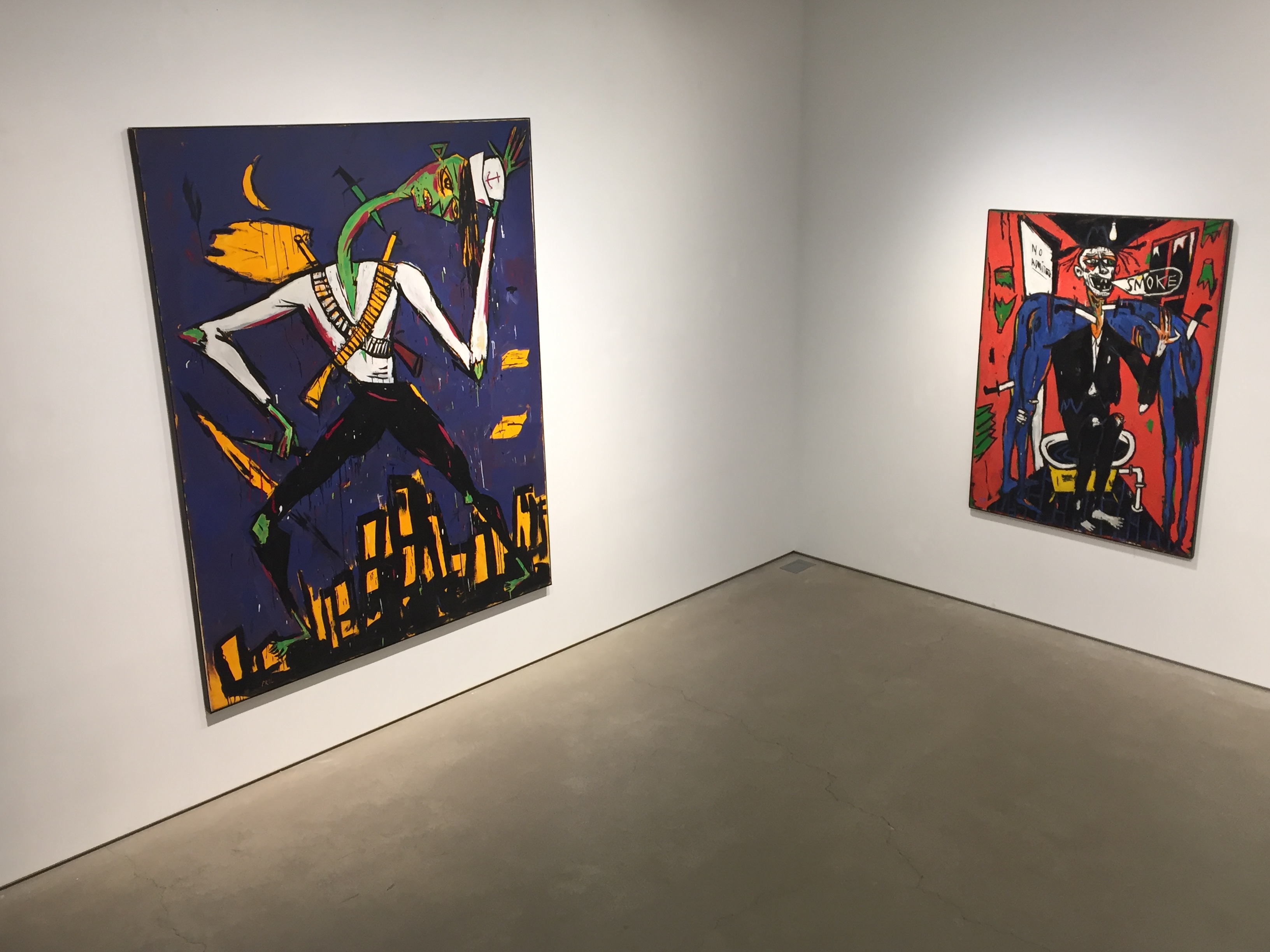 이번 전시에 소개되는 1980년대 회화는 불에 타 무너져 내리는 빌딩이 즐비하고, 도둑질에 굶주린 이들이 도사리며, 그리고 칼에 찔려 비틀거리고 상처 입은 자들이 적나라하게 포착하며. 당시 뉴욕의 붕괴 상태를 생생하게 보여준다.