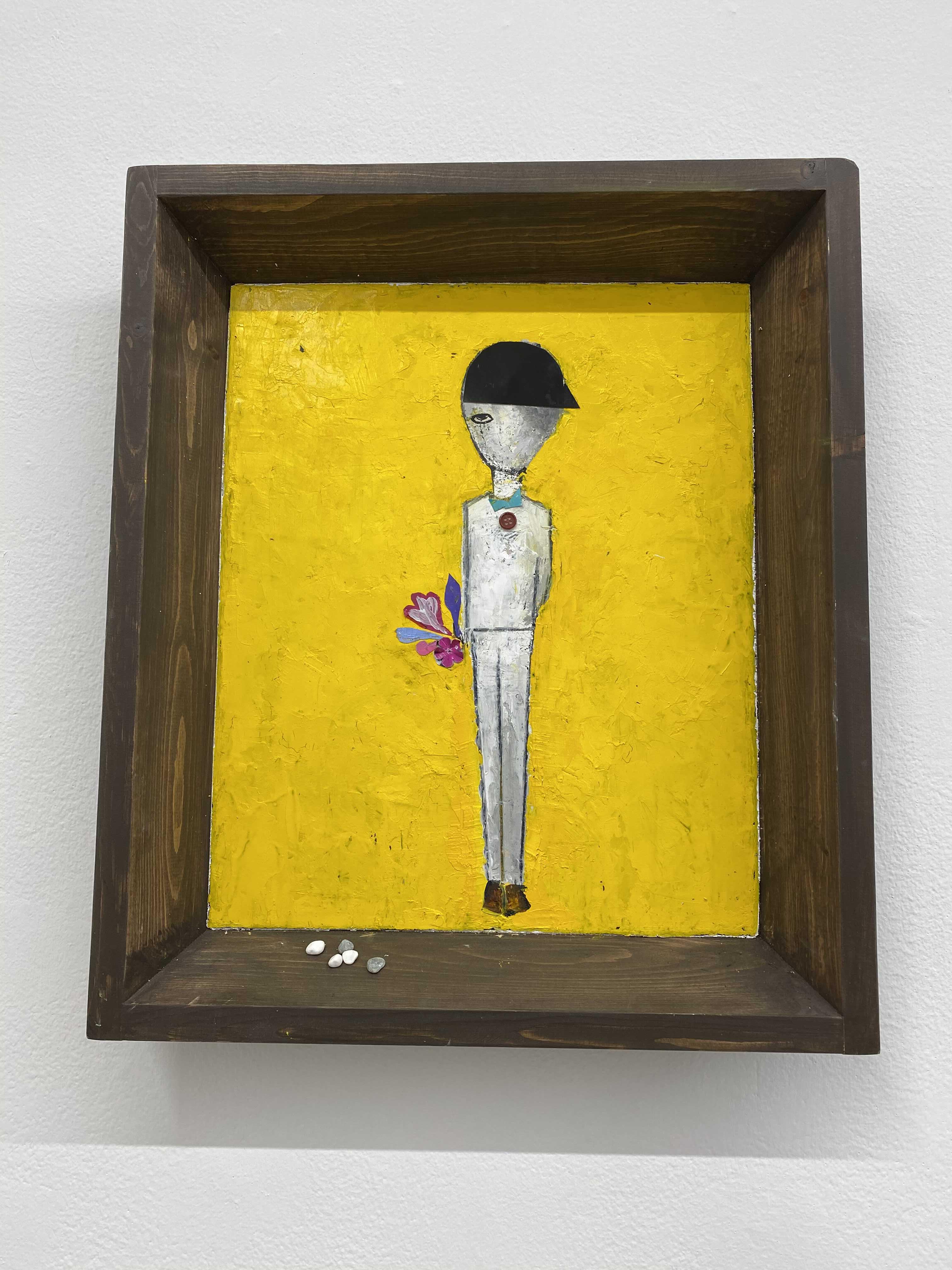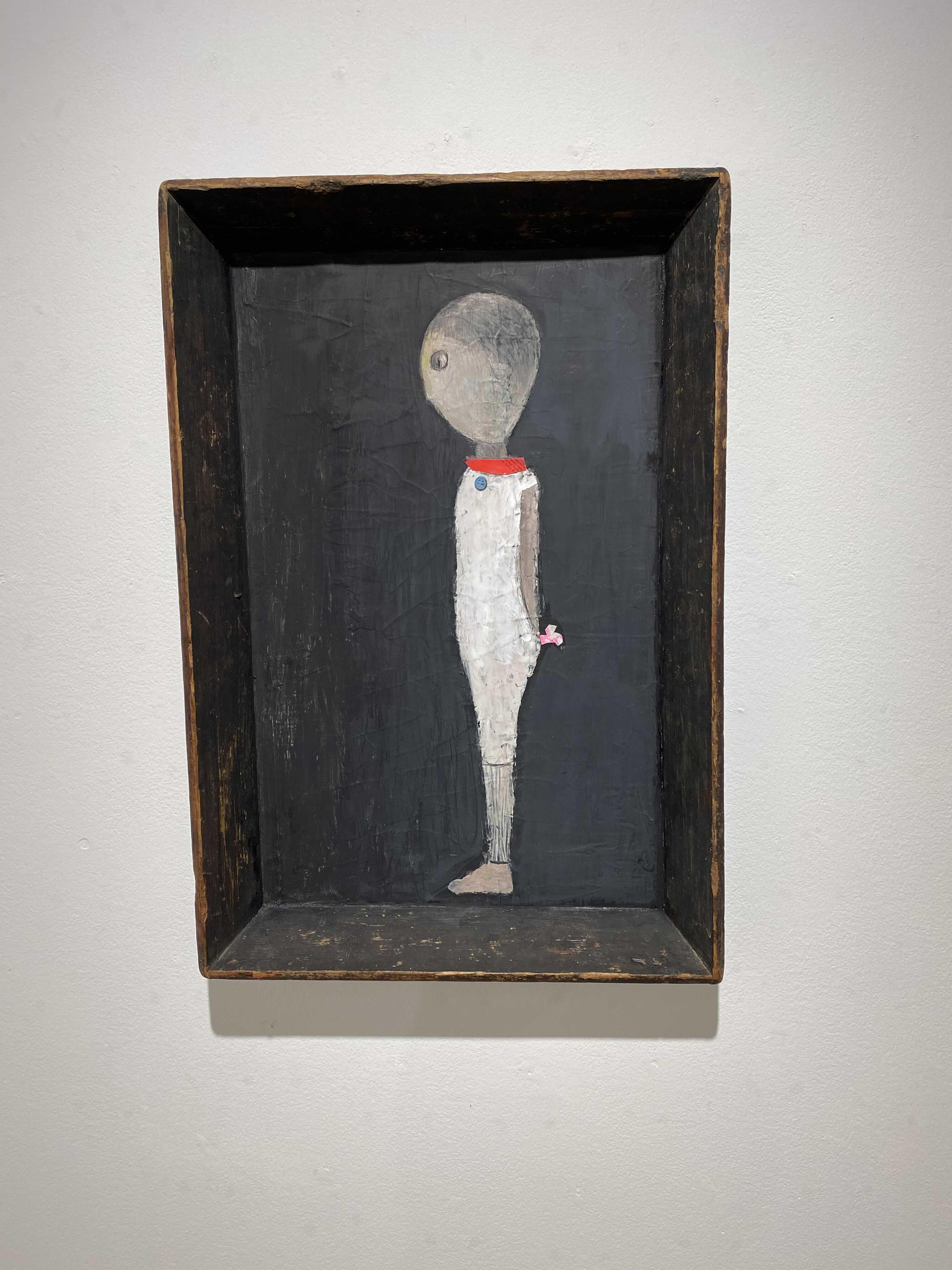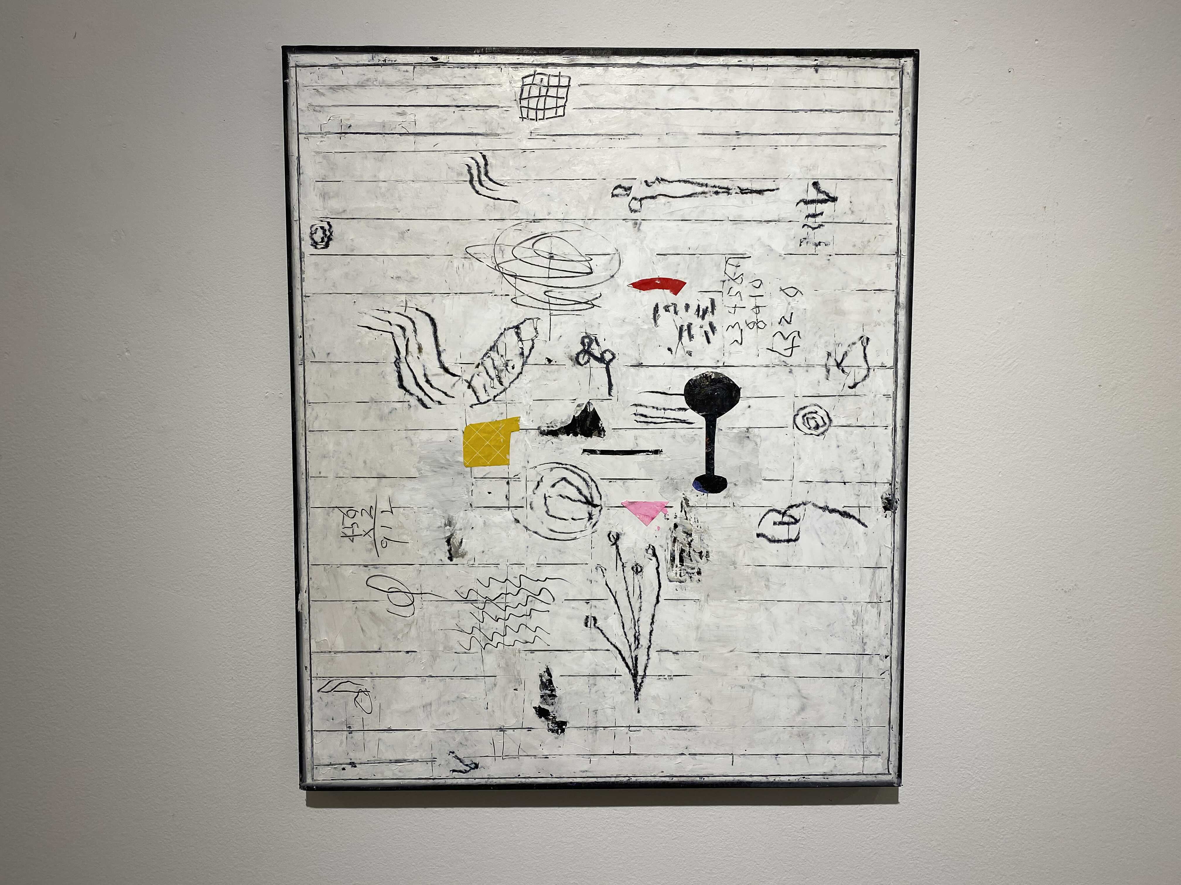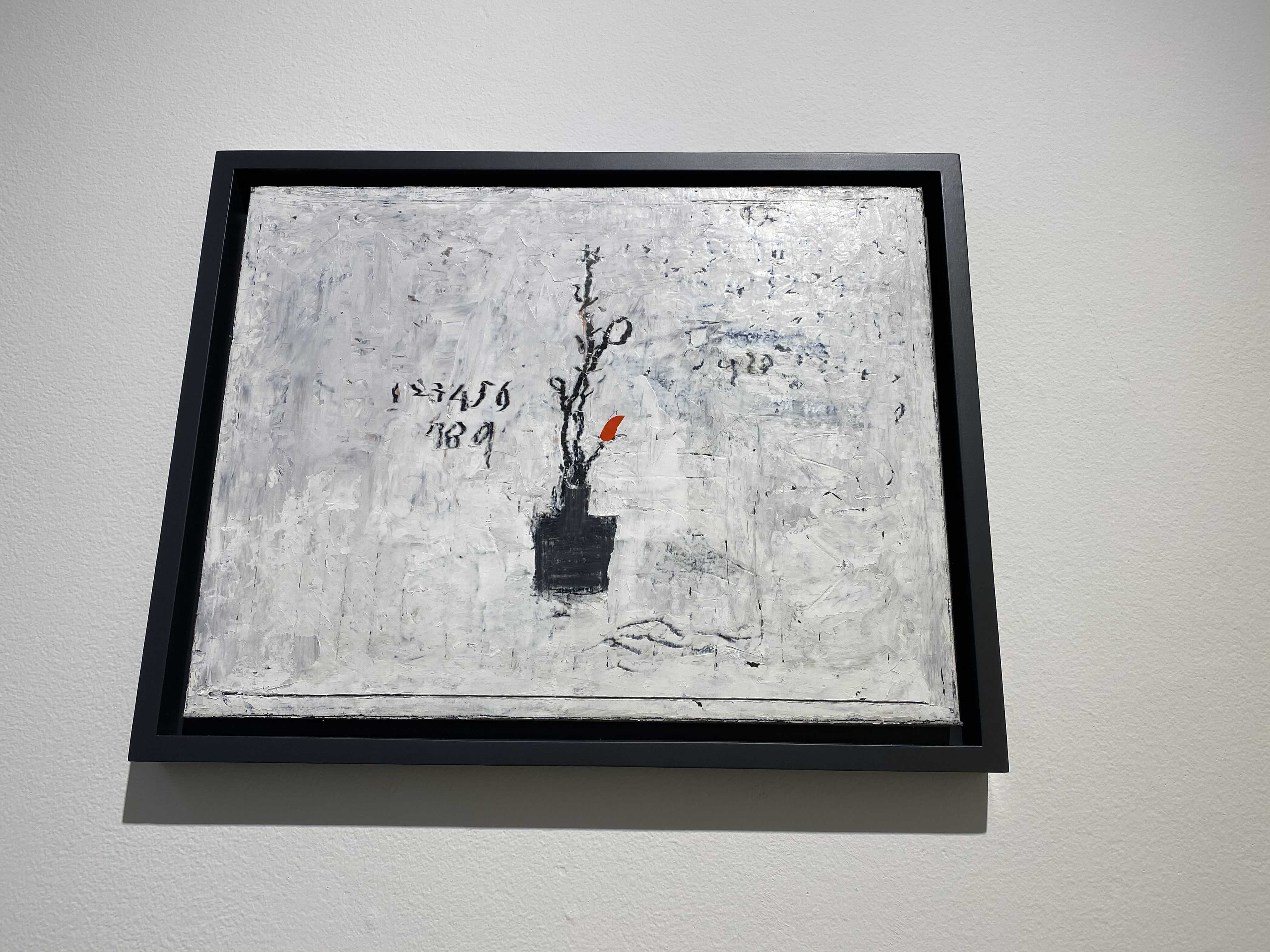 화면의 피부는 매우 납작하지만, 그 위로 물감과 사물이 생명체처럼 서식한다. 다양한 작가만의 표식들이 풀이나 돌처럼 흩어져있다. 그것들이 희한하게 어우러져 매혹적인 작품을 일군다. 그림과 콜라주, 오브제와 조각적 행위가 섞인 상태로, 낙서와 장난 같은 것들이 마음 가는 대로 표면에서 뒹군다. 우연성과 자발성에 기댄 이 조형적 행위는 연쇄적인 고리 안에서 순환한다. 숫자들은 연속적으로, 반복해서 적혀있고 그것 자체로 자족적인 독해될 수 없는 선, 기호들이 곳곳에 출몰한다. 그 사이로 꽃과 새 등의 형상을 거느린 콜라주가 얹혀있다. 그 주변에는 작은 일상의 사물들이 은밀하게, 조심스레 안착되었다. 그림과 콜라주, 오브제들은 표면 위에서 차이를 무화시키면서 공존한다. 이미 배경이 되는 바탕 화면 자체가 견고하고 풍부한 물성의 흔적, 아득한 시간과 풍화의 과정을 농밀하게 저장하면서 거의 조각에 가까운 오브제화된 피부를 회임하고 있기에 그 위에 올라간 모든 것들은 밑바닥에서 자연스레 베어 올라오는, 불가피하게 밀려나온 것으로 보인다. 표면과 분리되지 않는 그림이자 바탕을 지지대 삼아 그것과 내용적, 형식적 연관성의 공모관계를 부단히 조성하는, 일구어가는 그림이다.
