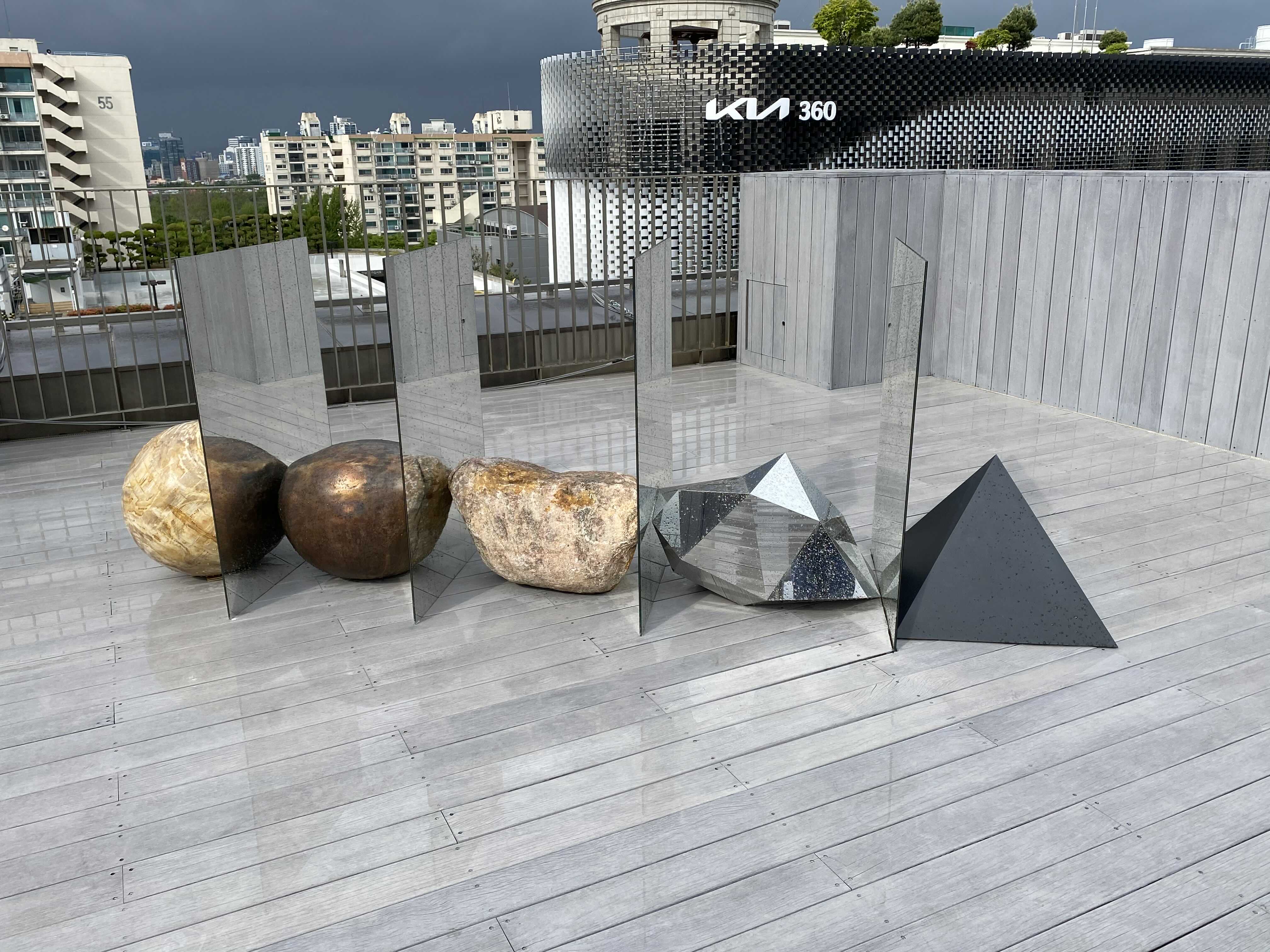 쾨닉은 20년동안 독일에서 가장 흥미로운 현대 미술을 선도하는 갤러리로 자리 잡은 곳인데요. 이번에 쾨닉 서울 개관전에 20여 명의 작가들의 다양한 문화적 배경과 작업방식을 한자리에서 감상할 수 있는 기회였습니다. 갤러리는 옥상에도 작품이 여러 작품이 전시되어 있습니다. 관훈갤러리에서 봤던 예페 하인의 작품을 볼 수 있어 반가왔습니다.