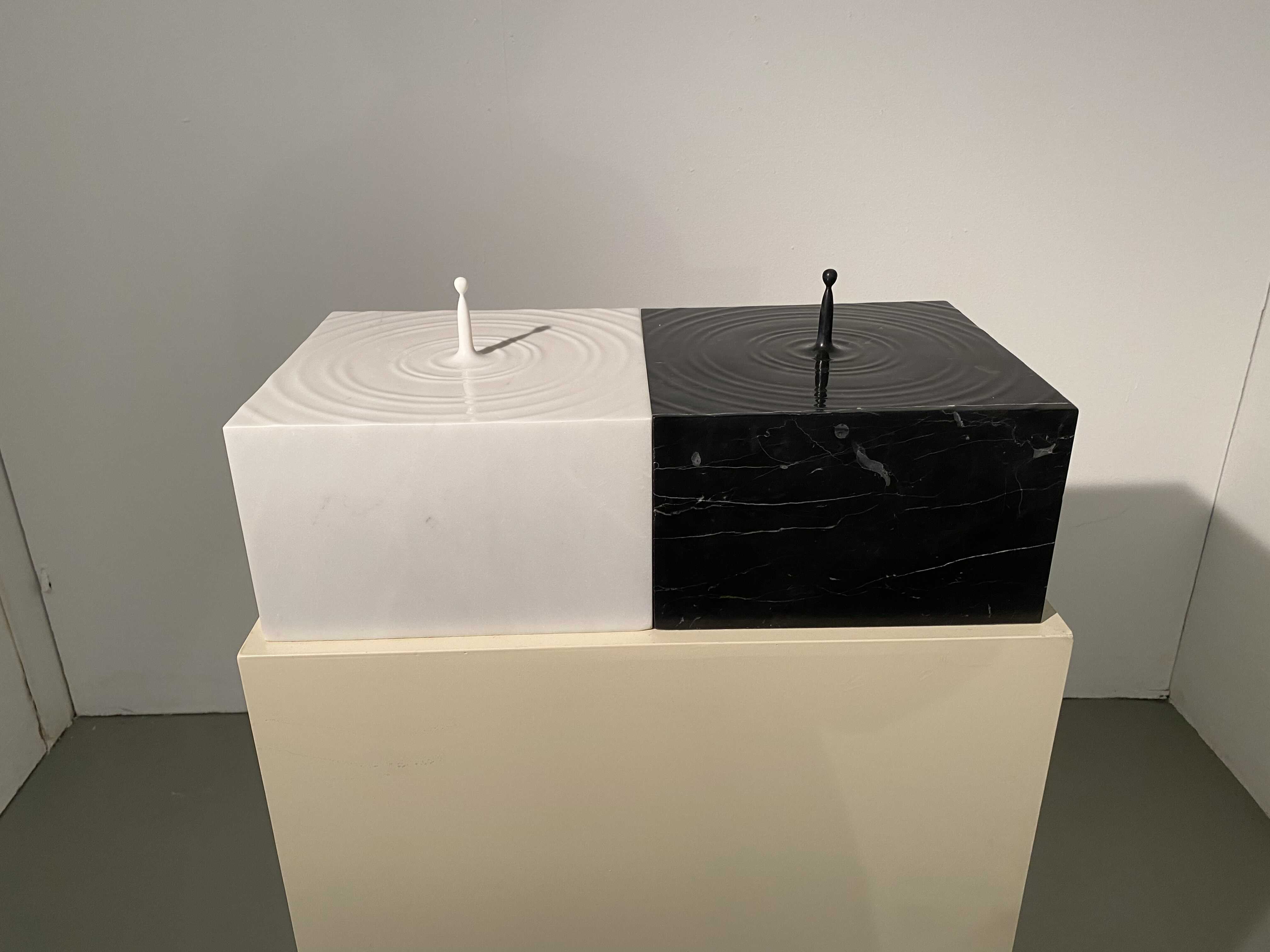 <두 개의 물방울>은 흑색대리석과 백색대리석을 깎아 만든 쌍둥이 조각입니다.