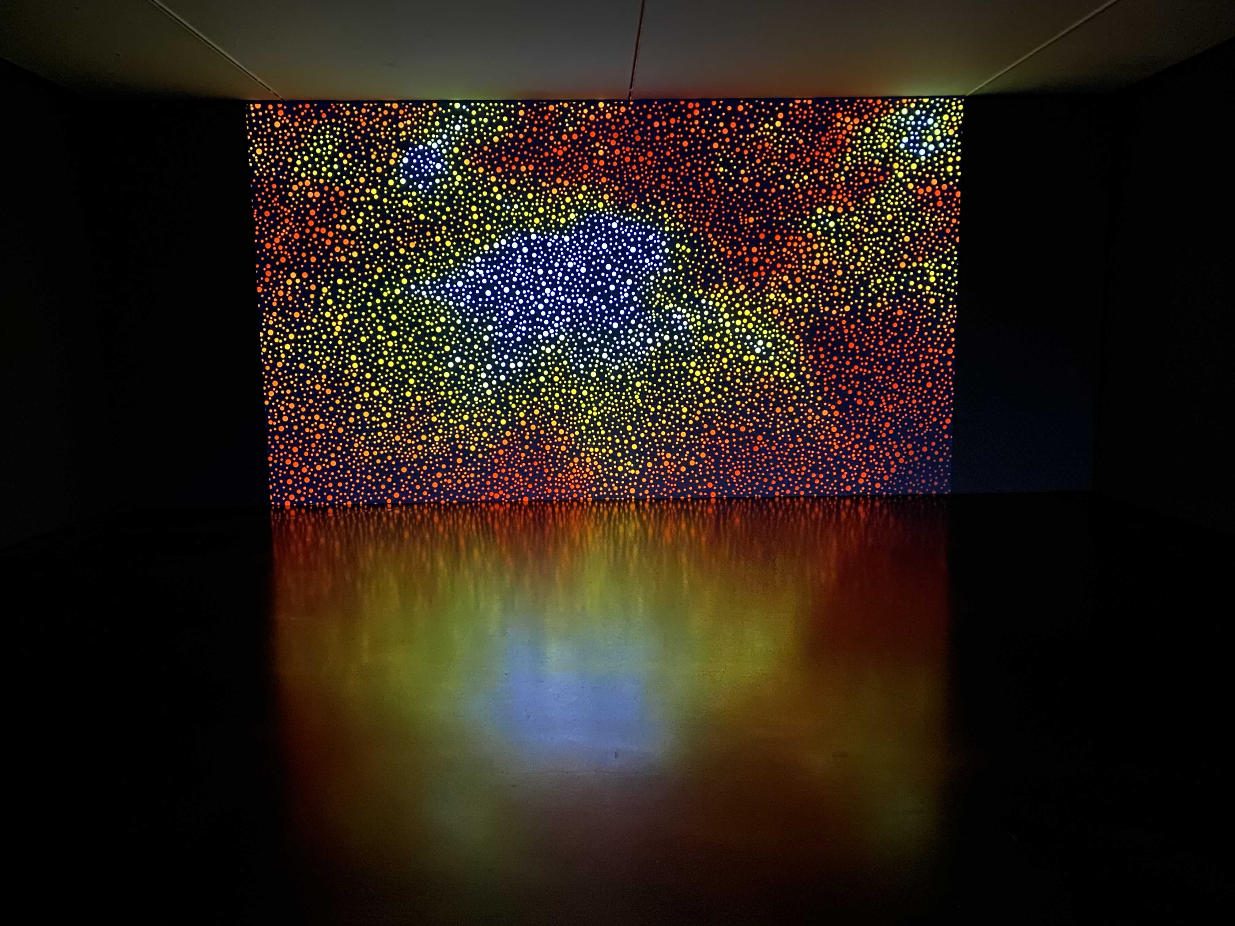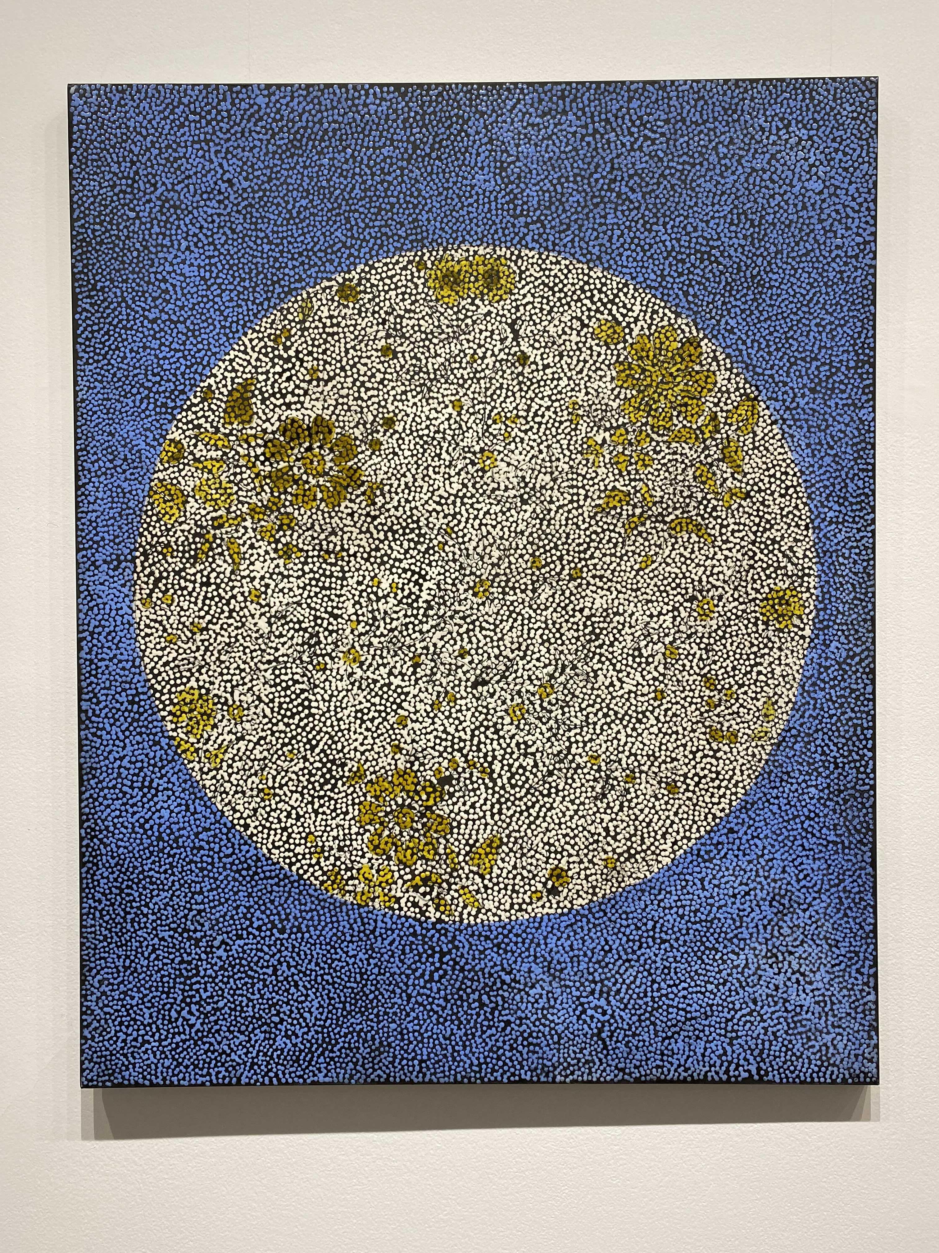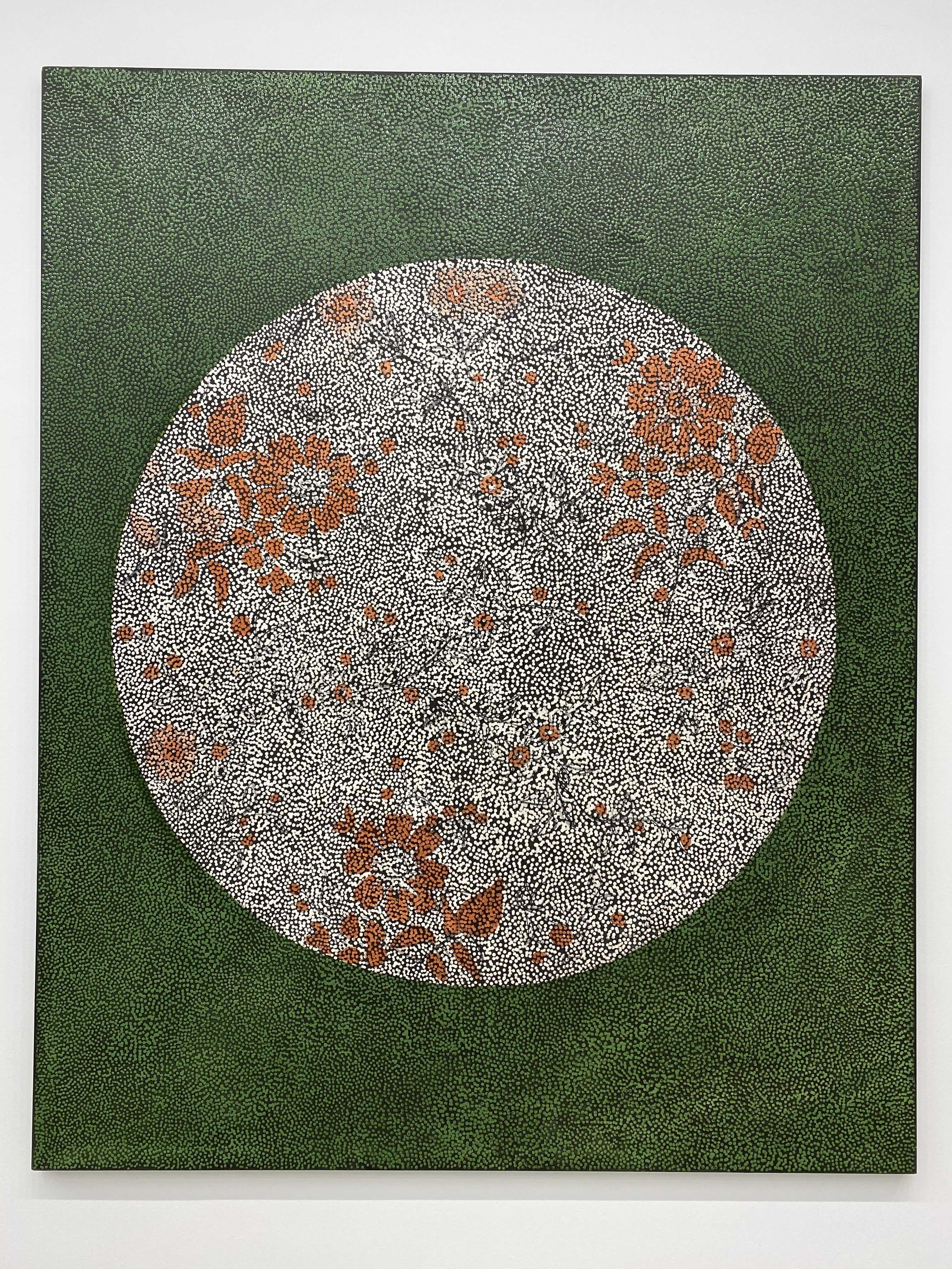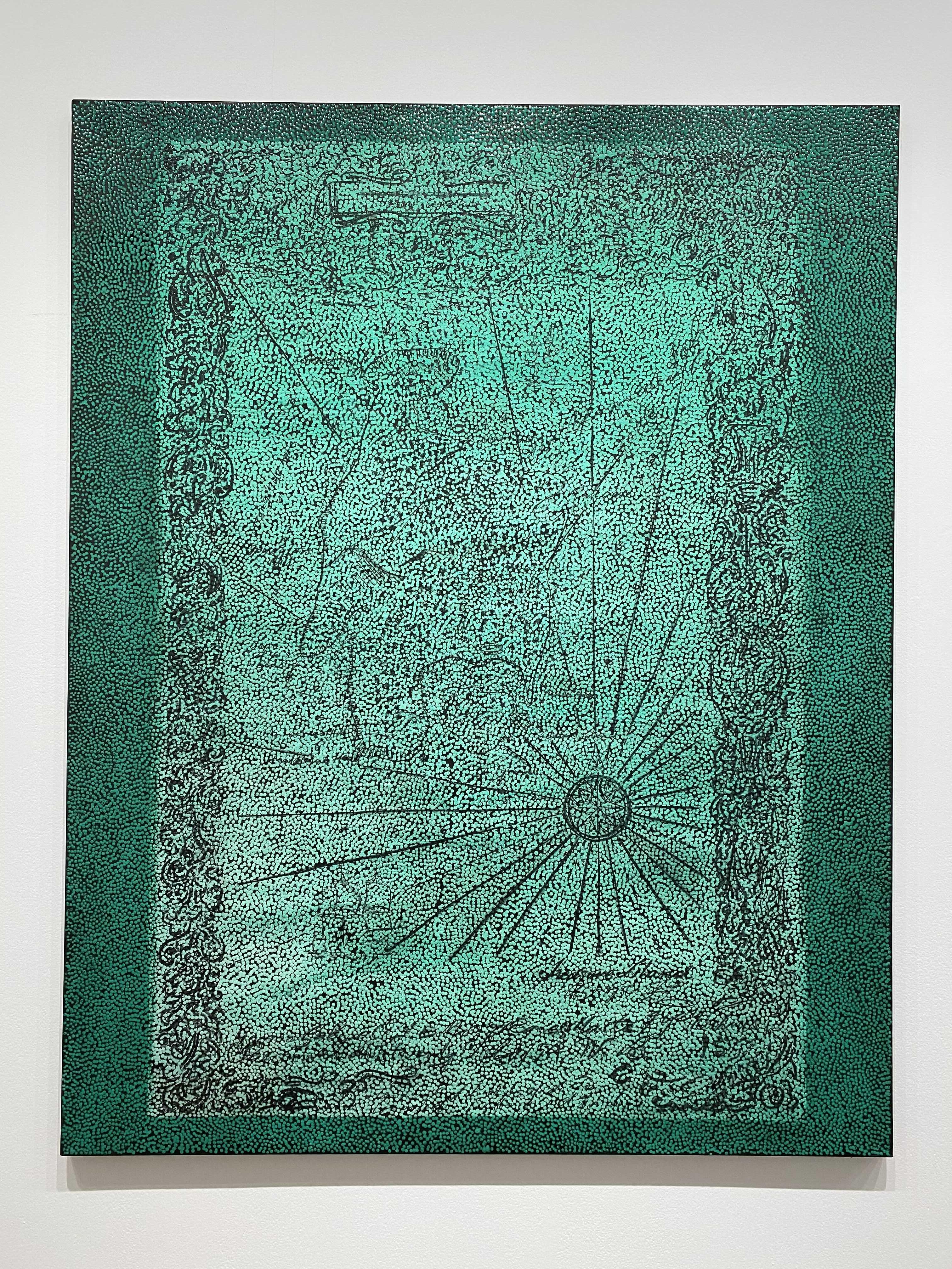 다니엘 보이드의 회화작품을 구성하고 있는, 볼록하고 투명한 풀(glue)로 찍은 점들은 우리가 세상을 바라보는 ‘렌즈’를 재현하는데요. 작가는 “이 렌즈는 우리가 하나의 집단으로서 세상을 이해하고 지각하는 방식, 즉 복수성(plurality)과 다양성(multiplicity)을 나타낸다”고 설명합니다. 각각의 점은 흑과 백, 어둠과 빛 사이에 계산화 된 정보를 시각화해 전달하고, 점을 둘러싼 검고 불투명한 부분은 기억이 소실된 역사적 경험을 자각하고자 하는 노력을 내포하고 있다. 작가가 의도한 양과 음 사이의 영역, 정보와 비정보를 적극적으로 연결해 작품을 이해하며, 과거와 현재 사이의 시점을 재조율하게 됩니다.