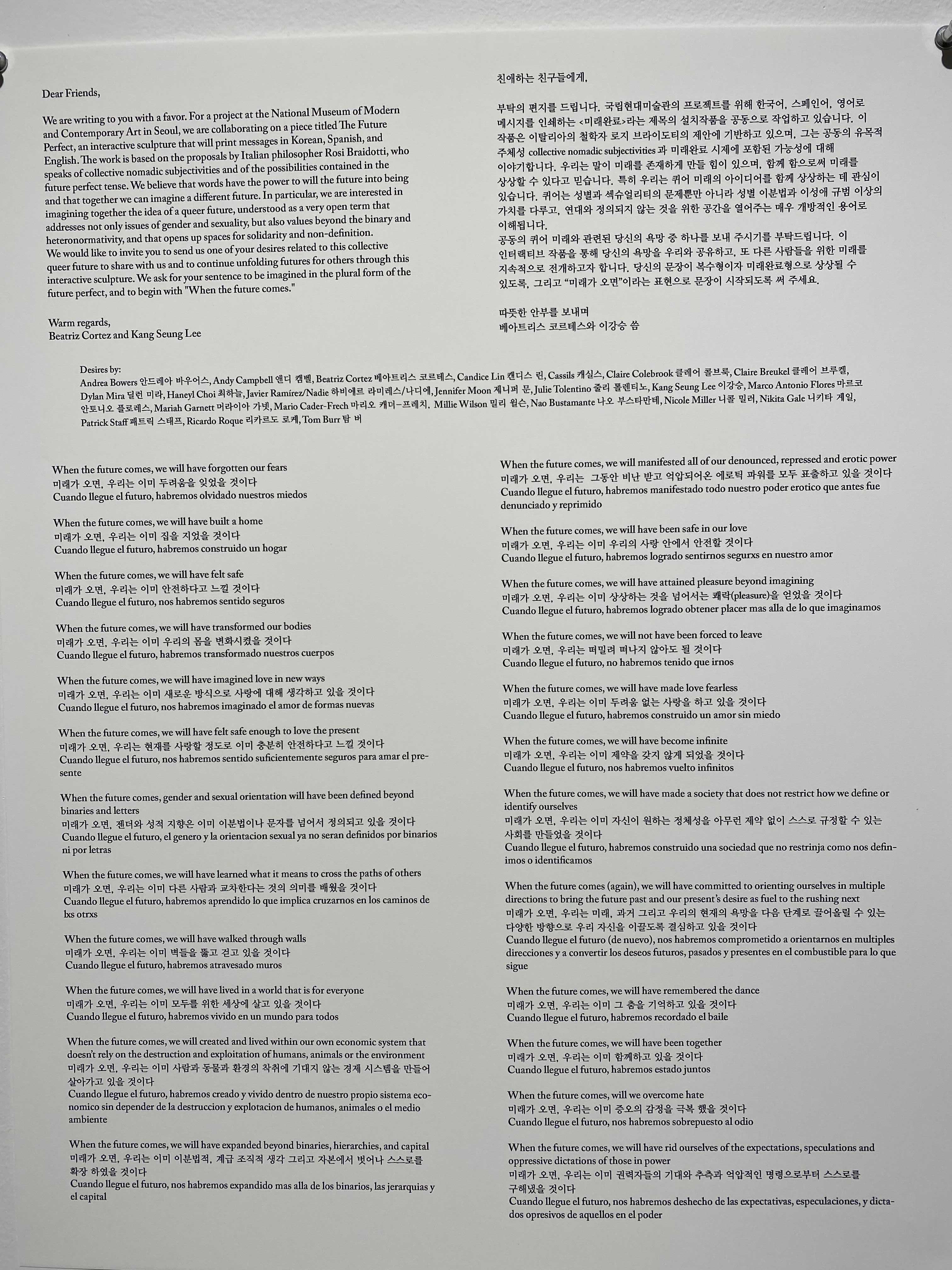 특정 인물과 사건에 관한 작품과 아카이브는 흑연 드로잉, 삼베와 금실 자수, 세라믹, 네온 등 다양한 매체로 ‘번역’되어 전유된다. 특히 작가는 자신의 손을 통해 오랜 시간에 걸쳐 완성되는 촉각적이고 노동집약적이며 제의적인 의미를 함축한 드로잉과 자수 작업을 주로 만듦으로써, 은폐되고 삭제된 역사의 다시 쓰기를 제안한다. 또한 작품 제작에 인종, 성적 지향, 출신 등이 다양한 동료 예술가를 협업자로 초대하는데, 이들은 대안적 담론을 직조하는 일에 적극적으로 동참하면서 또 다른 서사 창출에 기여한다. 때문에 이강승이 작품을 제작하는 과정과 그렇게 도출된 결과물은 참여와 교육, 공유의 이상적 가치가 반영된 큐레토리얼 프랙티스의 일환으로 남다른 의미를 간직한다.