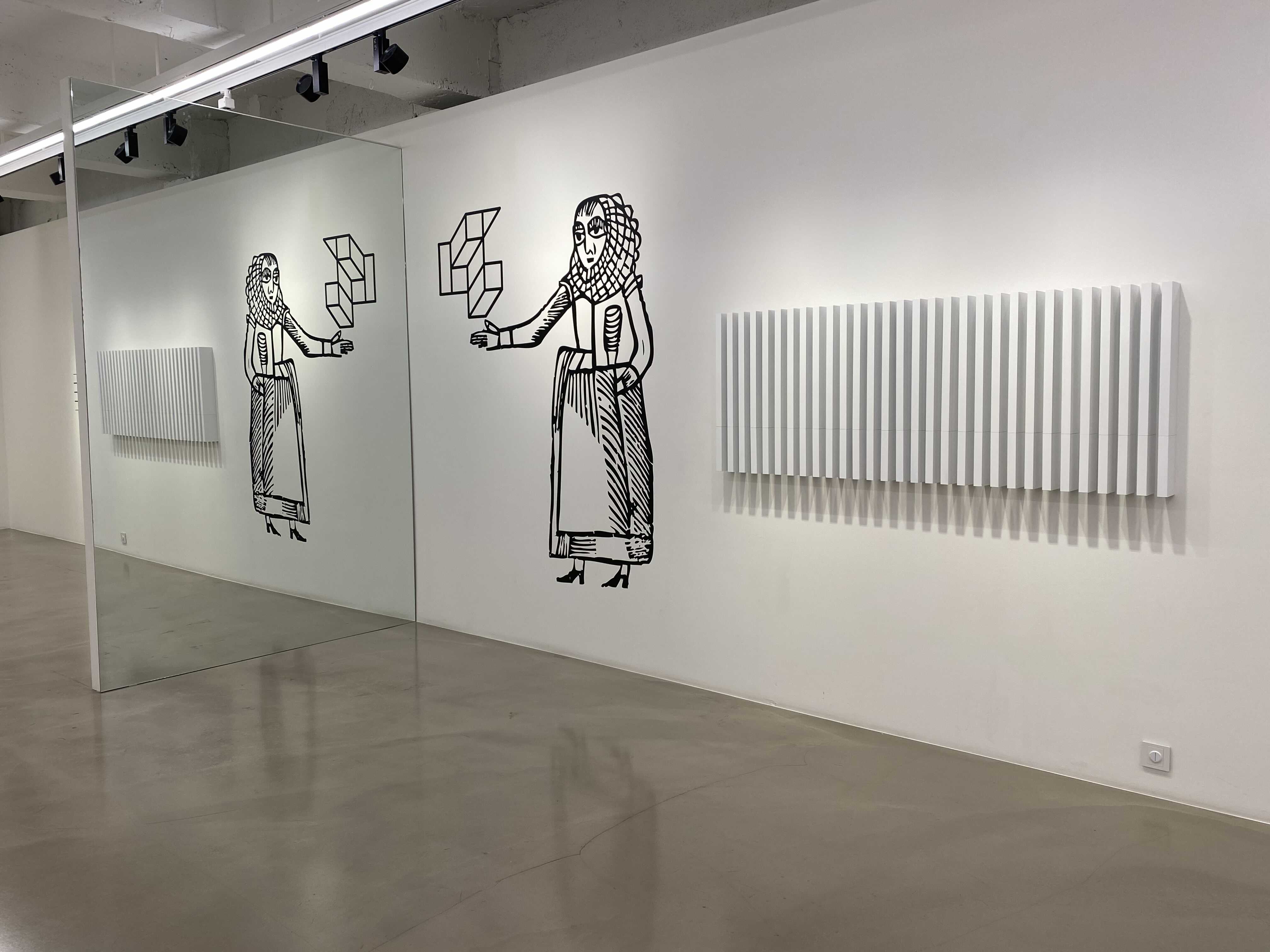 이번 전시에서 극한의 자동화를 추구하고 있는 현대 사회의 양태로부터 17세기 영국의 설화까지의 다양한 주제를 유려하게 녹여낸 신작들을 선보입니다. 텍스트, 다양한 색과 배열의 철제 구조물, 설화를 모티브로 한 일러스트레이션들은 부여된 역학 구도하에서 전시 공간을 전유하며, 작가가 던진 의미심장한 제목의 함의를 유추해 보도록 이끕니다.