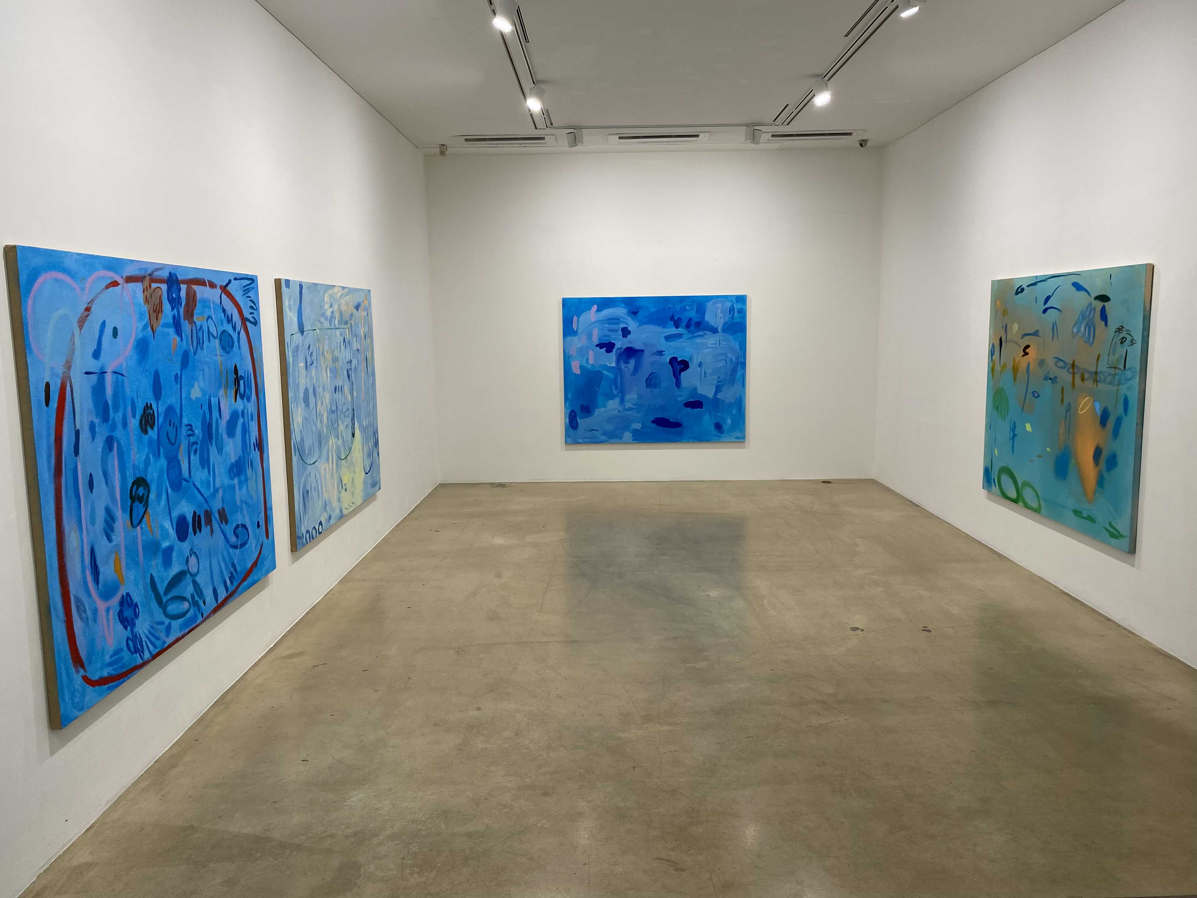 원앤제이 갤러리는 오는 11월 11일(목)부터 12월 11일(토)까지 오래도록 회화의 매체적 실험을 지속해 온 박경률 작가의 아홉 번째 개인전 《환상 한 조각》을 개최한다. 이번 전시에서는 150호 동일한 사이즈의 청색 회화 약 15점이 소개될 예정이다. 박경률 작가는 이전부터 캔버스의 안과 밖, 회화와 회화가 아닌 매체를 함께 탐구하며 회화가 가진 한계와 가능성을 가늠해보려는 전시를 보여주었었다. 그러다 2020년 두산갤러리에서 가졌던 개인전 《왼쪽 회화전》에서 회화의 2차원적 공간성에 대해 본격적으로 탐구하기 시작했는데, 이번 전시에서는 그러한 2차원적 공간이 회화를 통해 다차원적 공간으로 전환되어 인식되는 찰나를 보여주고자 한다. 이는 전시의 제목처럼 순간적으로 인지되는 ‘환상'의 경험일 수도 있으나 캔버스 안에서 일어나는 무수한 사건들의 층과 겹에 집중하며 공간을 보다 촘촘하게 인식하는 실제적 경험이기도 하다. 그렇기에 작가는 ‘환상 한 조각'이라는 단어로서 그러한 인식이 물리적 실체를 갖고 존재하는 회화적 경험임을 암시한다. 작가는 이러한 회화 안에서의 공간 탐구를 위해 다른 조건 - 캔버스의 크기와 색, 이미지 - 을 제한하고 붓질, 캔버스와 물감의 층만을 이용한다. 그러한 그의 그림들은 엷게 칠해진 물감의 층이 그 아래 발라진 아교층과 다시 그 아래의 캔버스 층을 차례로 드러내면서 2차원의 회화의 물리성, 물질성에 주목하게 한다.
