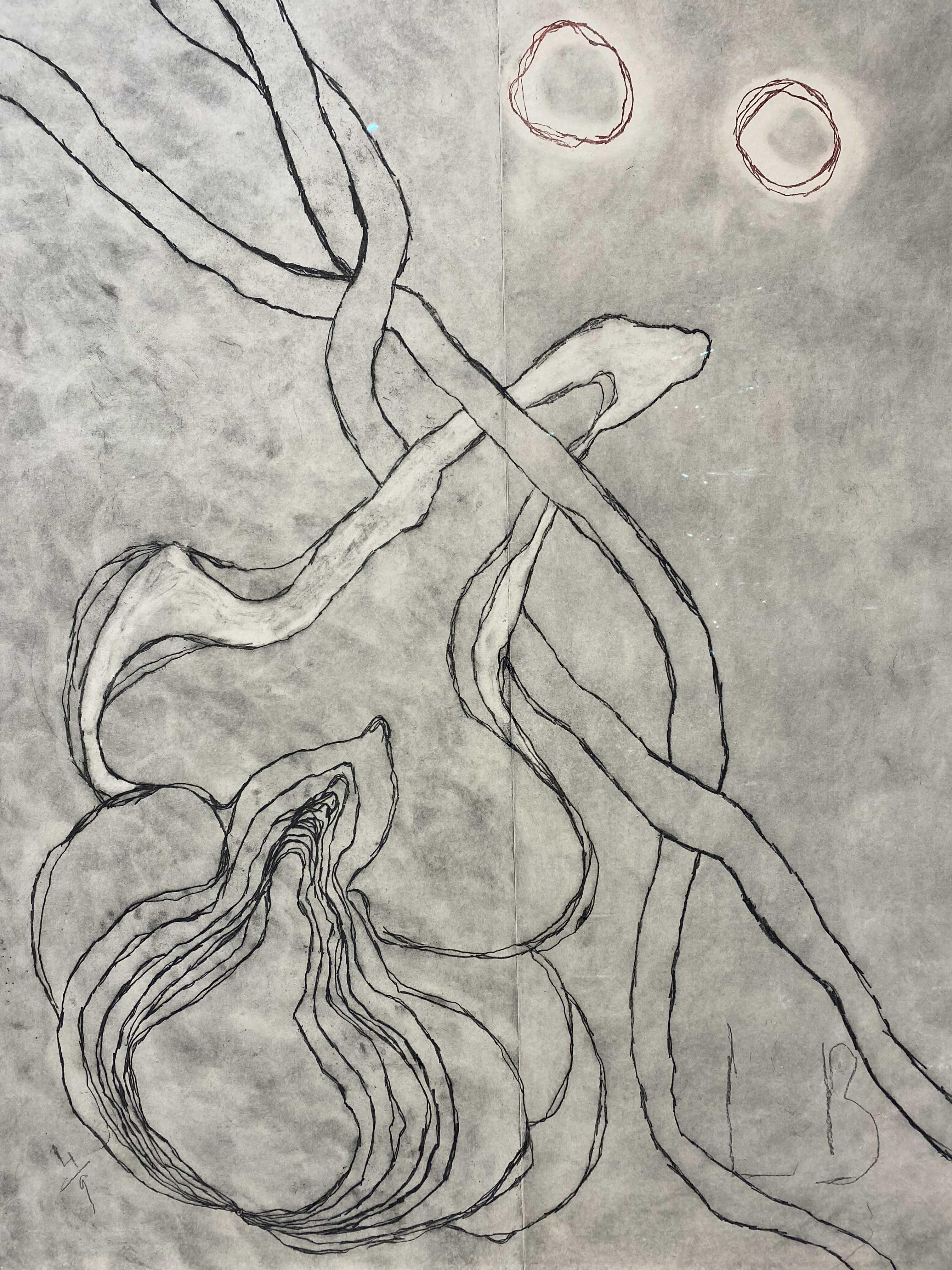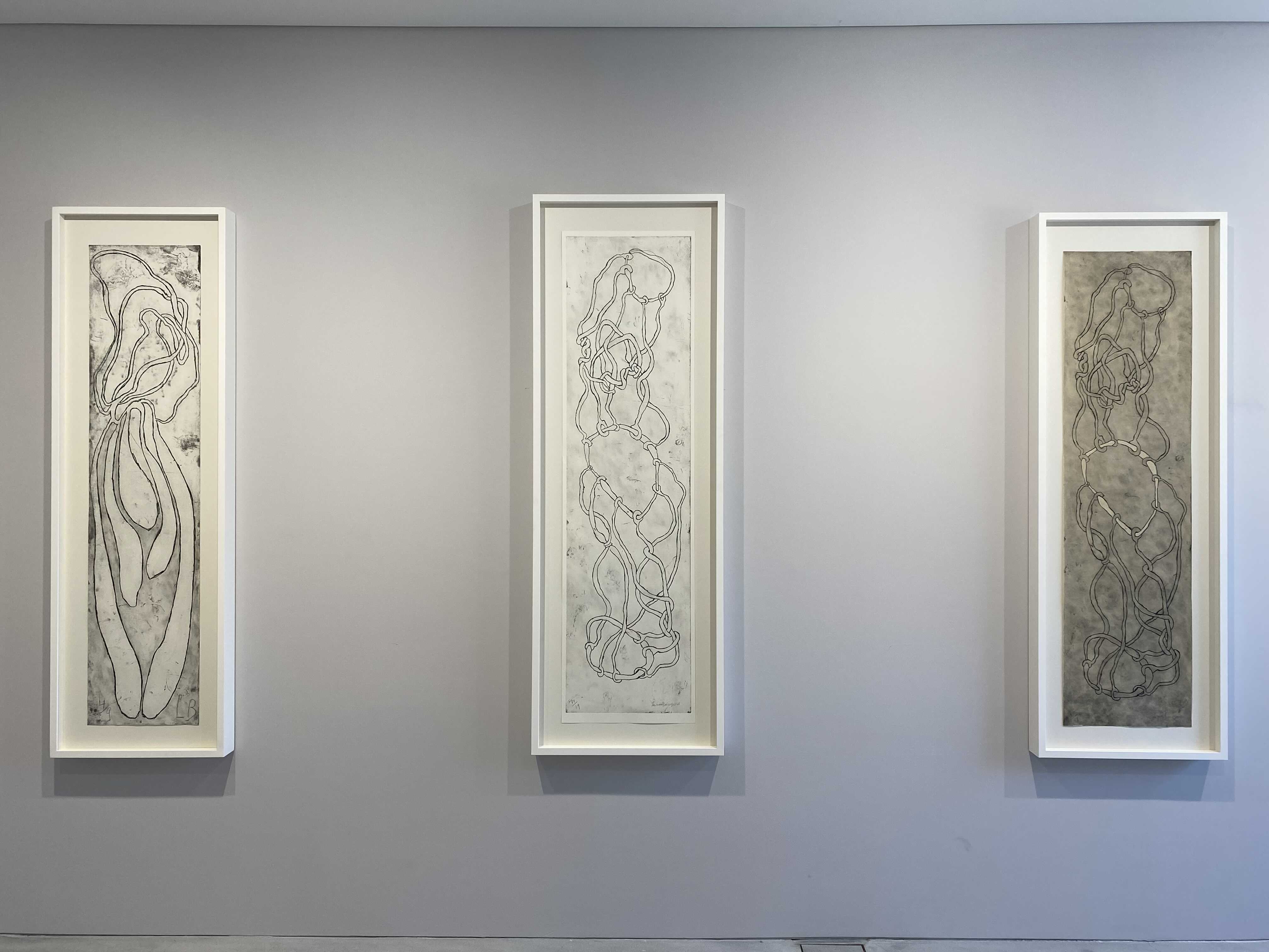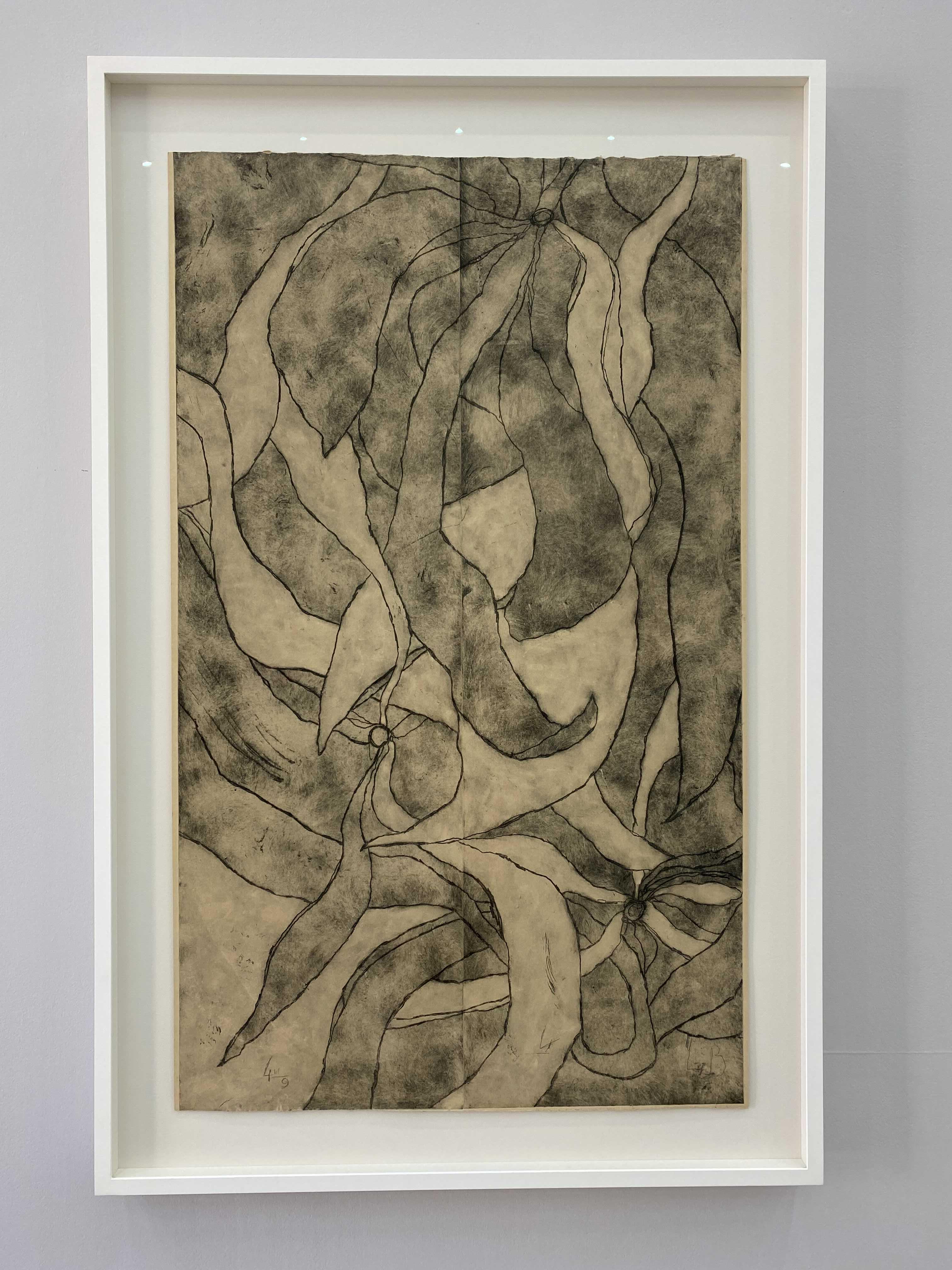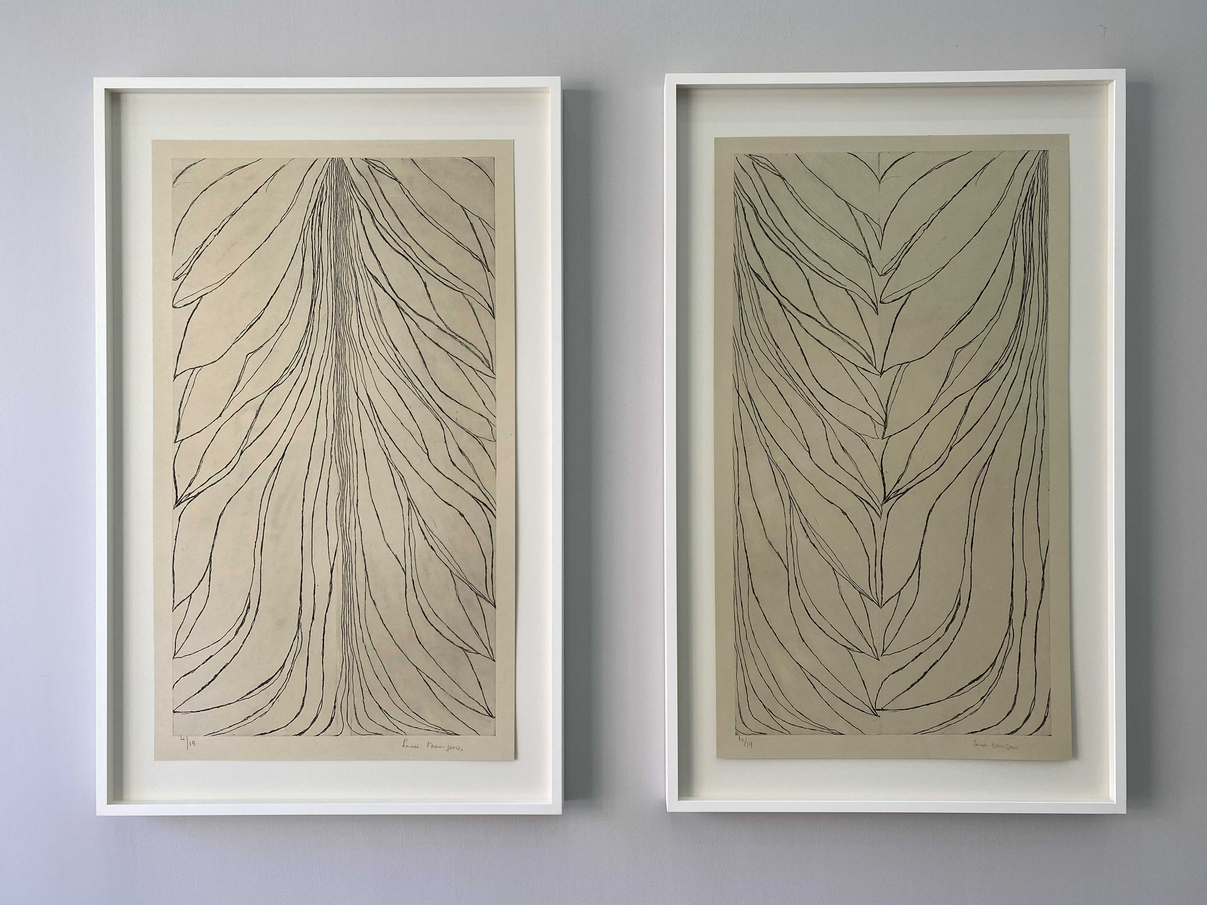 특히 <내면으로 #4> 연작은 부르주아의 후반 형식 및 주제 실험의 출발점이라 할 수 있다. 그 이후 제작한 <잎사귀 (#4) Leaves (#4)>, <너울 Swaying>, <통로들 (#3) Passages (#3)>, <높이, 그리고 더 높이 Up and Up> 등 동일한 원판을 기반으로 손수 칠해 만든 대형 판화 작품들을 통해 작가가 지속적으로 개발해나간 도상학적 어휘록을 설정했던 셈이다. 부르주아는 일기 등 자신의 글에서 발췌한 텍스트 파편들을 이 작업들에 녹여내곤 했다. 이러한 텍스트와 이미지의 조합은 부르주아와 판화의 평생에 걸친 인연의 시발점으로 거슬러 올라가는데, 일찍이 1947년에 그는 9개의 판화를 9개의 수수께끼 같은 우화와 짝을 맞춘 작품집인 『그는 완전한 침묵 속으로 사라졌다 He Disappeared Into Complete Silence』를 출간한 바 있다.