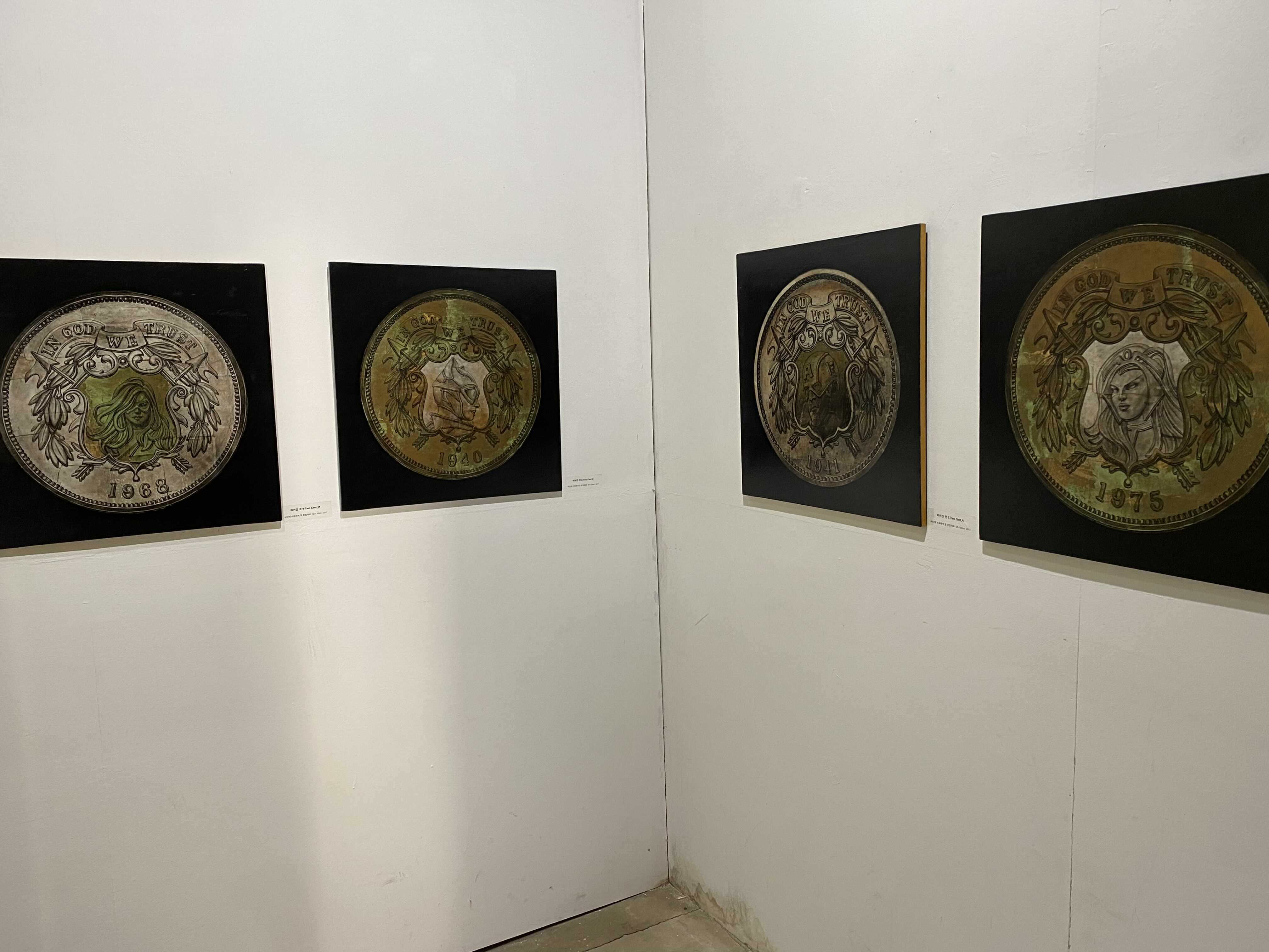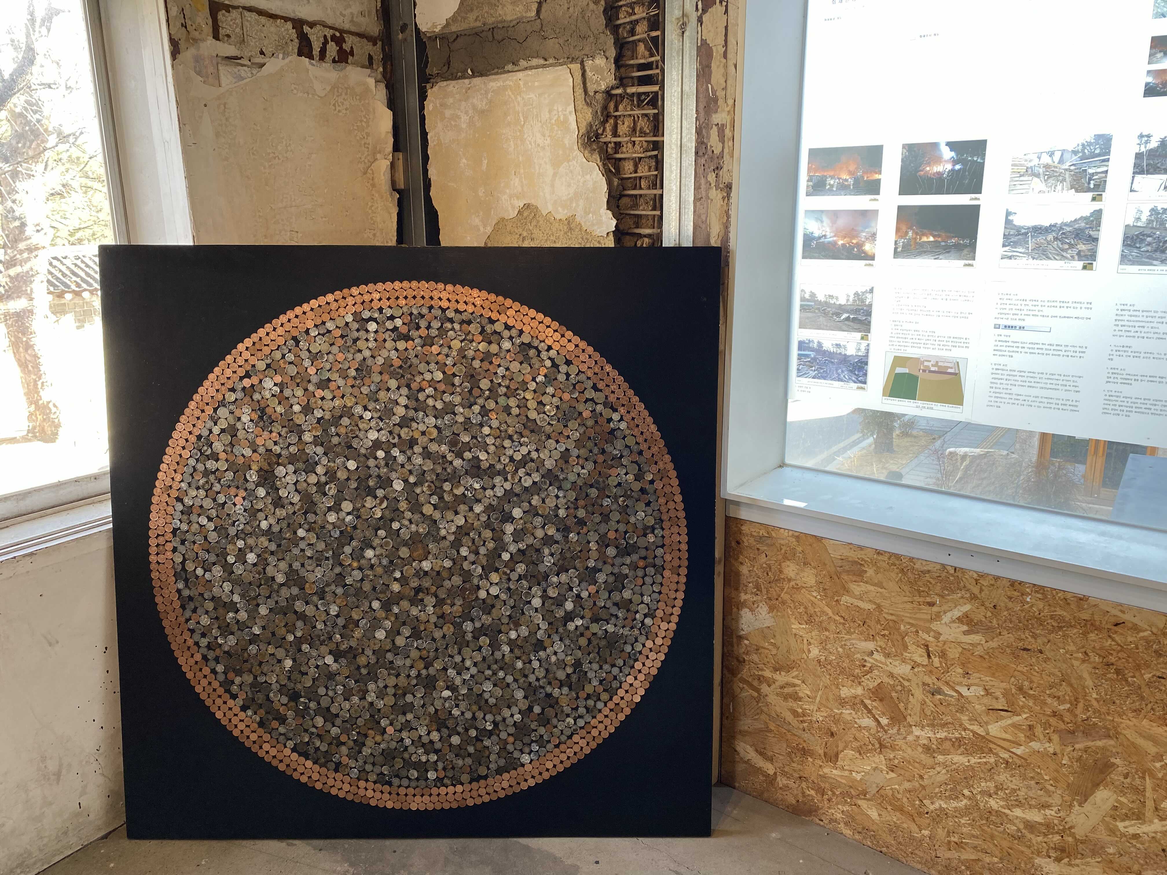 작가는 이번 전시를 통해 설치적 요소를 더한 공간 구성을 시도한다. 10여년 간 모아둔 동전들과 타다 만 액자와 같은 오브제를 병치하는 식의 가변적 설치가 이번 전시에 있어 필수불가결한 선택일지 향후의 자유로운 접근을 예고하는지 오직 전시가 끝난 이후 깨닫게 될 일이다.