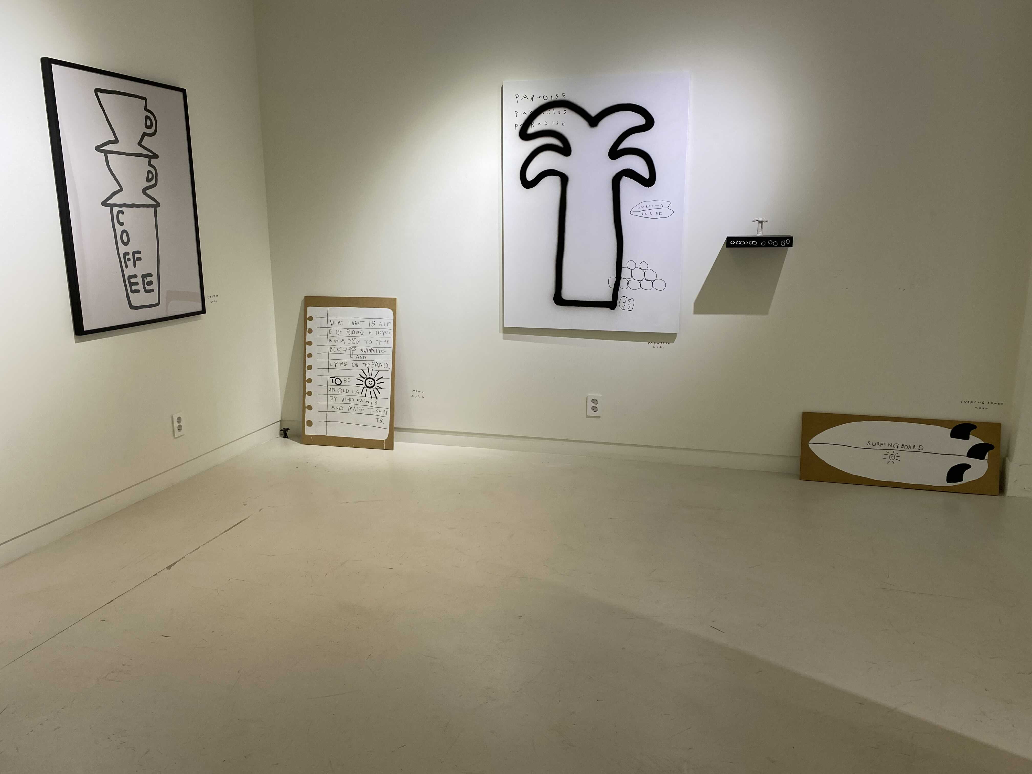누구나 어렵지 않게 받아들일 수 있는 오브제나 정물, 동물, 캐릭터화된 인물 등 작가가 경험하는 것들로 자연스럽게 선정하여 이나피스퀘어만의 회화 방식으로 표현하고 있습니다. 작품에서 보여지는 소재들은 사회 경제적인 큰 이슈가 아닌 작가의 삶을 채우는 주변의 소소하지만 의미 있는 것들에 대해 이야기하고 있습니다. 그로인해 작업은 다양한 의미에서 작가 자신을 투영하고 있습니다.