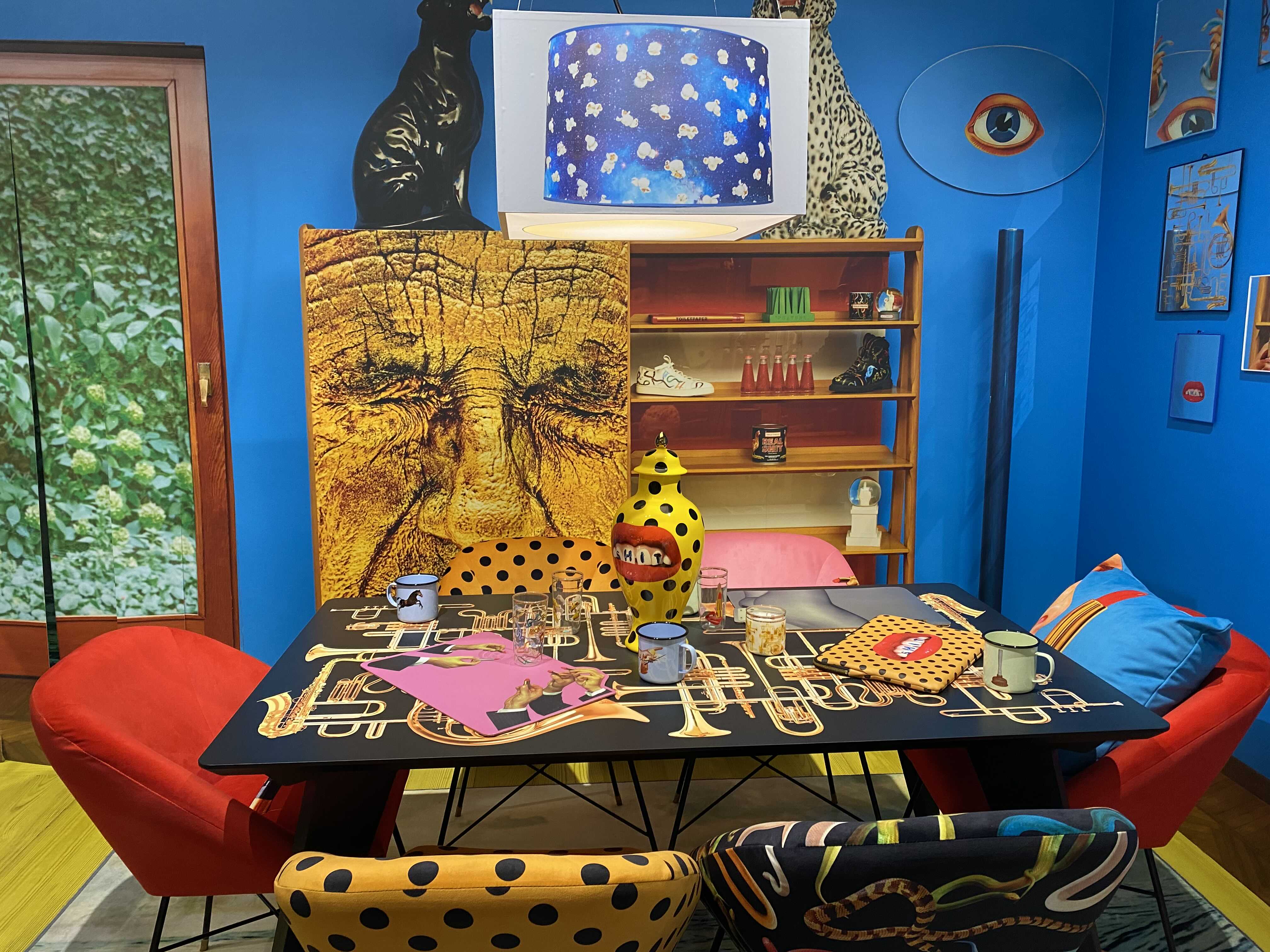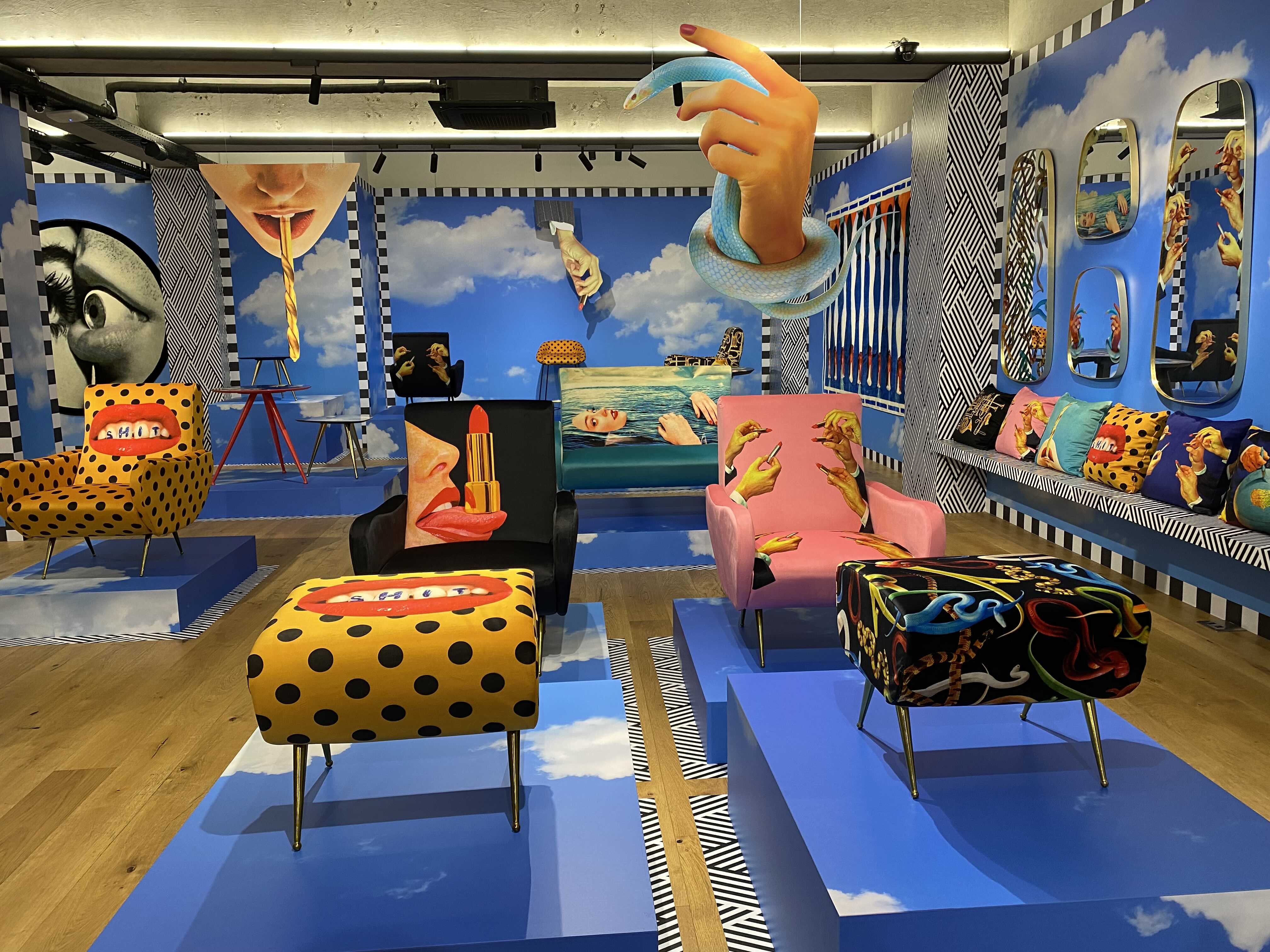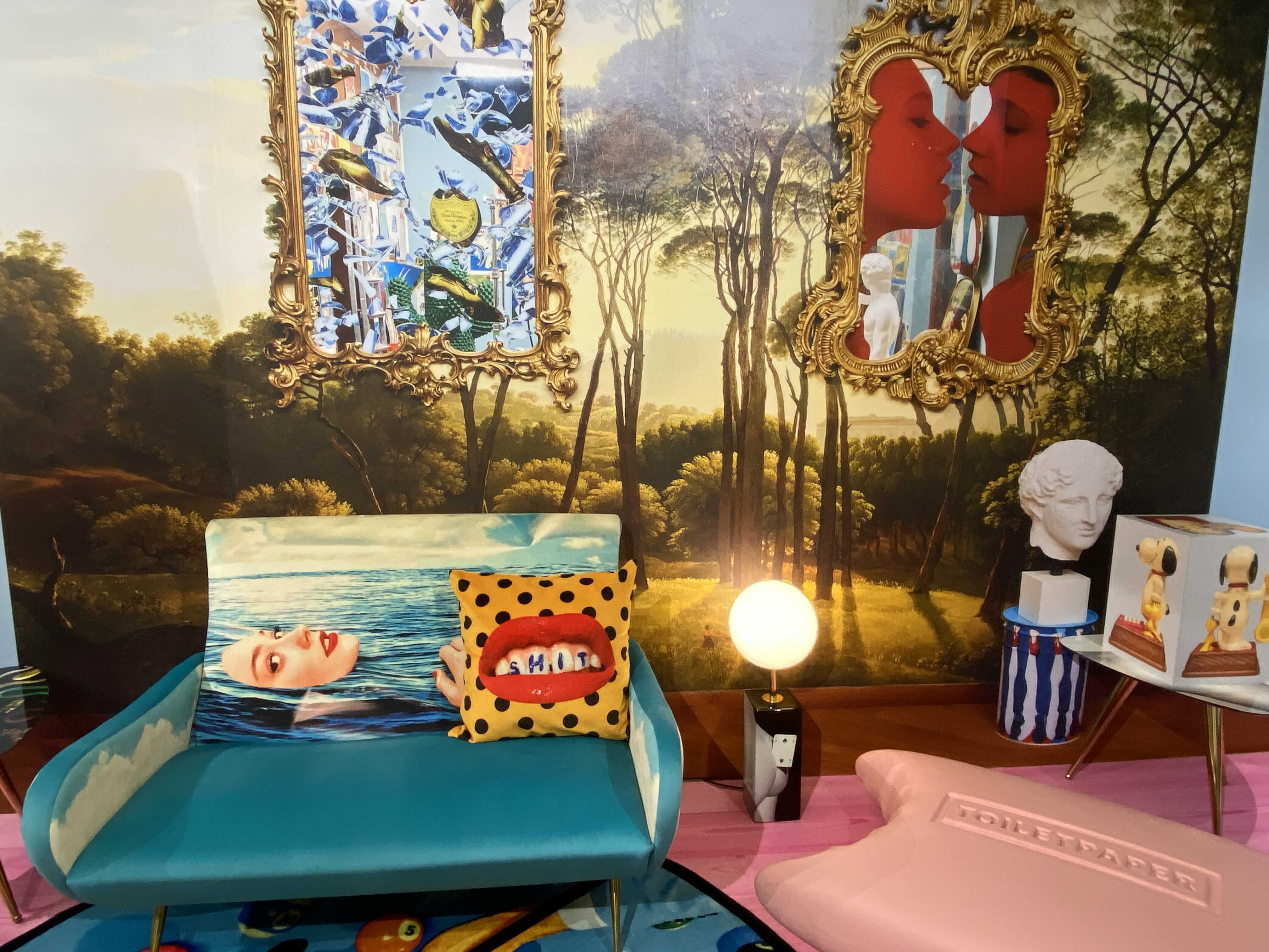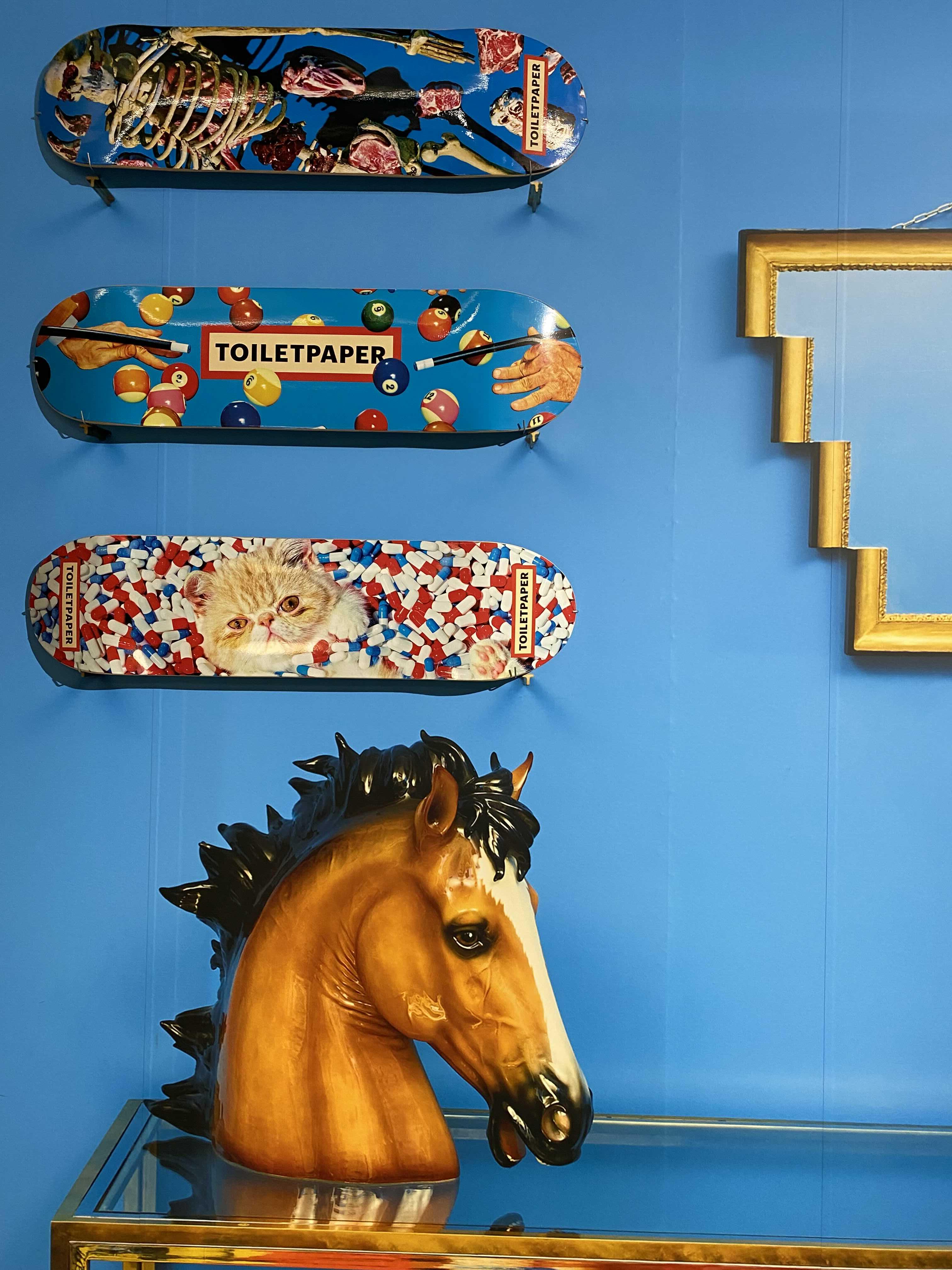 <TOILETPAPER: The Studio>는 TOILETPAPER의 밀라노 본사 스튜디오를 서울 이태원 스토리지에 그대로 옮겨와 관람객을 맞이한다. TOILETPAPER의 스튜디오 정문을 통해 밀라노로 가는 비밀통로를 지나면 TOILETPAPER의 오피스와 함께 거실과 주방, 정원 등의 공간을 만나볼 수 있다. 그간 TOILETPAPER 매거진에서 보았던 다양한 작업들이 미드 센추리 모던 가구와 러그, 거울, 조각상, 갖가지 장식소품 등에 콜라주 되어 현실에는 존재하지 않을 법한 화려한 만화경의 세계가 펼쳐진다.