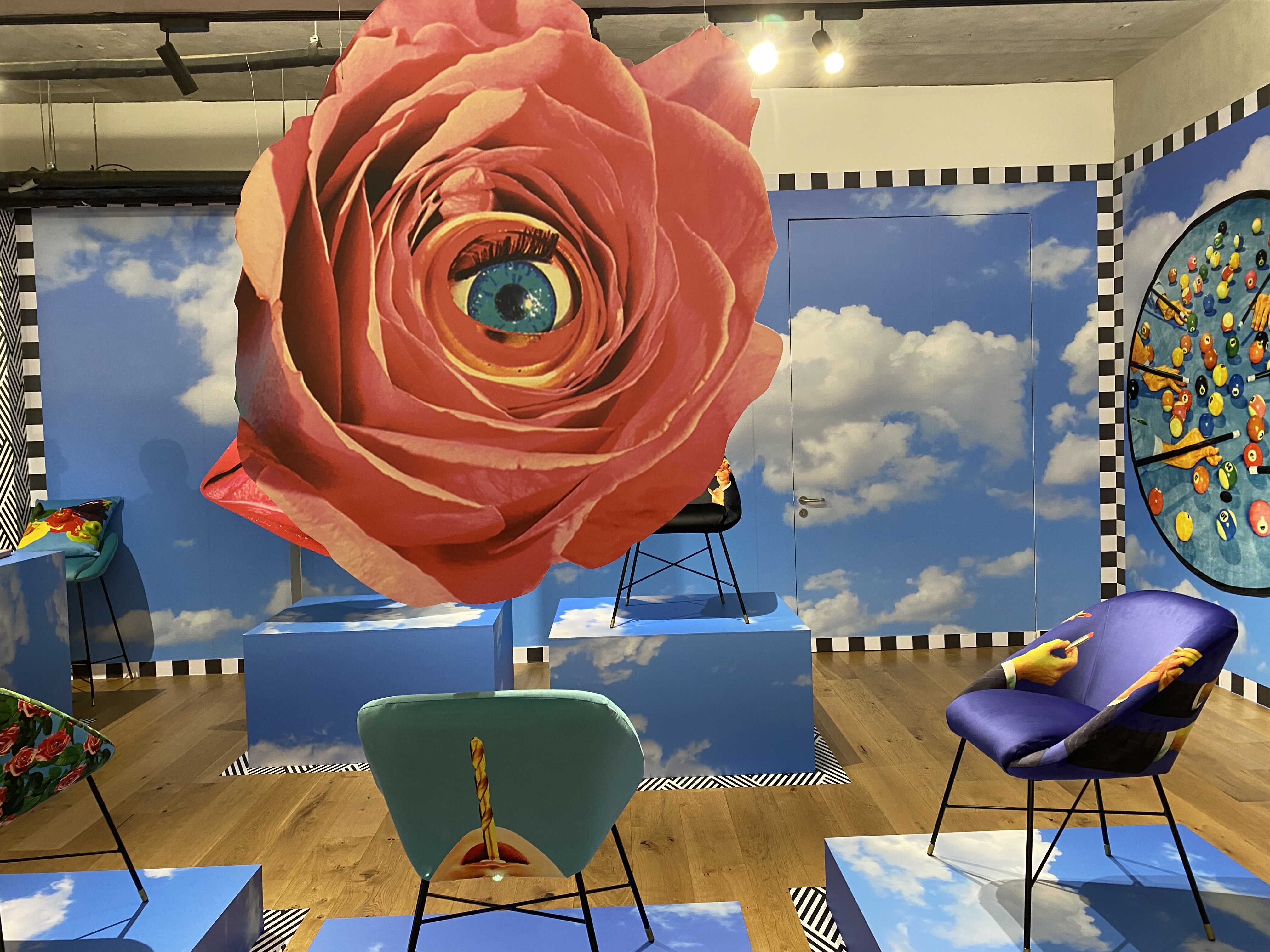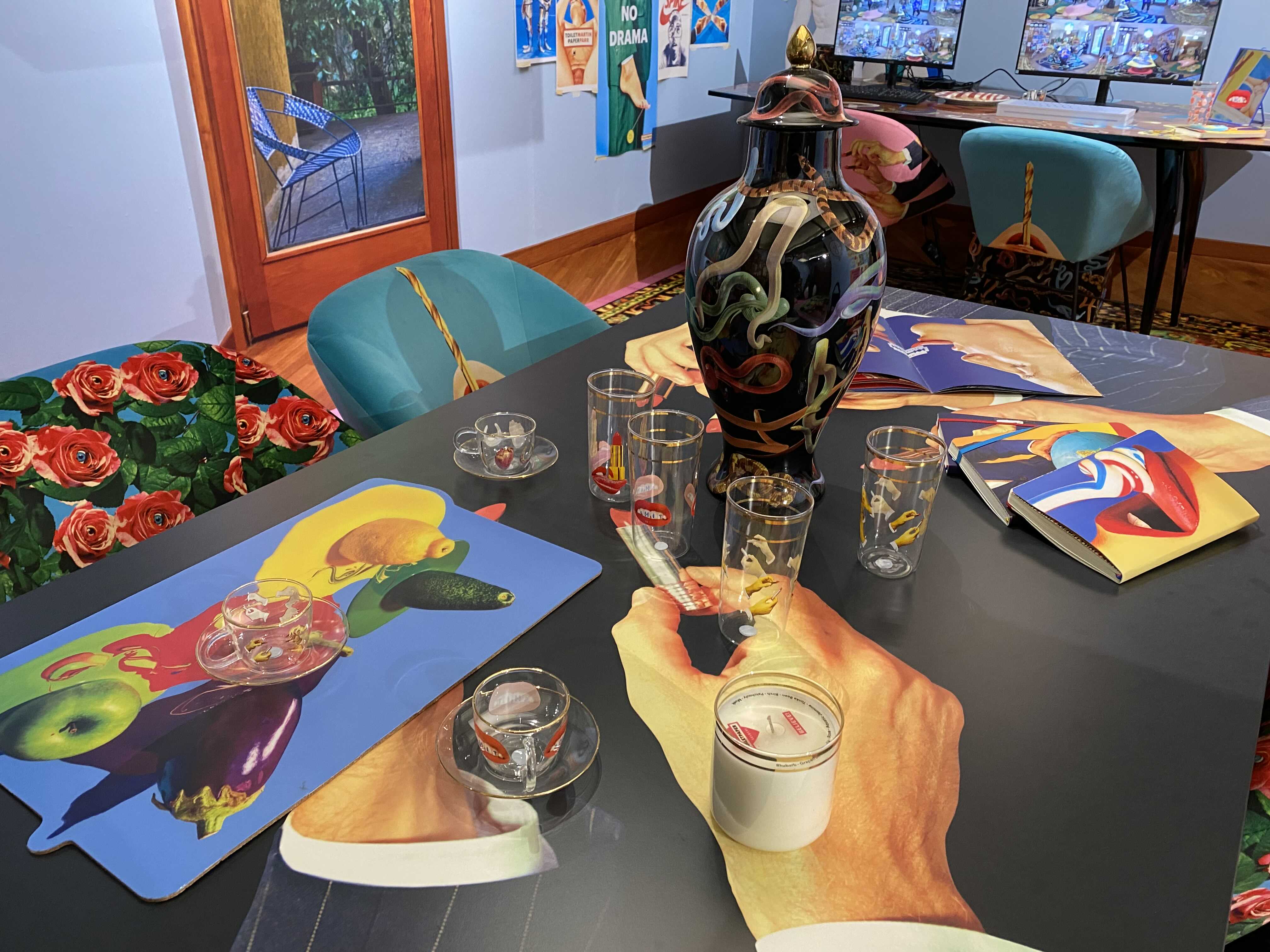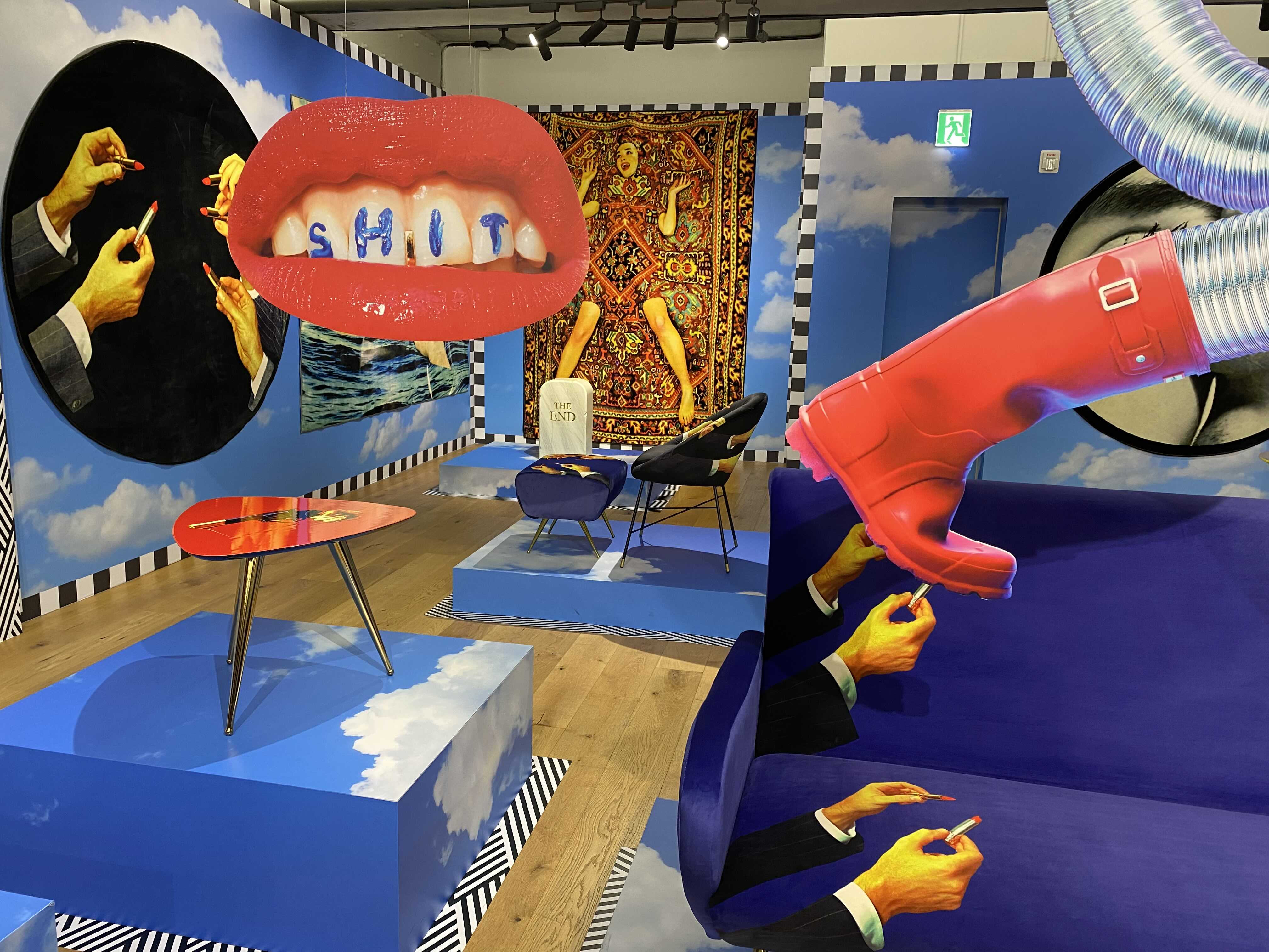 살아있는 듯 눈을 깜박이는 활짝 핀 장미로 덮인 안락의자, 여러 가지 빛깔의 뱀들이 꿈틀거리는 테이블, 소스 범벅인 스파게티로 뒤덮인 조명, SHIT이라고 외치고 있는 붉은 입술이 그려진 벽 등은 마치 무의식의 세계, 탐욕과 광기, 환각, 꿈과 같은 것이 제각기 ‘일상’의 옷을 입고 자신을 드러내는 듯하다. 눈앞에 펼쳐진 예상치 못한 모순되고 초현실적인 풍경은 전시장에 흘러나오는 일상의 소리와 뒤섞이면서 흡사 백일몽 같은 상황을 만들어낸다. 이번 전시를 통해 다양하고 창조적인 차원에서 소통하는 동시대 시각예술의 자유로운 생산성이 우리의 의식과 감각을 깨우고 꿈꾸게 하길 희망한다.