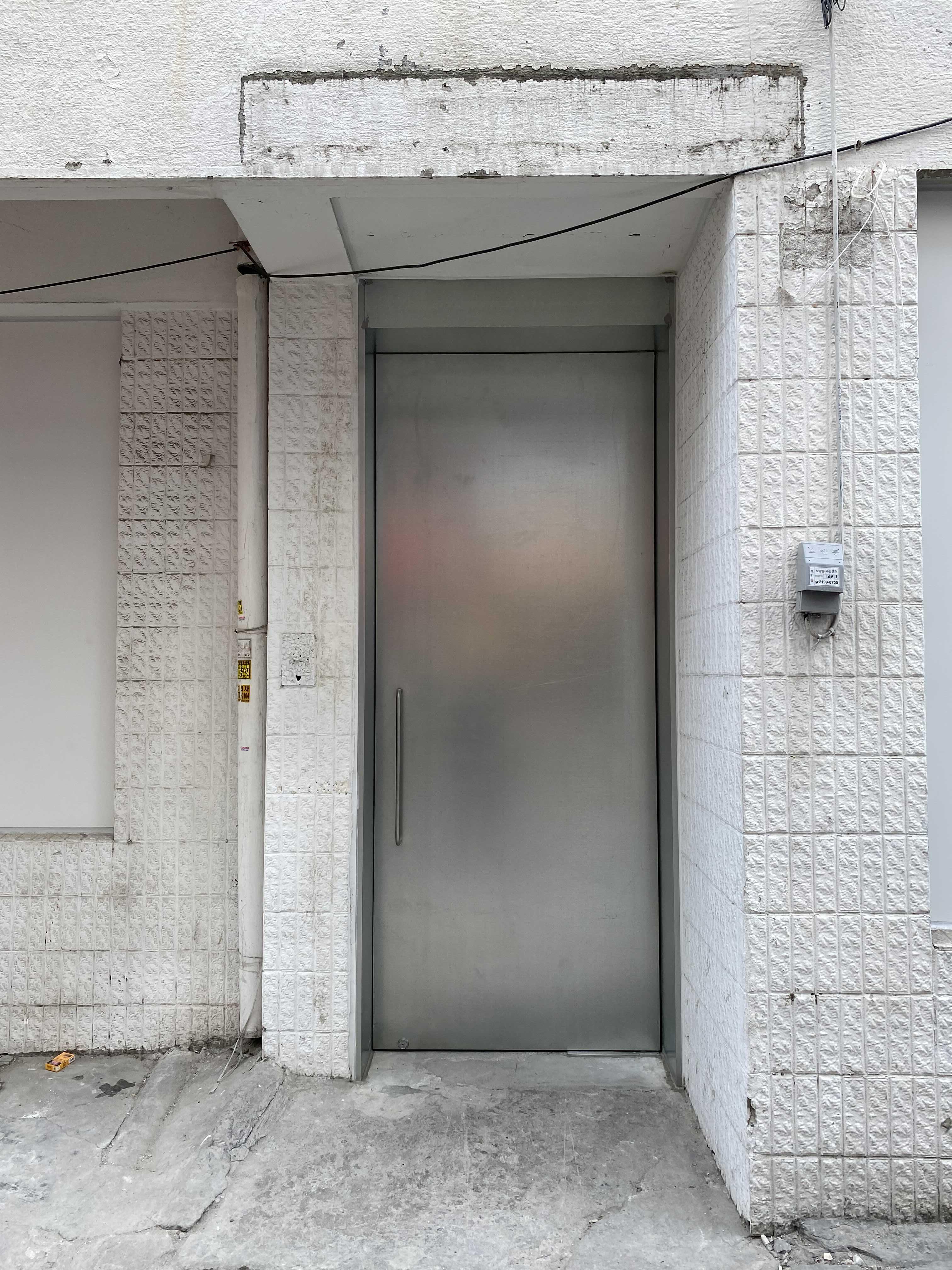 처음에는 들어가는 문을 못 찾았는데요. 건물에서 왼쪽으로 돌아가면 보이는 은색 문(아래 사진)으로 들어가면 됩니다. 새로운 공간에서 슬로베니아 출신의 젊은 작가의 독특한 인물화를 감상할 수 있습니다. 단순한 얼굴을 보니 작가 MADSAKI가 생각나기도 했습니다. 전시 공간은 2층에도 있는데요. 노은님 작가님의 작품을 감상할 수 있으니 놓치지 말고 2층도 꼭 관람하세요.