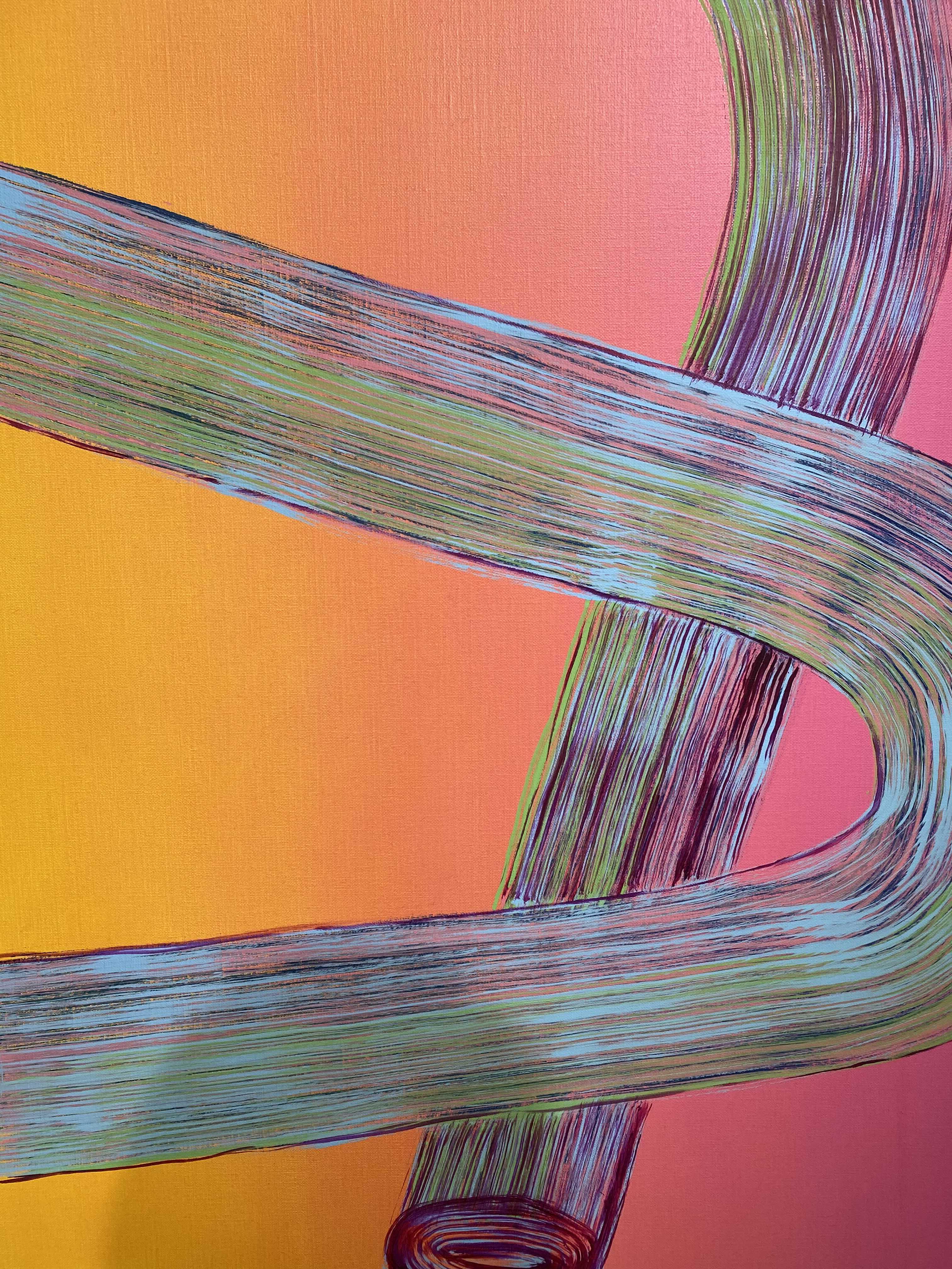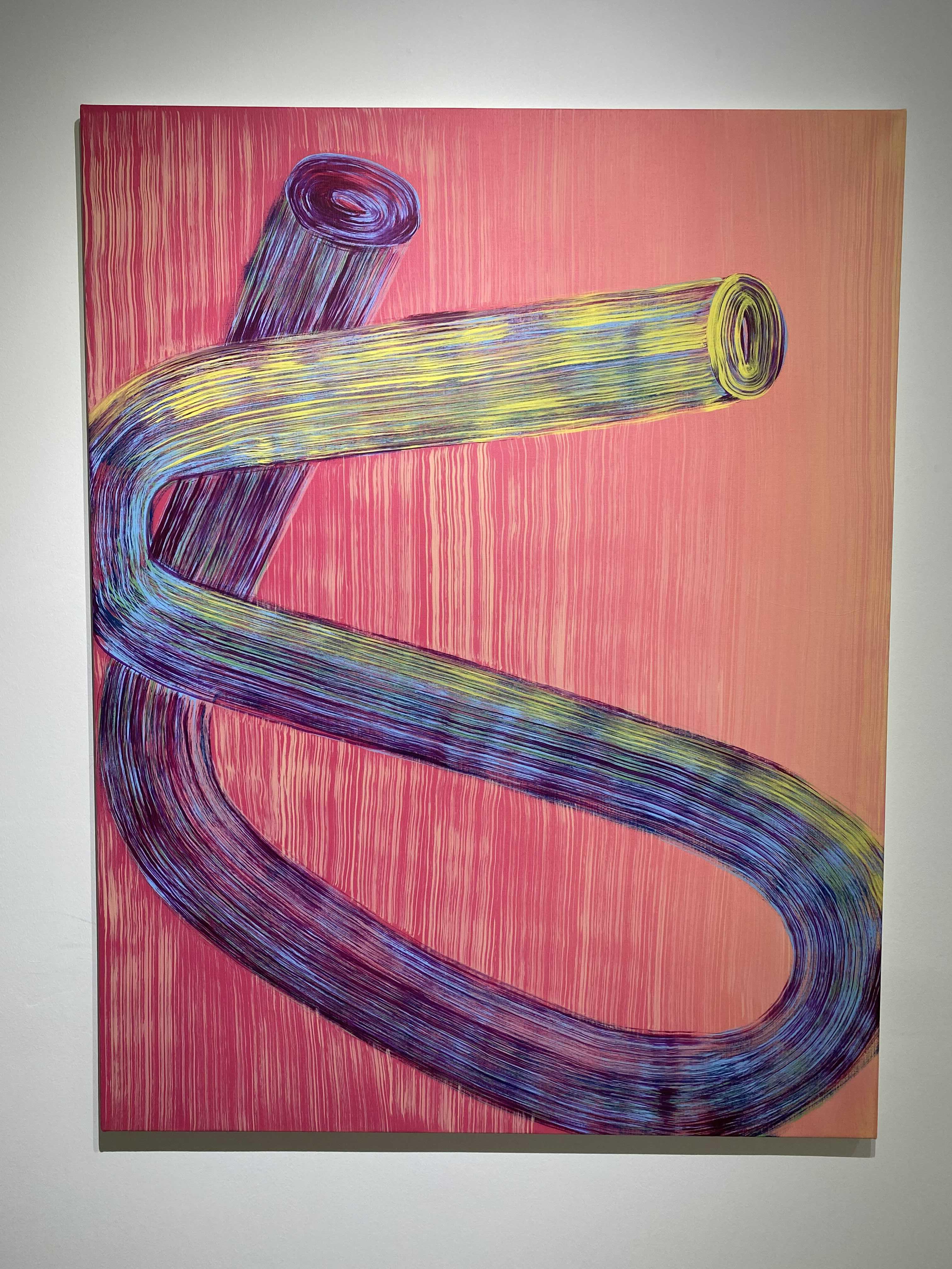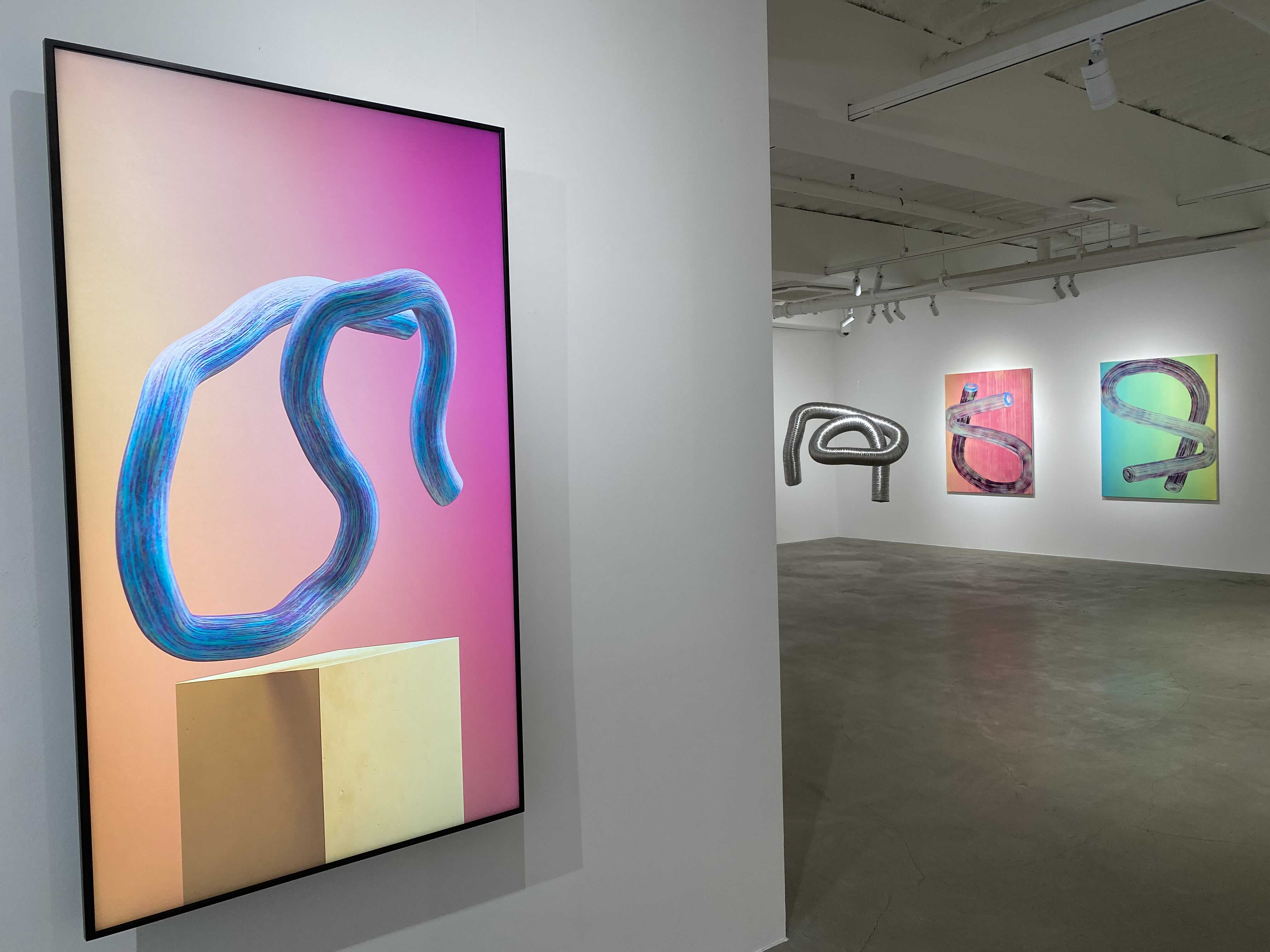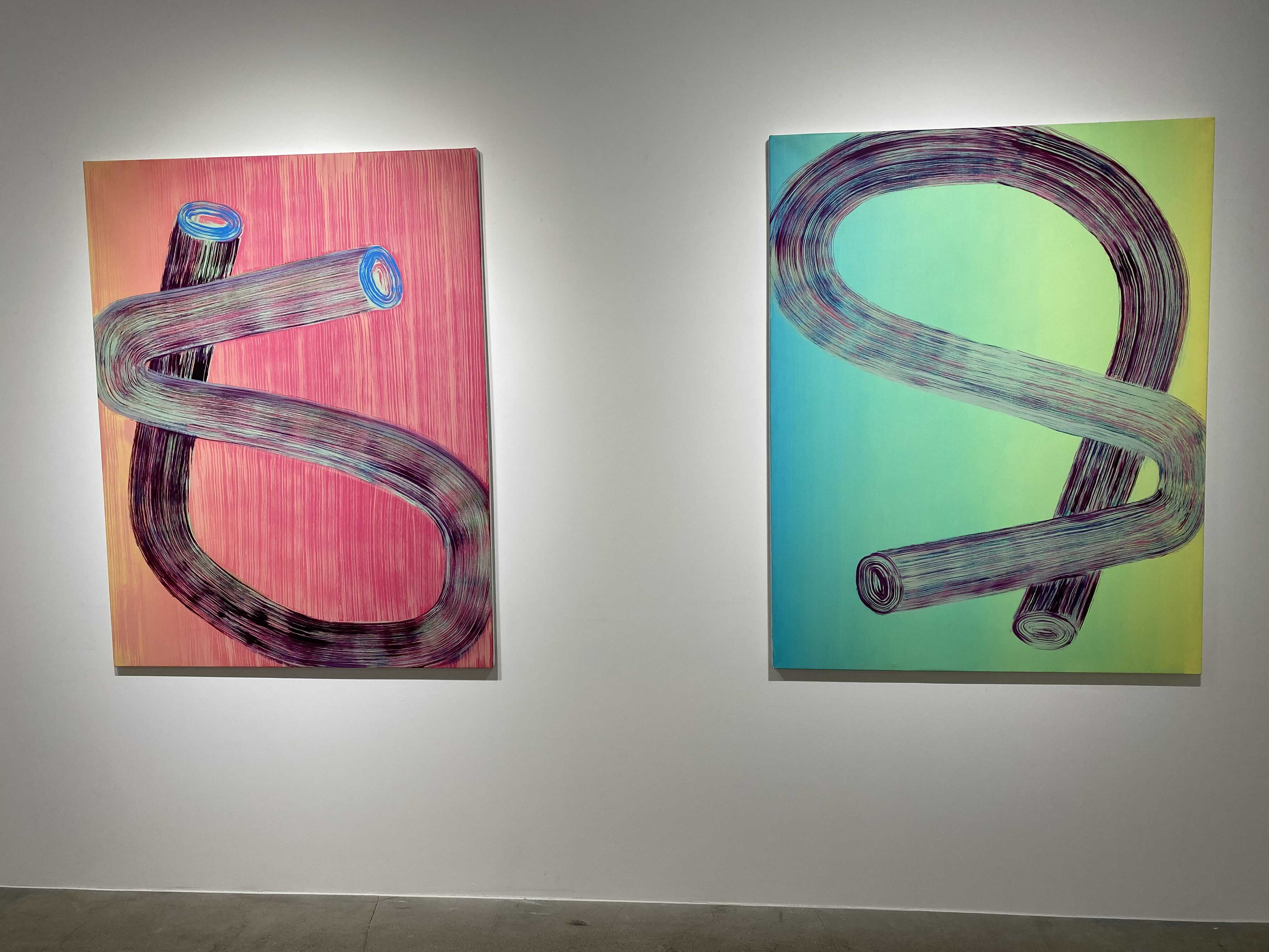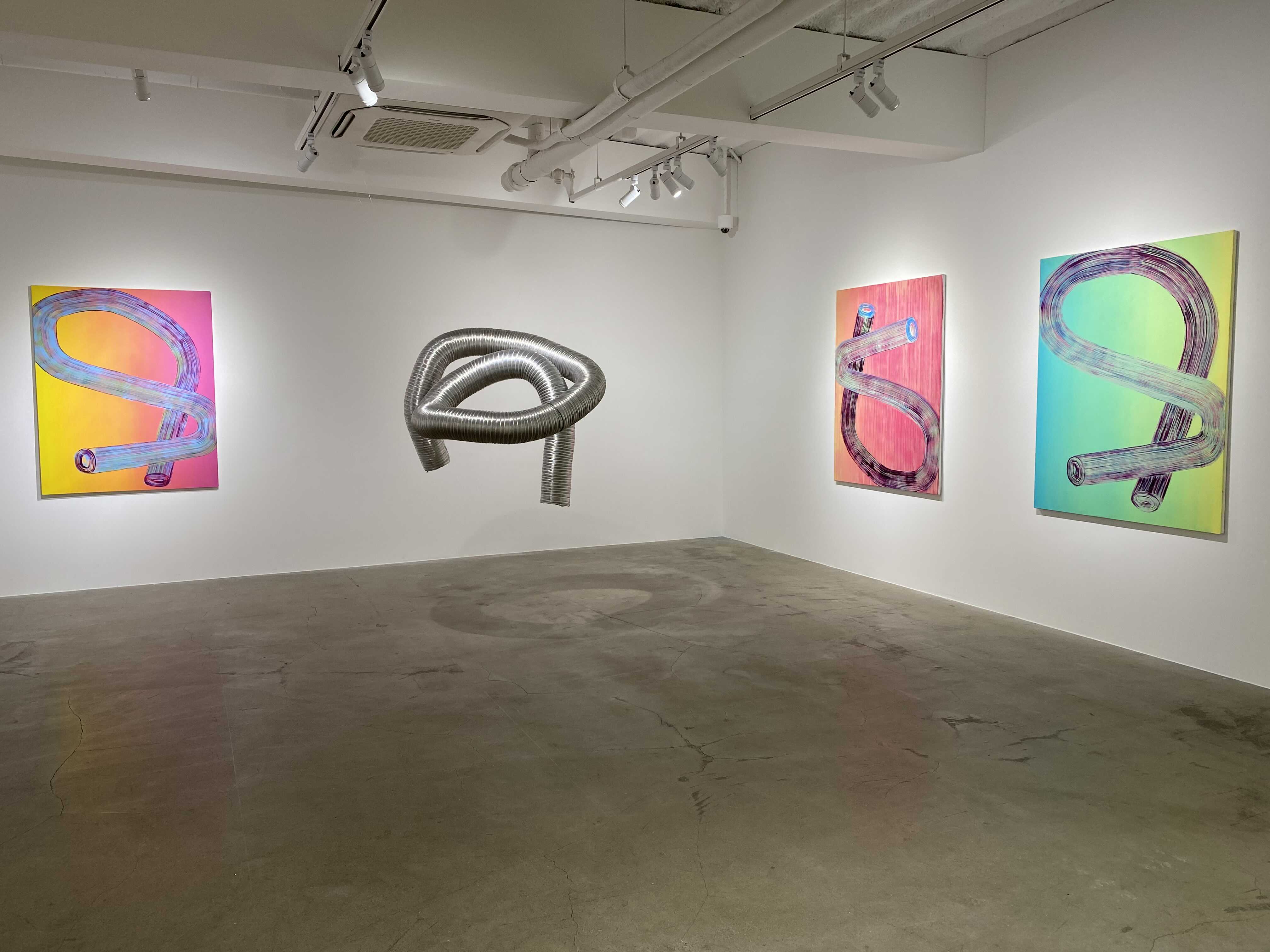 멕시코 시티를 기반으로 활동하는 작가 로버트 야니츠의 최근작을 볼 수 있는 전시입니다. ELEVEN STUDIES OF EVERYTHING은 부분적으로 분해, 왜곡, 반전된 기호 &(앰퍼샌드)와 유사한 형태를 묘사하는 균일한 크기의 평면 작품들과 하나의 설치 작품으로 구성된 시리즈입니다. 붓터치와 형광빛의 그라데이션 배경으로 인해 기호가 더 입체적으로 다가왔습니다.