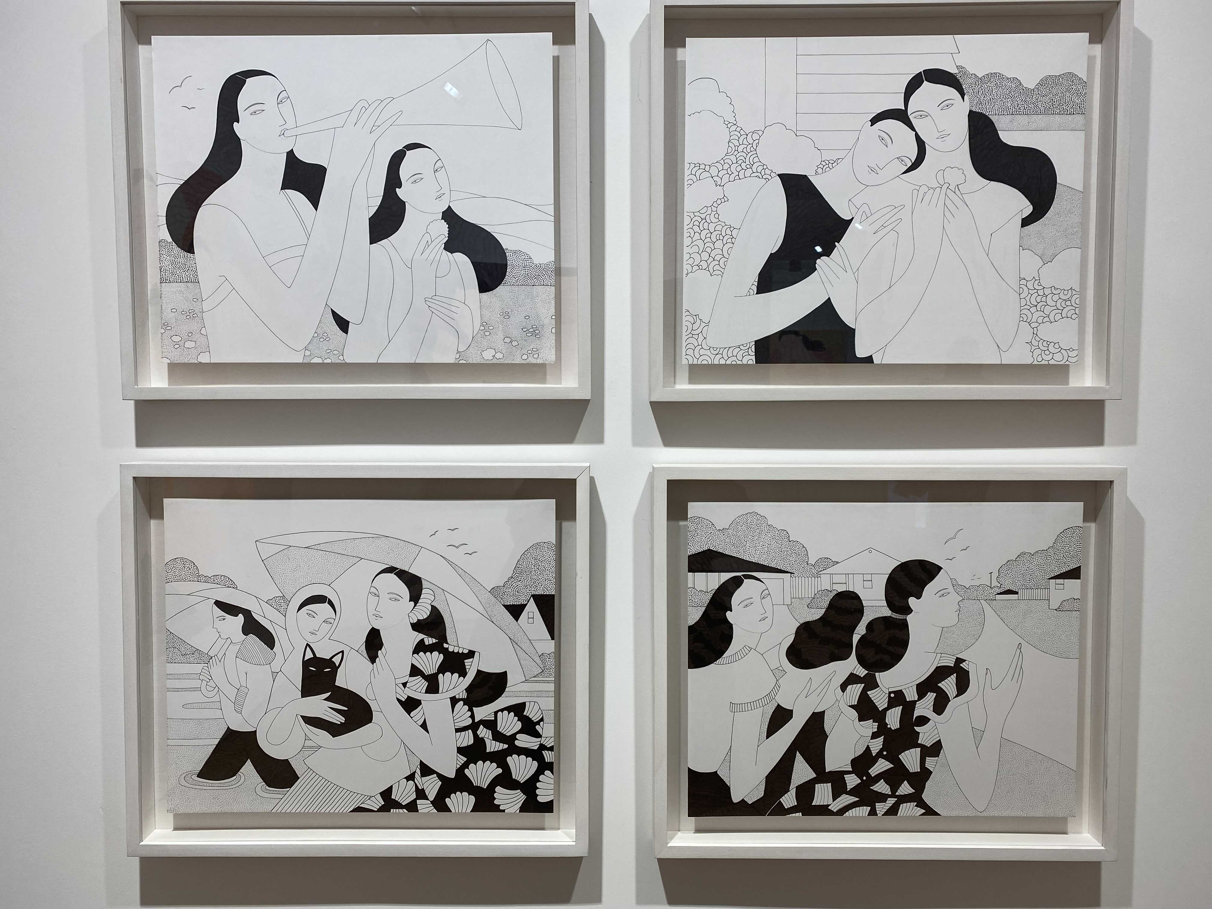 JW 앤더슨, 루이비통, 로에베, 토리버치 등 명품 패션과 컬래버레이션으로 알려진 패션 일러스트레이터이자 작가인 켈리 비맨의 아시아 첫 전시입니다. 특히 루이비통 한정판 트래블 북(2020)의 그림을 그려 더욱더 유명해졌는데요. 배경은 심플하고 무표정한 여성들의 의상 패턴이 작품 속에서 중심적인 역할을 합니다.