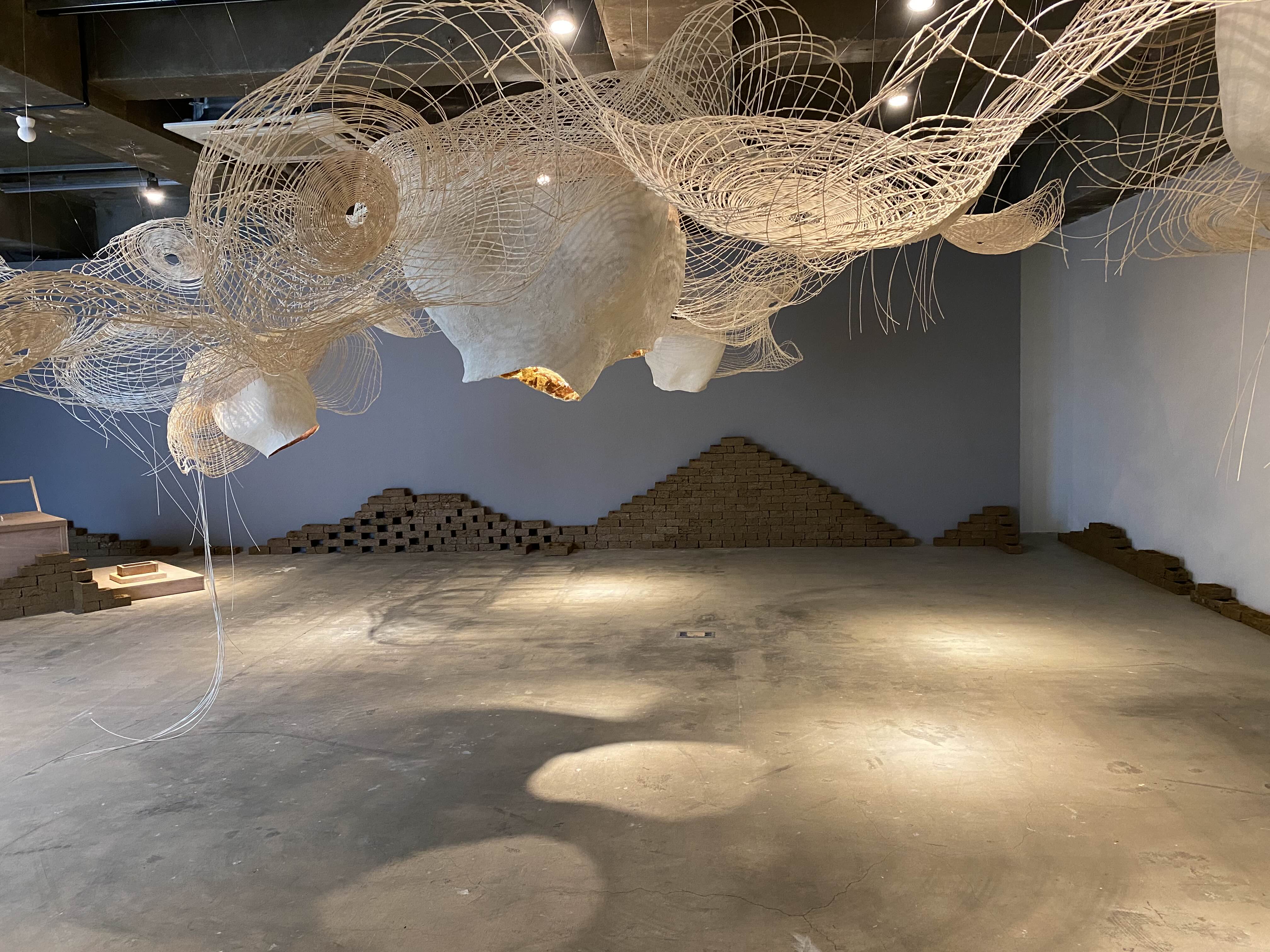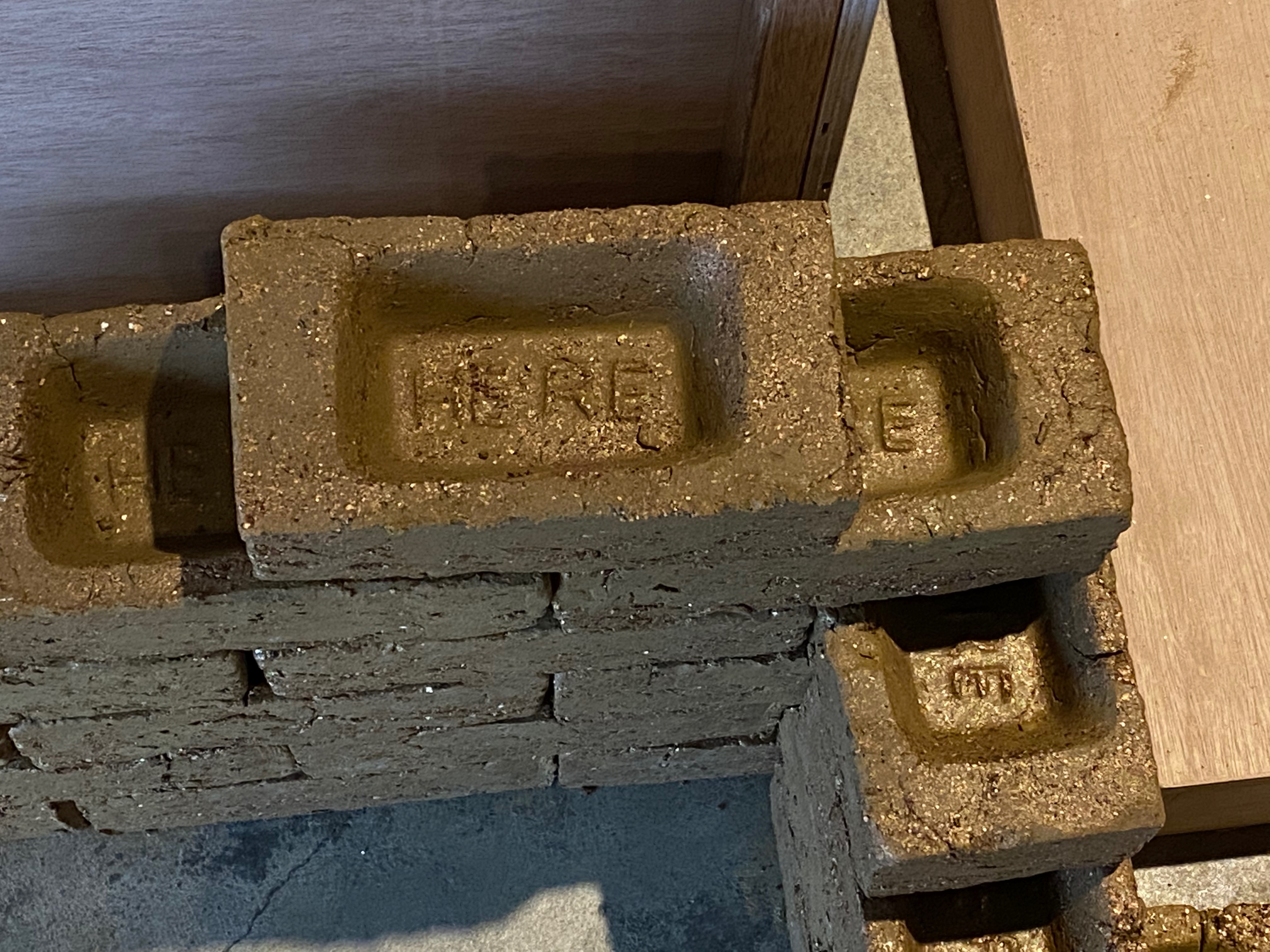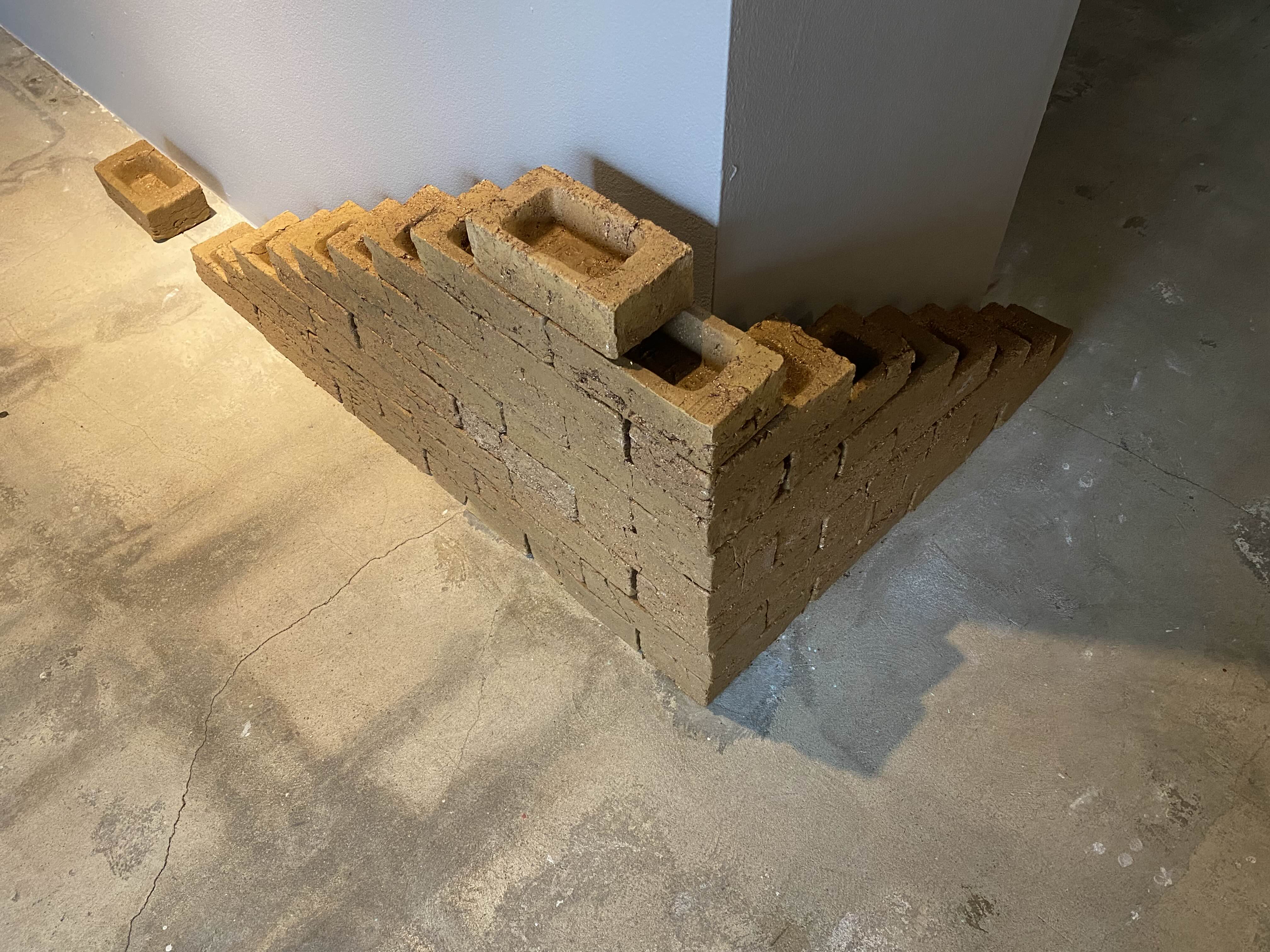 세계 곳곳을 다니며 작가 개인이 겪은 문화적 고립과 충돌의 문제를 흙이라는 매개를 통해 표현하는데요. 전시장이 위치한 연남동의 흙으로 빛은 벽돌을 볼 수 있습니다. 그래서인지 벽돌에 'here 여기'라는 글자가 새겨져 있습니다. 퍼포먼스를 통해 직접 벽돌을 만드는 과정을 볼 수 도 있습니다. 만든 벽돌이 전시장 곳곳에 쌓이게 됩니다. 퍼포먼스와 함께 전시를 감상하시면 좋겠습니다.