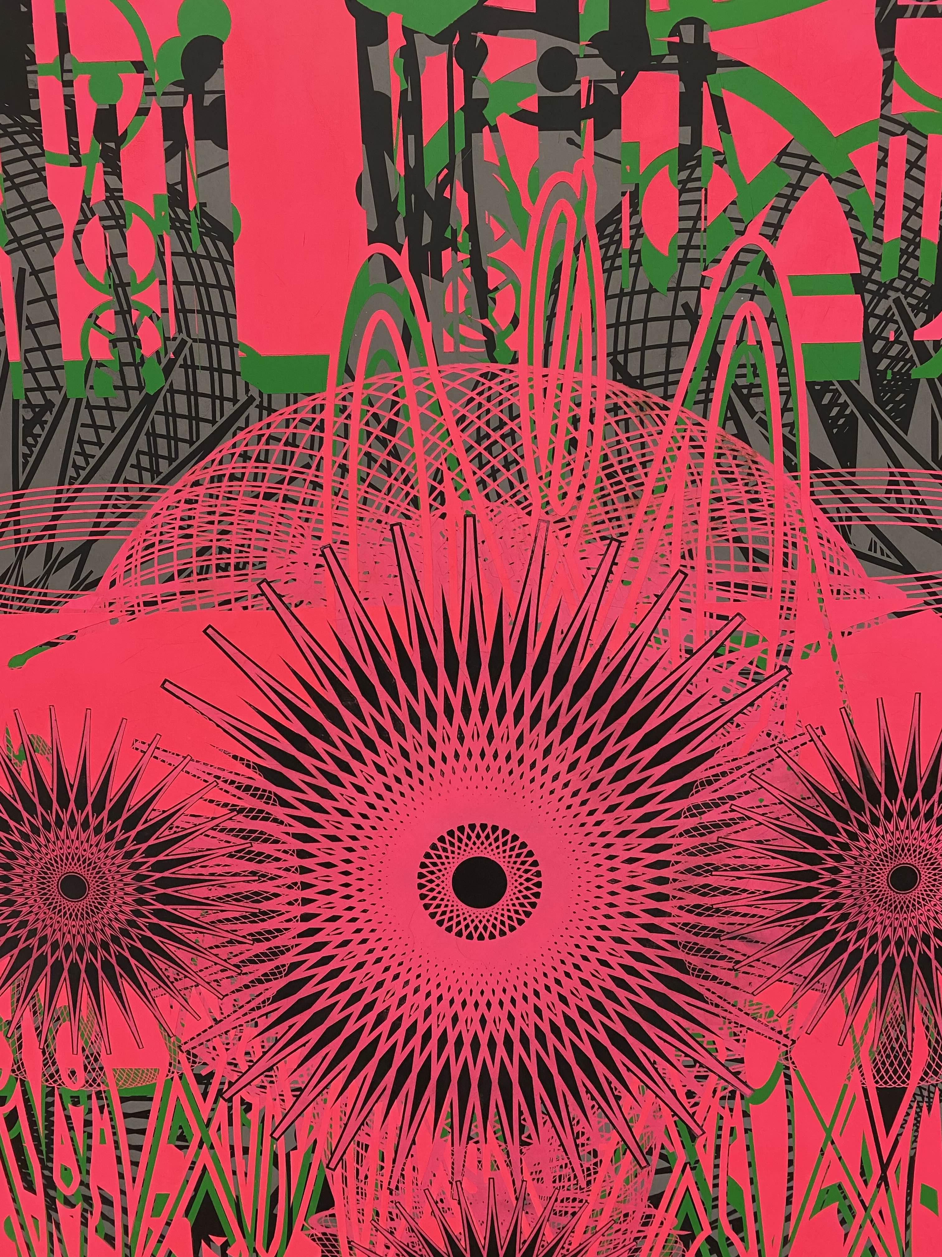 이상남은 인간 문명이 남긴 도상과 부호들을 수집하고, 그 이미지들을 '곱씹어' 만든 수많은 기하학적 조형 기호들을 구성·조합하여 유니크한 ‘추상 풍경’을 만들어 낸다. 칠하고 갈아내기를 50-100회 반복하는 수행적인 과정을 통해 완성된 그의 인공 추상 회화는 디지털과 아날로그가 공존하고 있는 21세기 우리의 삶 자체를 투영한다.