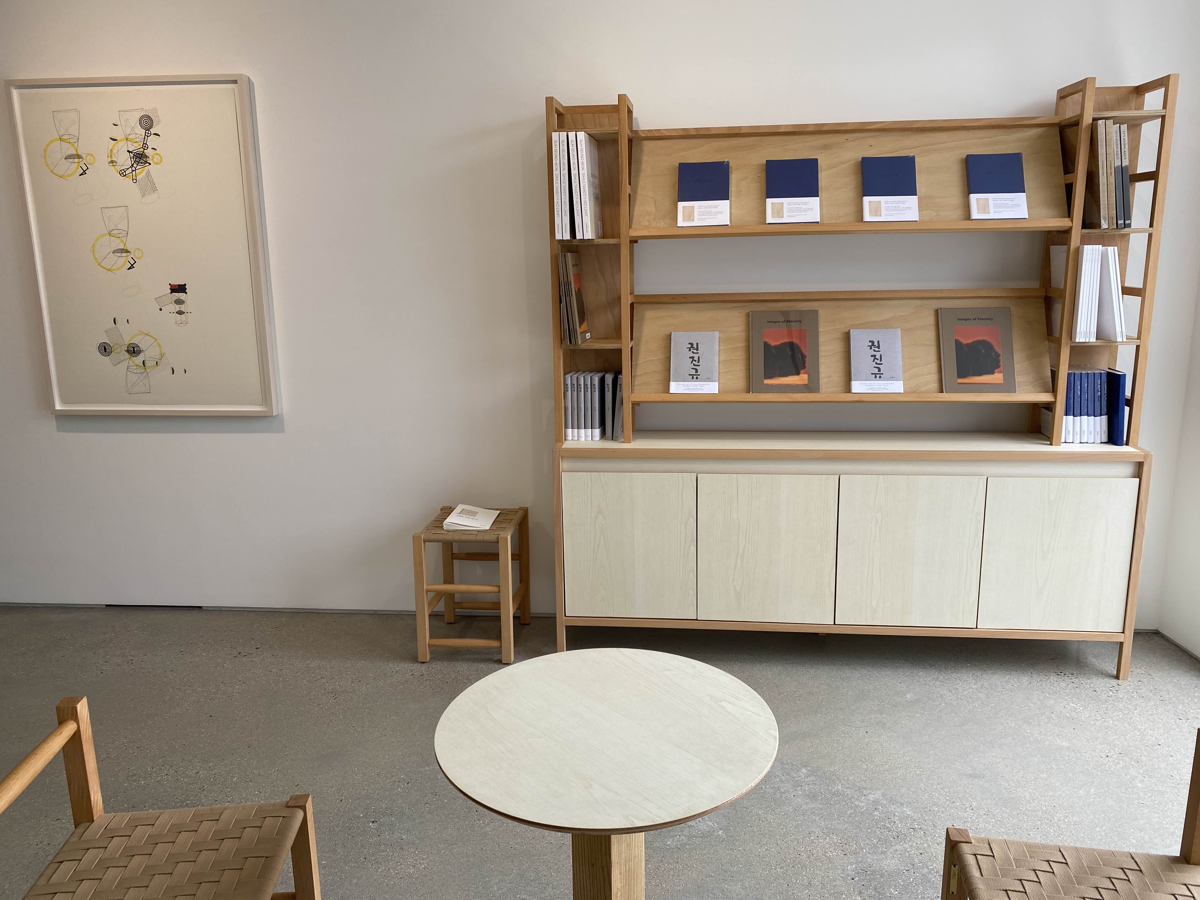 이상남 작가님은 문명권이 남긴 도상과 부호들을 수집해왔는데요. 그 이미지들을 곱씹어 만든 수백 개의 조형 기호들을 특유의 화법으로 평면 위에 구상해왔습니다. 칠하고 갈아내기를 반복하는 과정을 통해 회화지만 입체적이고, 단순하면서도 복잡하며, 정적인 동시에 리듬감을 만들어내고 있습니다. 2층에는 PKM갤러리에서 출판한 책들을 볼 수 있는 공간이 마련되어 있으니 놓치지 마세요.