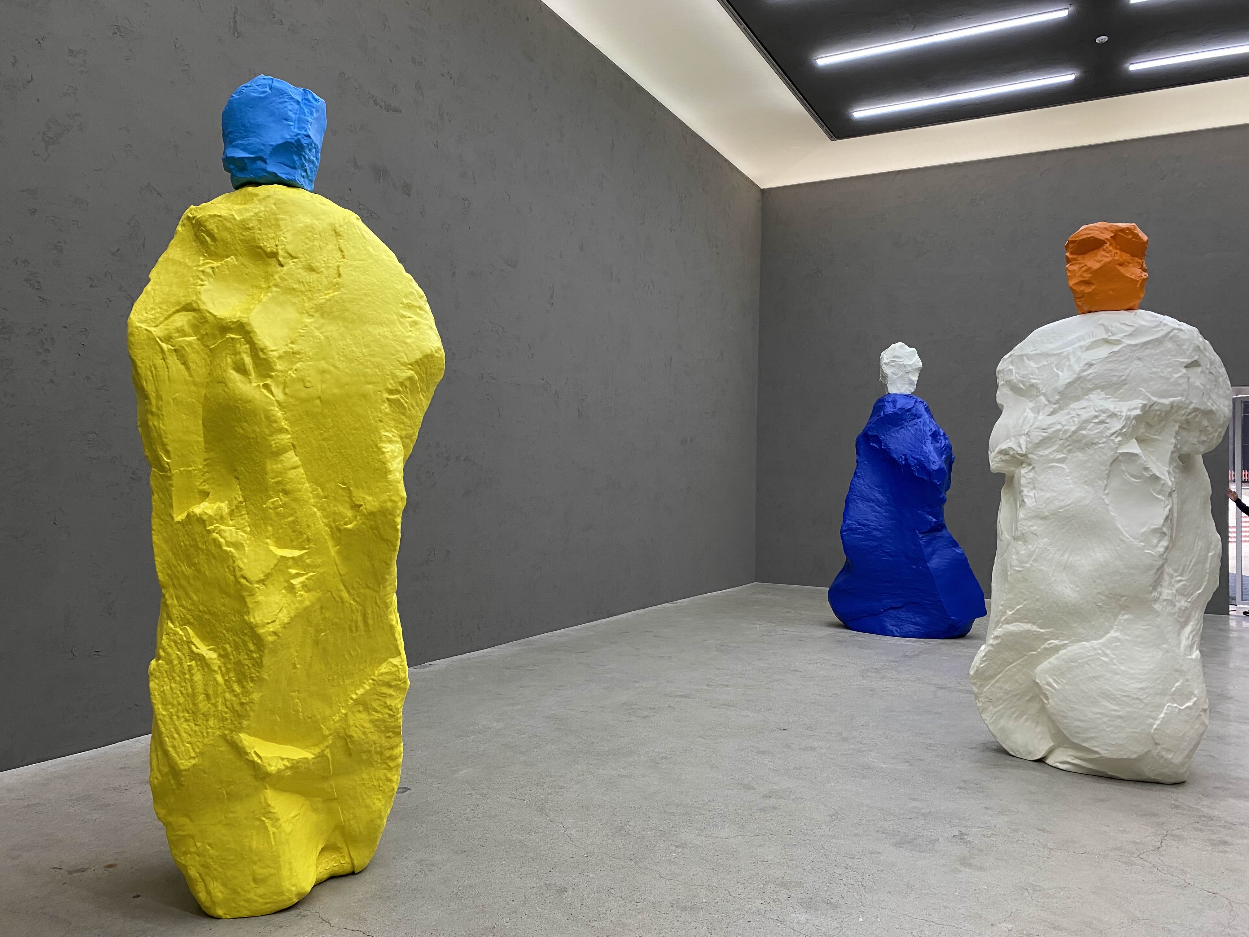 우고 론디노네(Ugo Rondinone)의 개인전 《nuns and monks by the sea》를 서울과 부산에서 동시에 선보이는 전시입니다. 서울점 K3 공간에서는 대규모 청동 조각 연작 <nuns + monks>를 만나볼 수 있습니다. 작가는 공간 전체에 시멘트를 발라 바닥과 벽이 단일한 콘크리트처럼 보이도록 공간을 변형했습니다. 갤러리 공간의 표면을 전면적으로 개조하는 밑 작업을 통해 바닥과 벽의 경계를 없애고 그 지평을 재정의할 뿐 아니라 돌에 내재한 고요한 변신의 상태를 은유합니다.