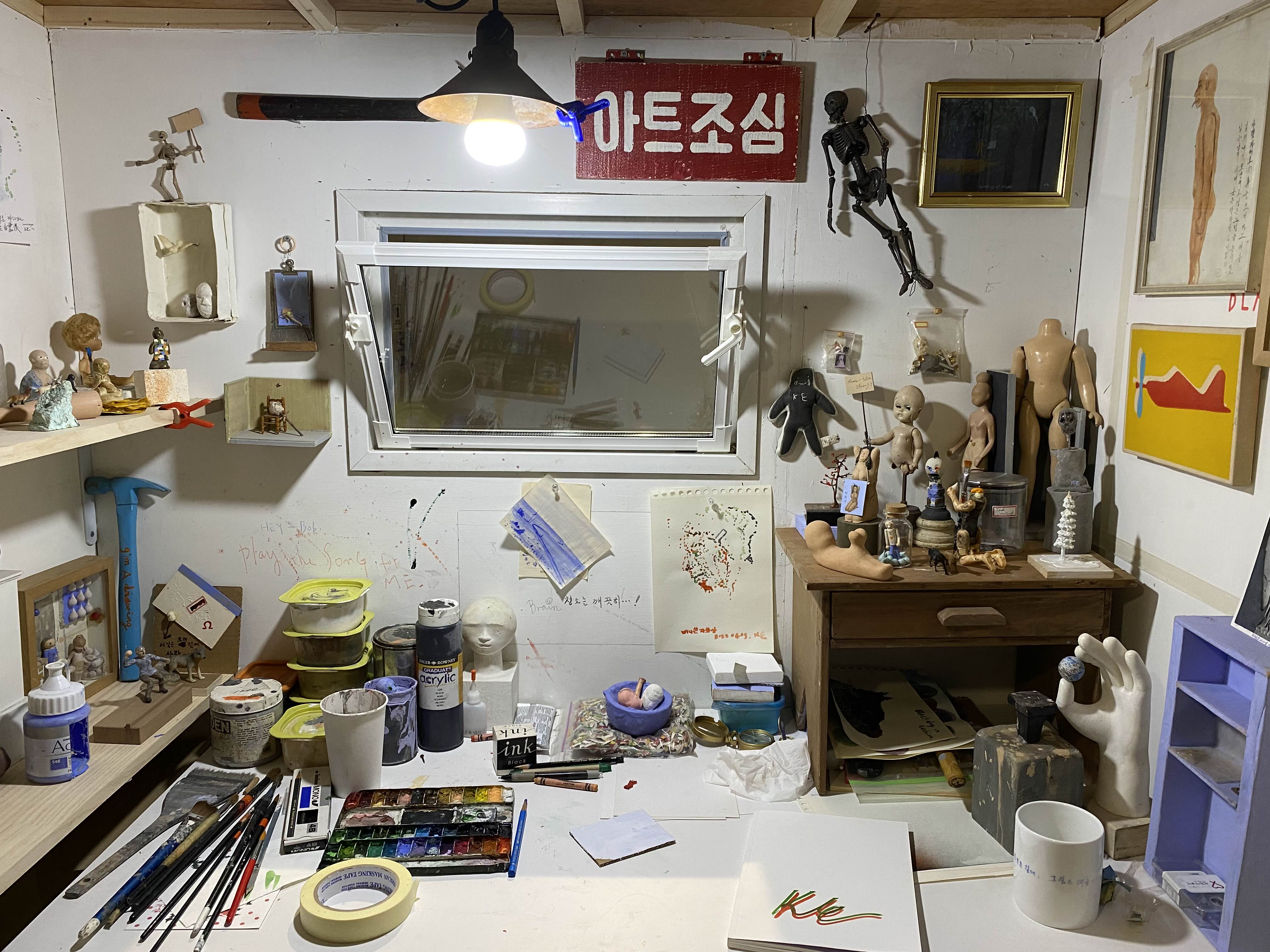 흰 종이에 건식 재료로 선을 그어야 드로잉인가? 글씨, 조각, 움직이는 놀이 기구, 너덜너덜 곳곳이 찢긴 캔버스… 그에겐 정해진 꼴도, 도무지 딱 맞는 상자도 없다. 회화, 조각, 사진, 영상, 다른 틀 어디에도 들어맞지 않아 억지로 끼울 수 없다. 그는 말한다. “이미지/텍스트/입체/평면? 죄다 수단일 뿐, 특정 화법에 집착하는 건 바보”라고.
