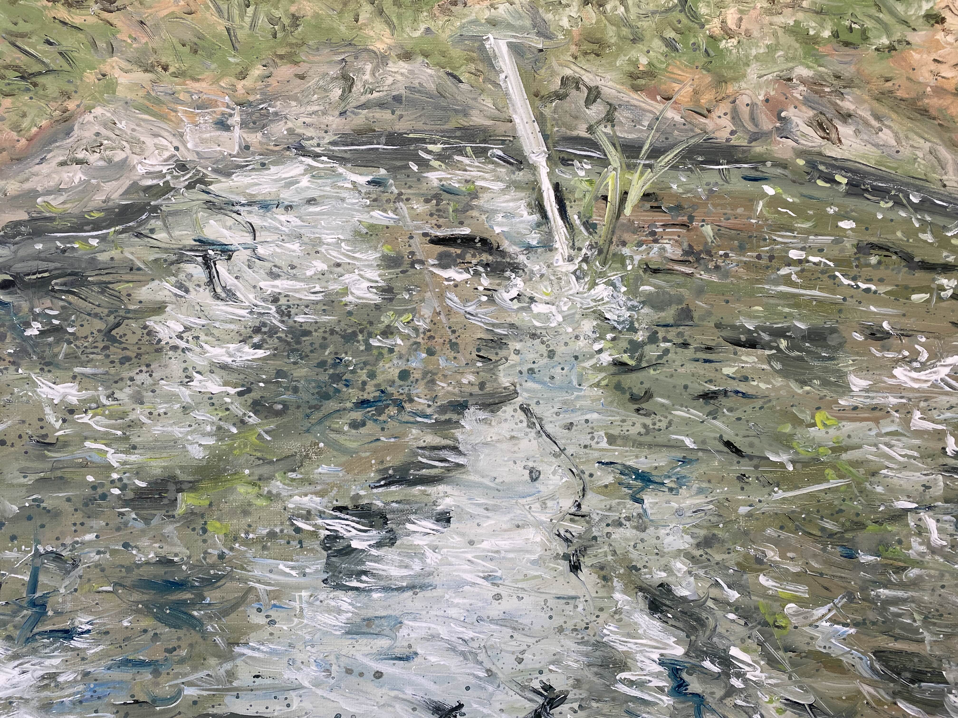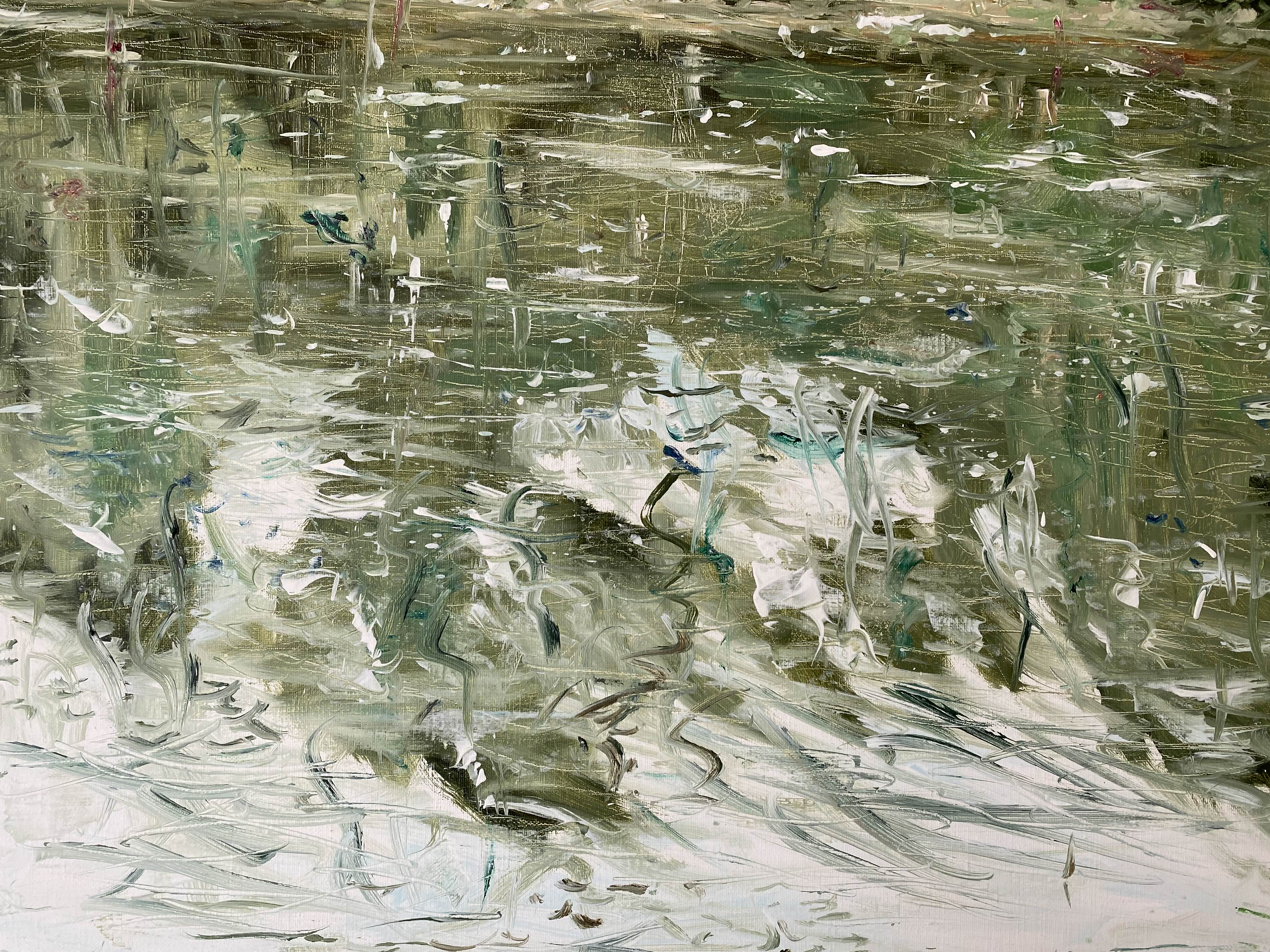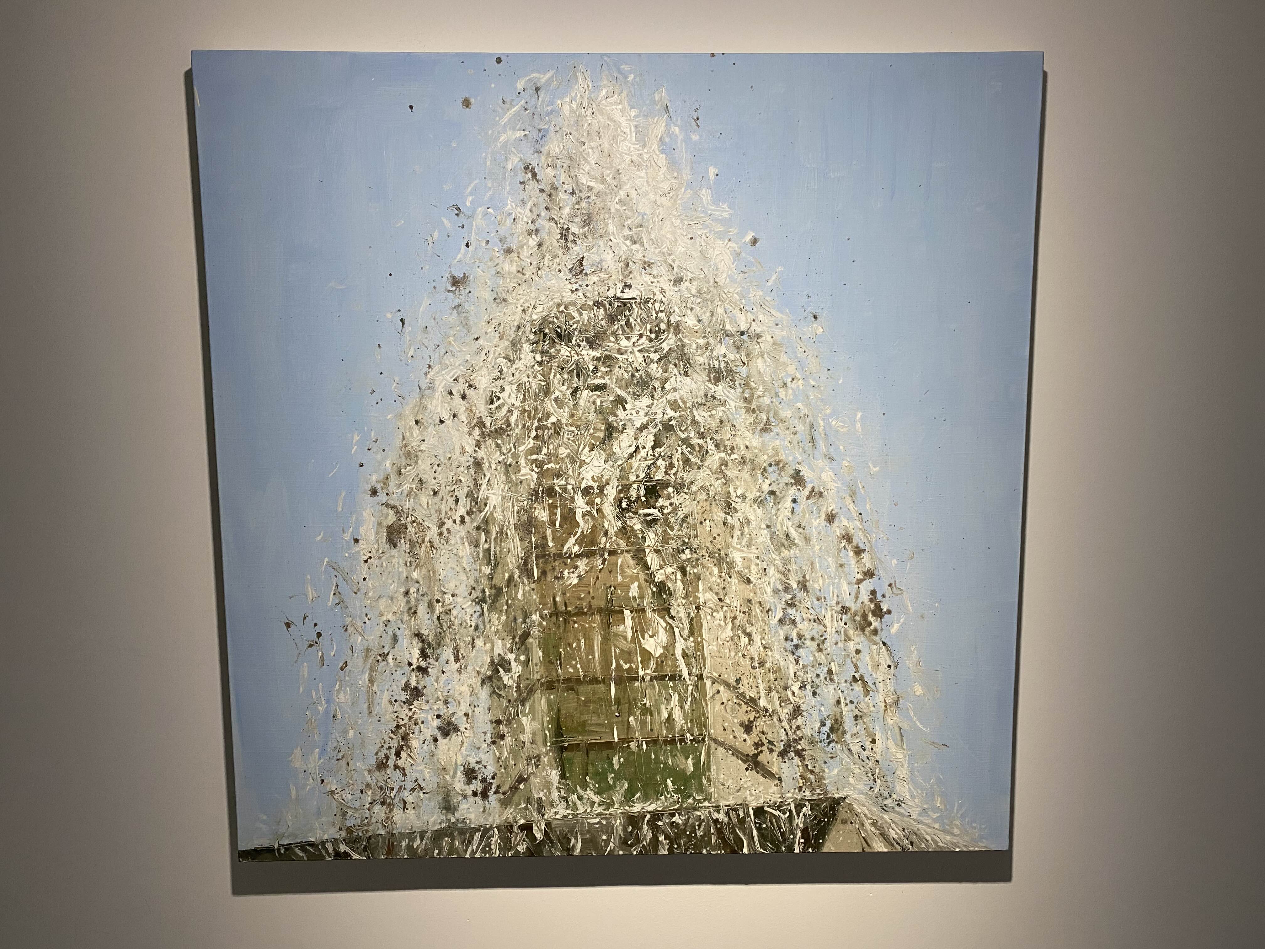 실로 김지원은 풍경, 즉 바람이 이는 경치風景를 화면에 담아내고자 노력하고 있다고 말한다. 그러나 불교 숫타니파타 경전의 “그물에 걸리지 않는 바람처럼”이라는 문구처럼, 무형의 바람은 잡힐 듯 잡히지 않았고 이를 붙잡으려는 불가능에의 도전은 결국 그가 작업을 이어 나갈 수 있는 하나의 동력이 되었다. 동일선상에서 그려진 <하염없는 물줄기>에서는 쏟아지는 물방울을 통해 바람이 형상화된다. 분수가 평온한 도시 환경에 활기를 주는 기제인 것처럼, 작품 속 분수의 흩날리는 수적들은 화면 너머의 건조한 전시 공간으로 흐트러지며 관람자의 일상에 생기를 불어넣고 있다.