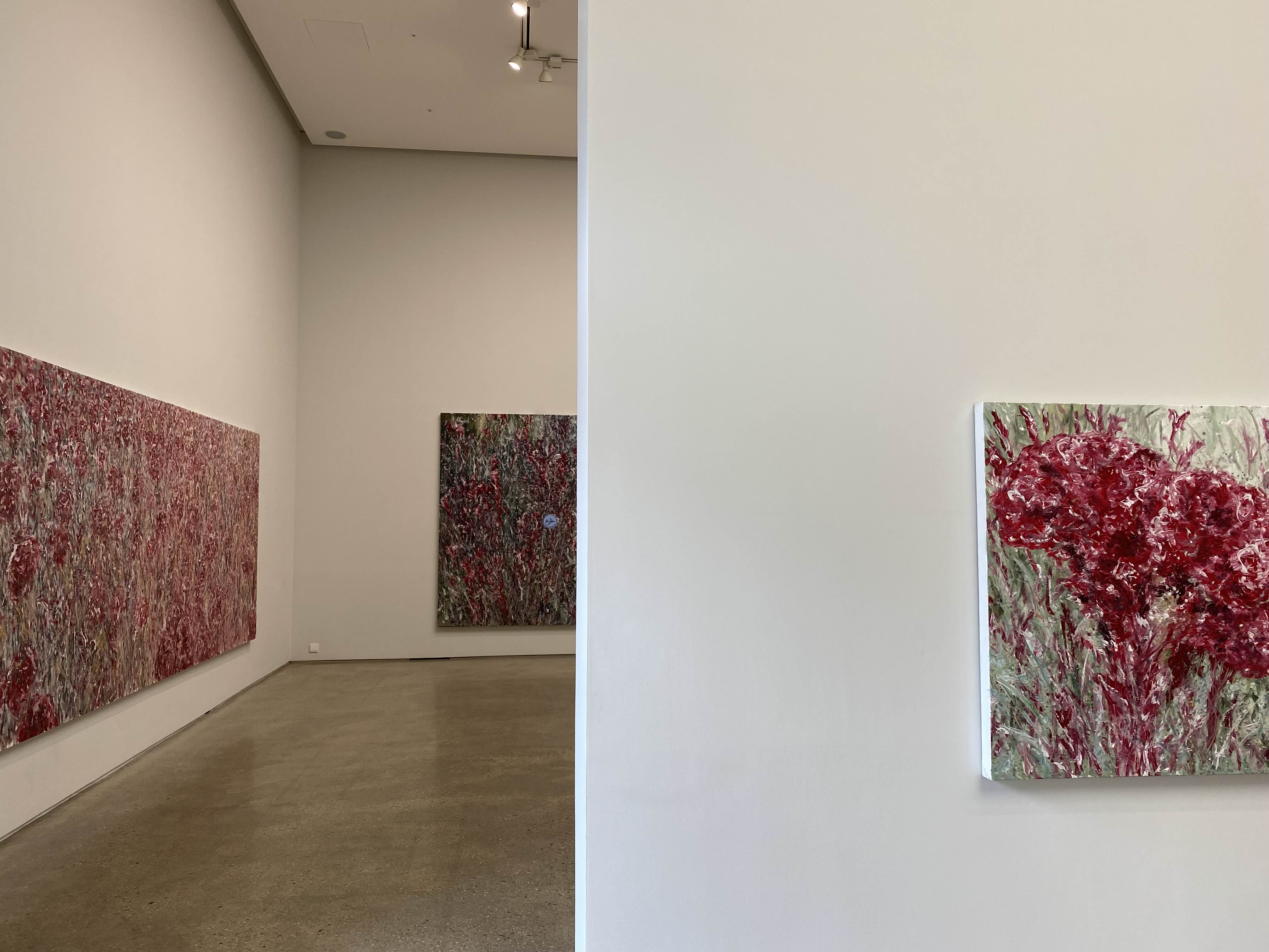 김지원 작가가 5년여간 창작한 다섯 종류의 회화 신작들을 선보이는 전시입니다. 맨드라미, 레몬, 모든 형태 있는 것은 사라진다, 하염없는 물줄기, 풍경화 등 50여 점의 작품을 감상할 수 있습니다. 전시장 3면을 채운 맨드라미 작품을 보면 맨드라미 꽃밭에 와있는 듯한 느낌이 듭니다. 레몬 작품은 빨간색 맨드라미 속에서 상큼하고 톡 쏘는 상큼함이 느껴집니다.