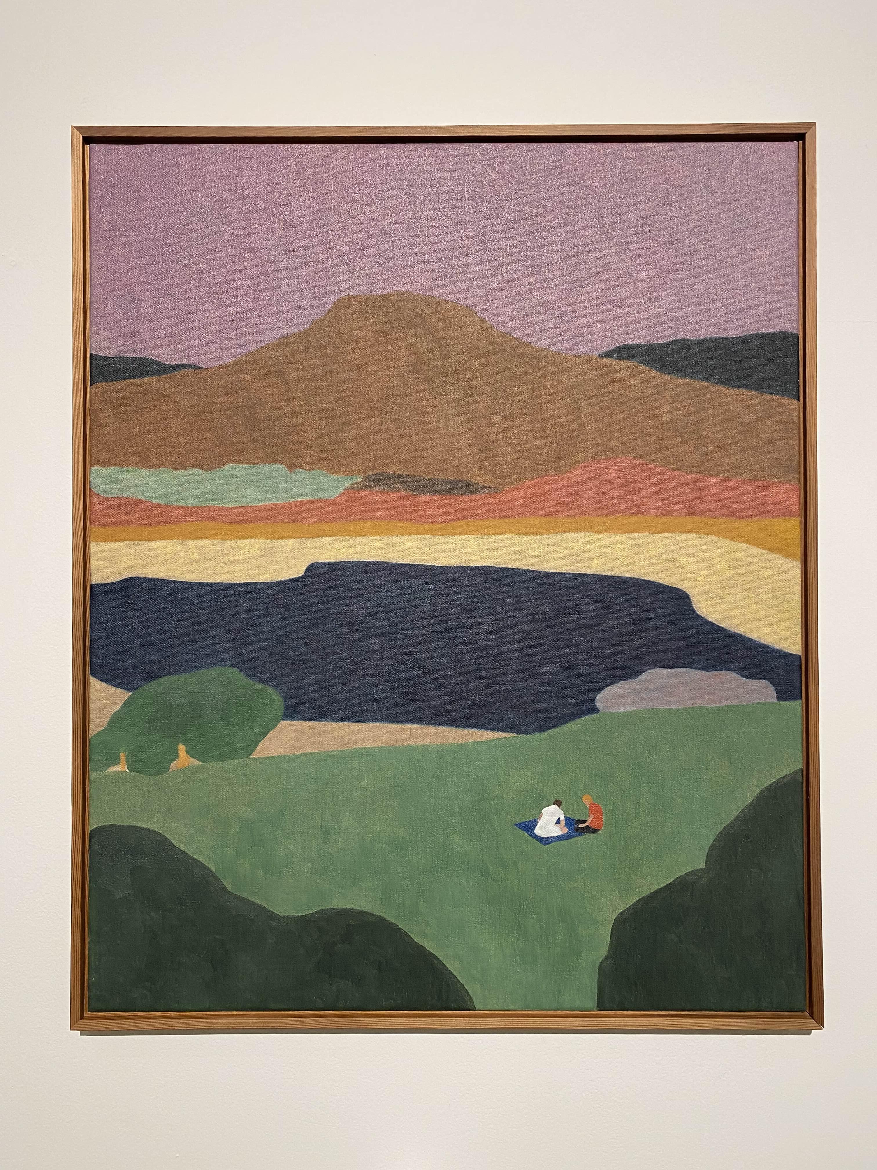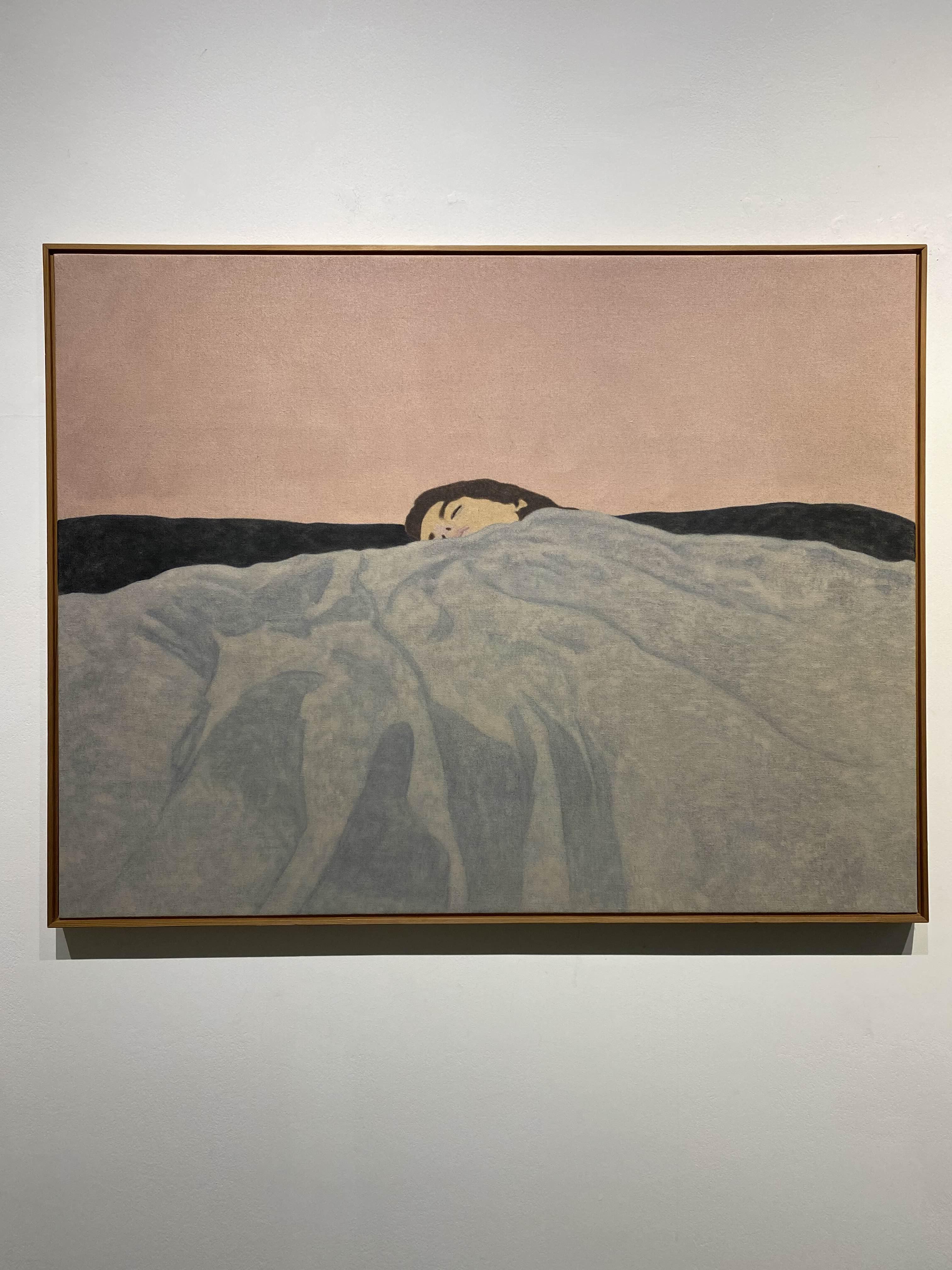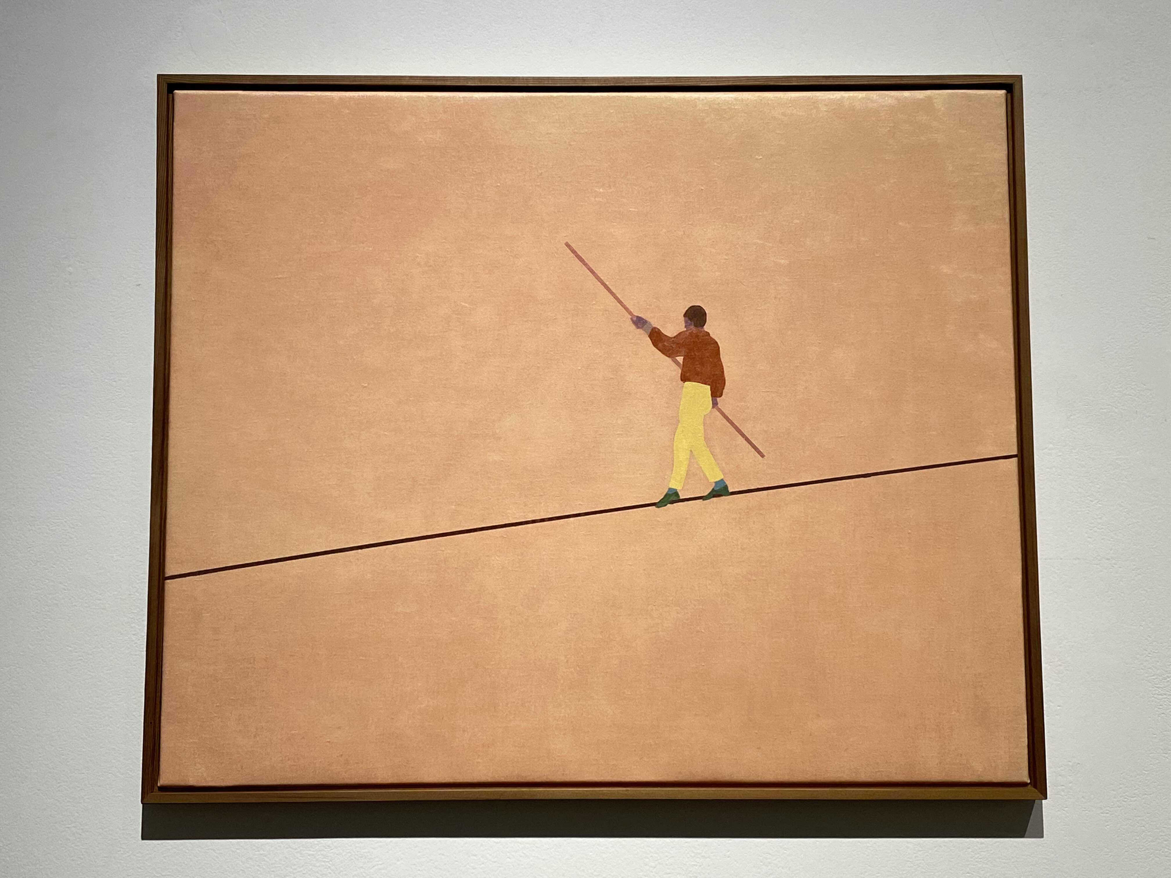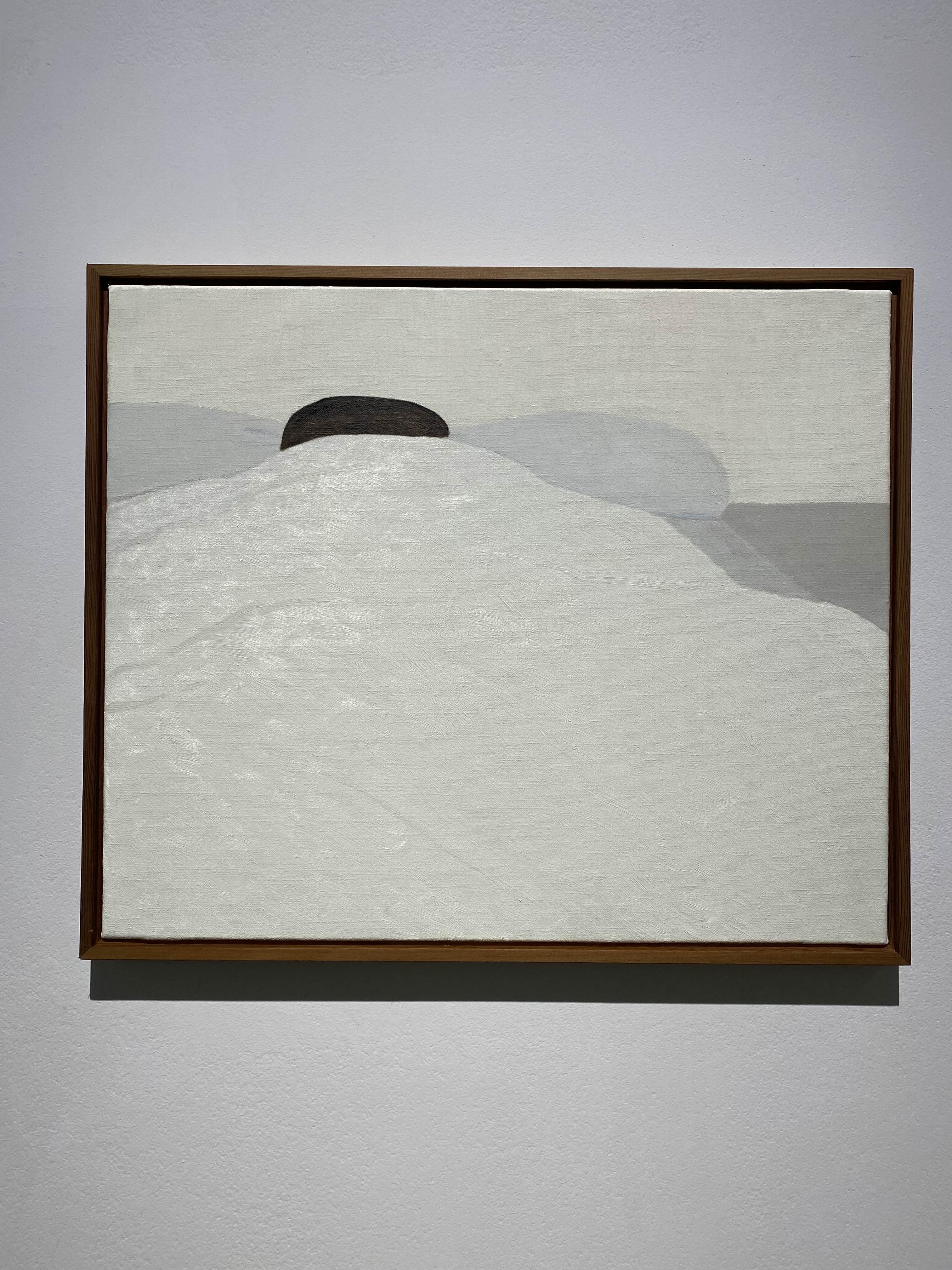 작품들의 중심 객체인 자연과 인간은 서로 대치하지 않고 광활한 대지의 인간이 눈 덮인 설산을 홀로 오르거나 끝이 없을 것만 같은 길을 묵묵하게 걷고 있다. 마치 인생에 대해 말하는 것처럼 사막에 던져져 홀로 유영하는, 그리고 그에 대하여 긍정도 부정도 하지 않아 오히려 위로가 되는 풍경이다. 예를 들어 작품에서는 단잠을 자는 한때를 단순한 형태, 많지 않은 컬러의 배합으로 탁월하게 묘사한다. 전시작에서도 다이빙하는 한 남자의 모습이 그려져 있는데, 마치 적막이 흐를 것만 같은 매우 단순화된 자연의 고요한 정취를 배경에 인물이 물속으로 뛰어드는 순간을 표현한다.