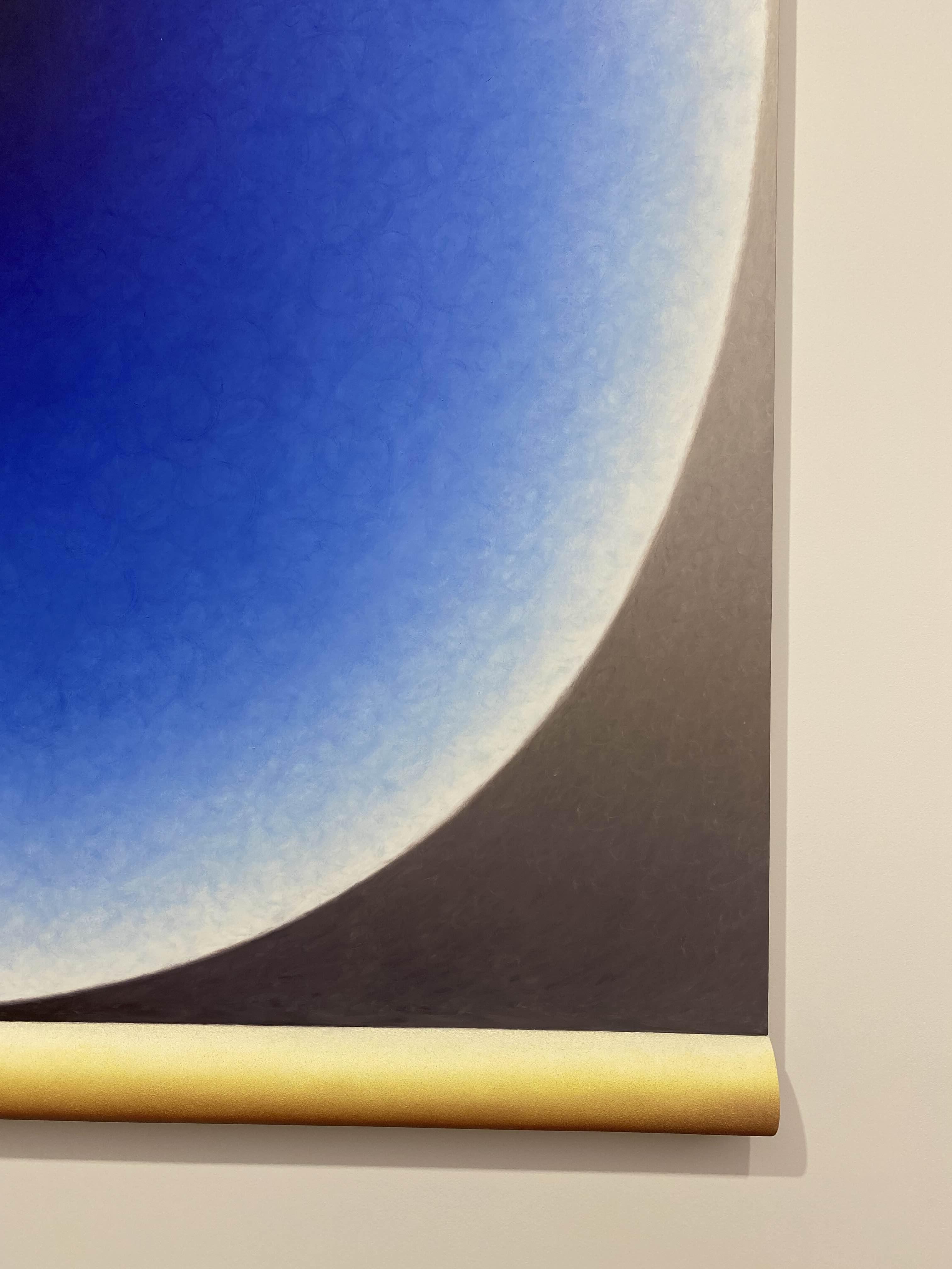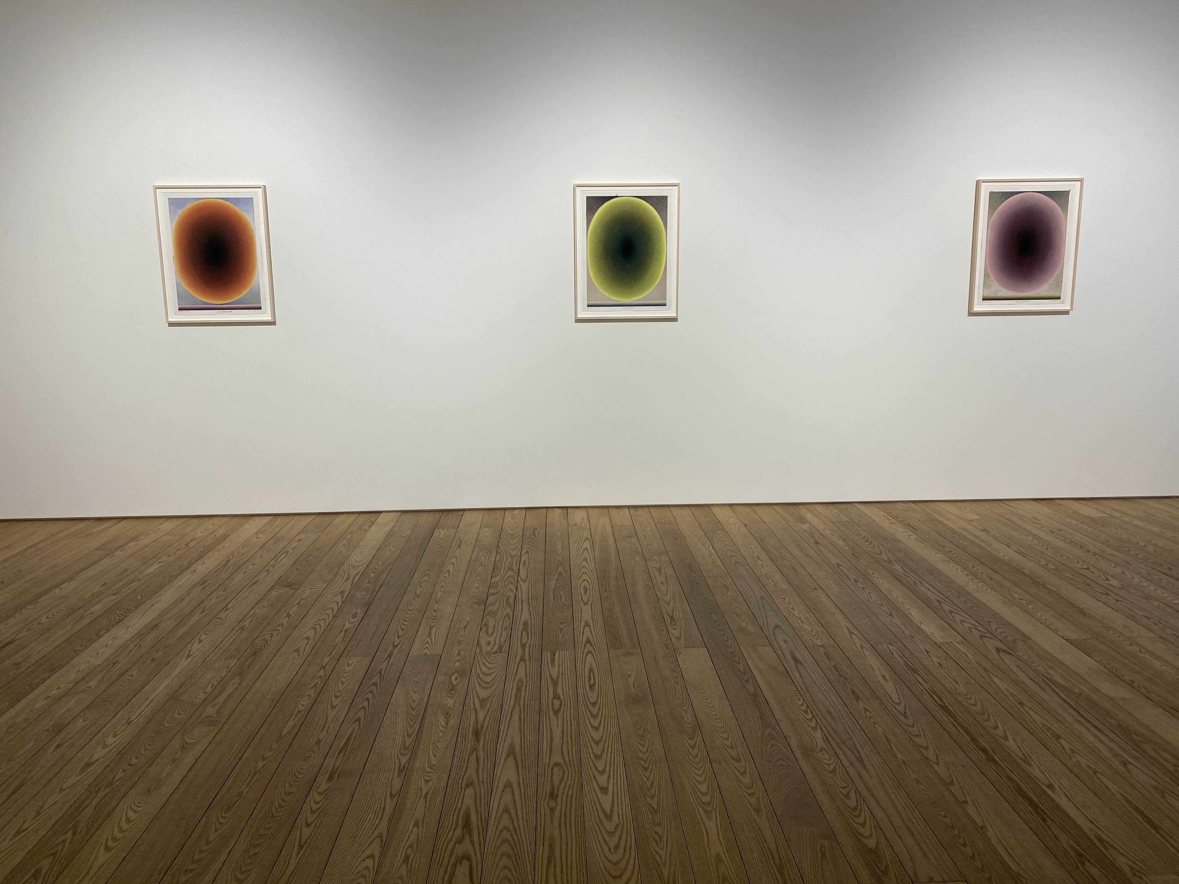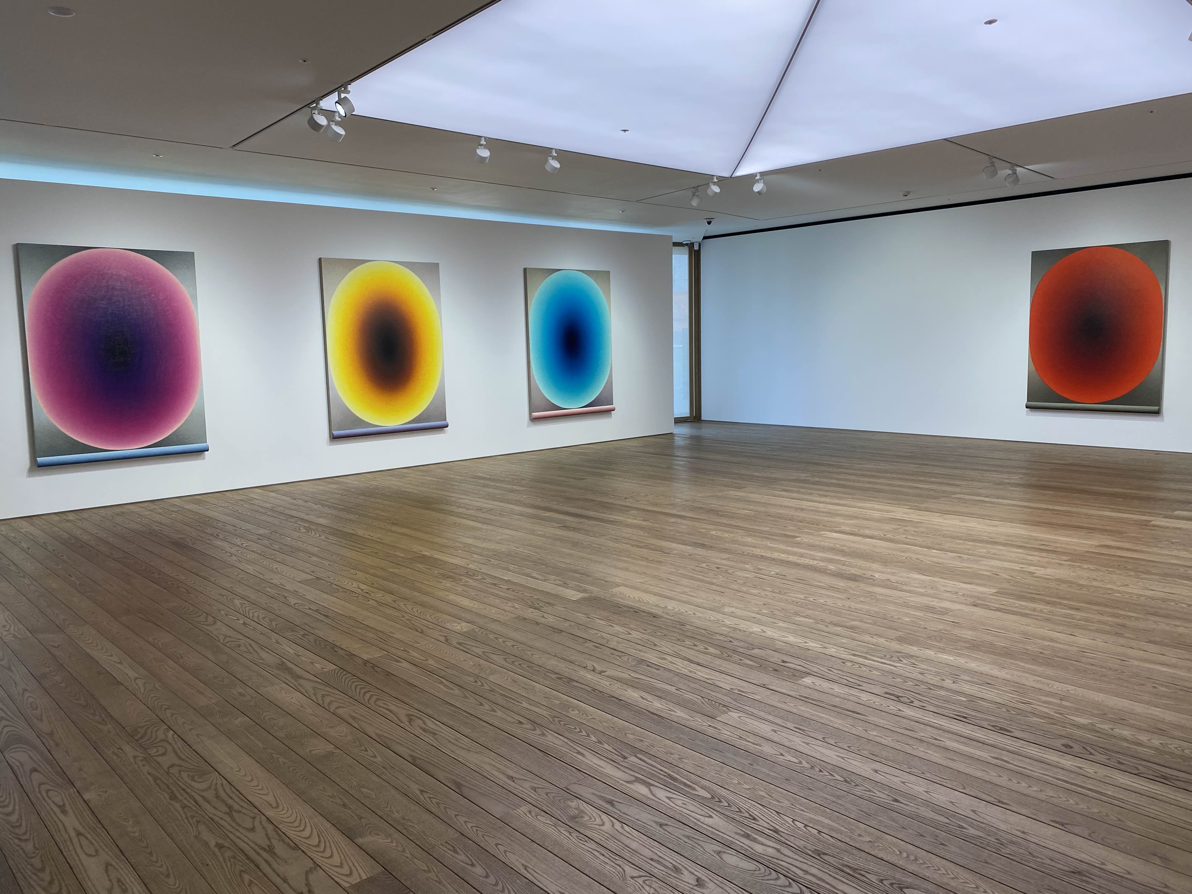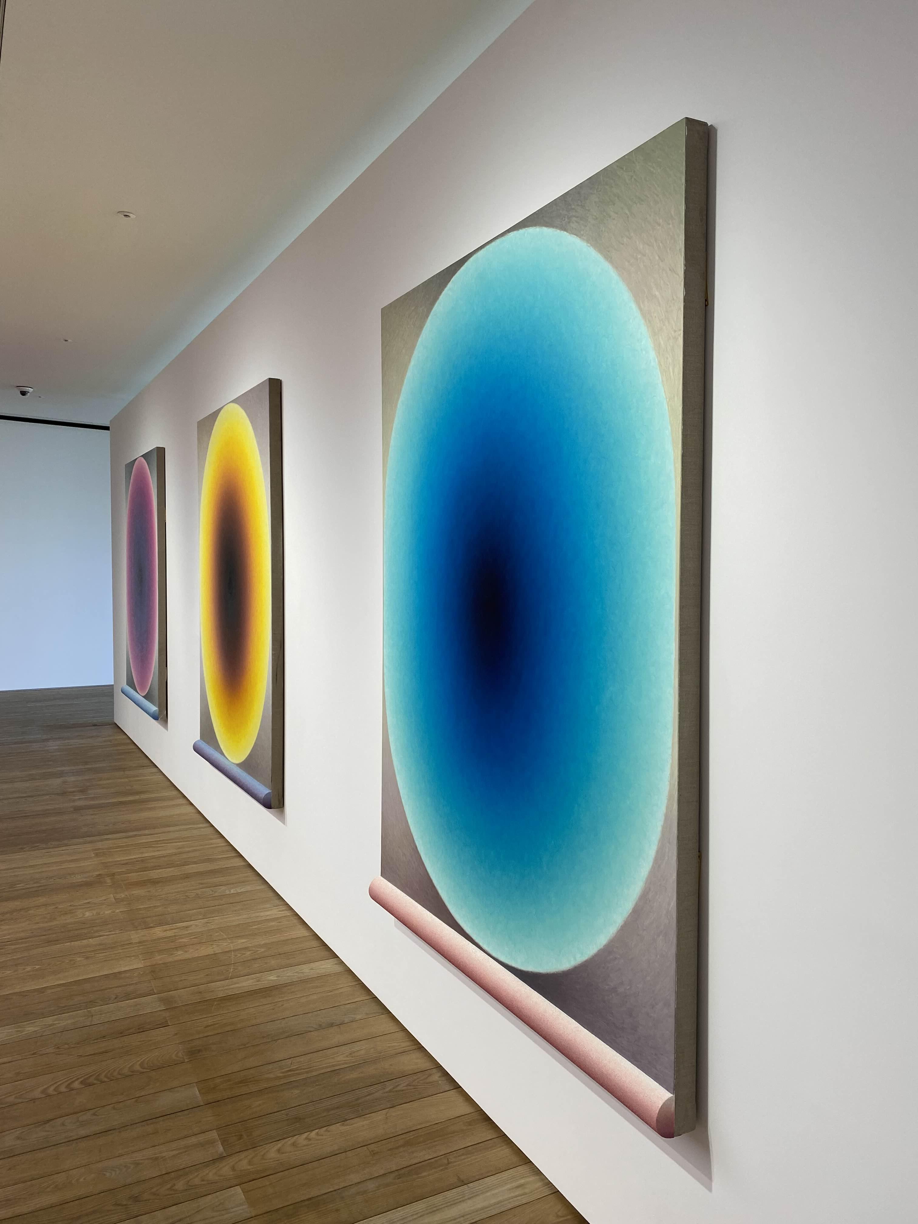 추상화된 두뇌의 형상들은 원하는 색이 나타날 때까지 반투명한 유화 물감을 여러 층으로 덧입히는 방식으로 표현되는데, 이는 긴 시간이 소요되는 노동 집약적 행위를 통해 이루어집니다. 홀로웰은 팔과 손목의 움직임에 대한 고도의 물리적, 기술적 탐구를 통해 타원 내 매끄러운 색 변화를 만들어냈습니다. 이러한 물리적 과정의 흔적을 담고 있는 타원은 작가의 실제 신장을 반영합니다. 자신의 신체를 최대한 크게 뻗어 보는 물리적 행위가 브레인(Brain)시리즈의 제작 과정에서 필수적인 요소가 되는 것입니다.