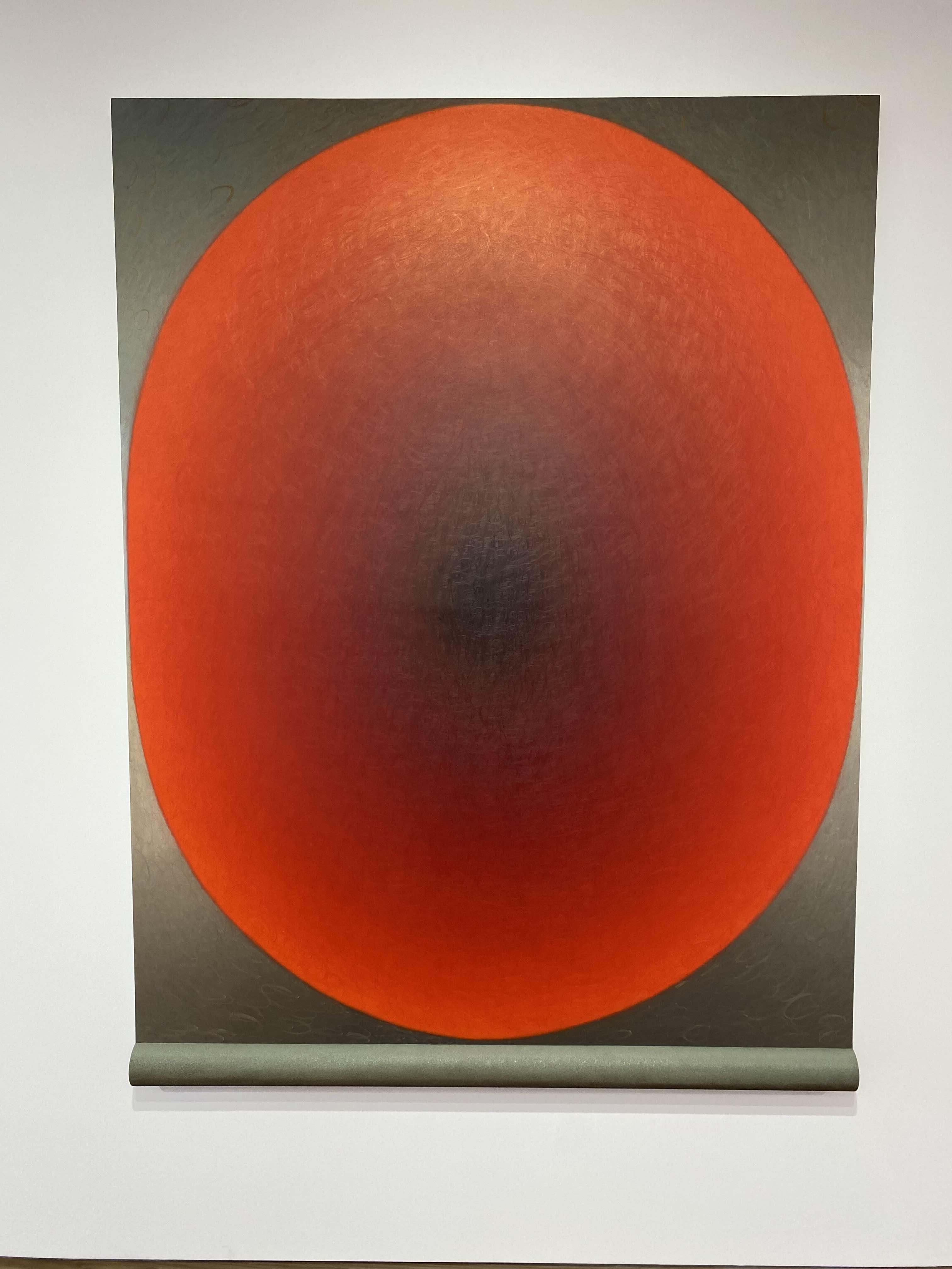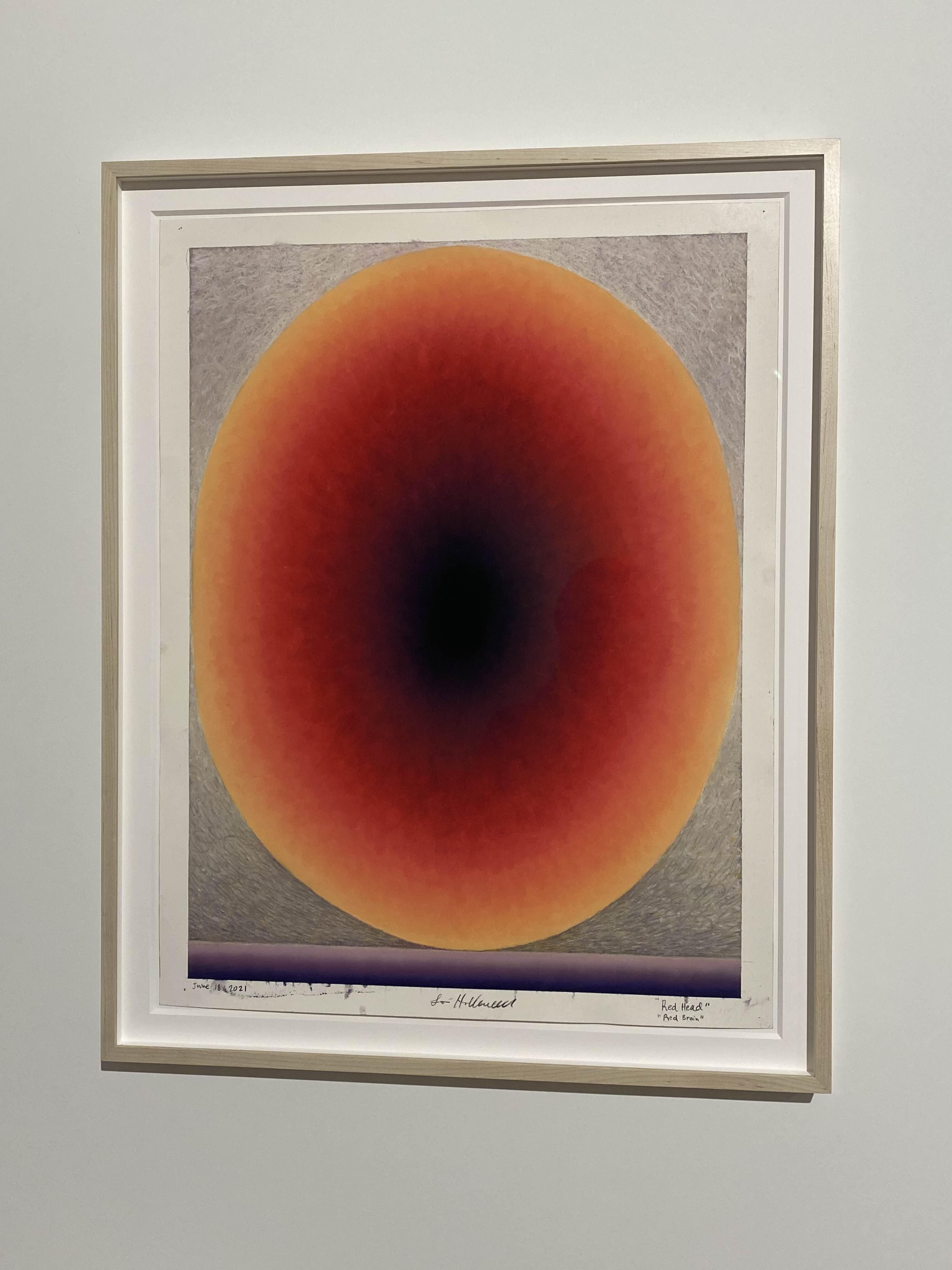 로이 홀로웰의 브레인(Brain)시리즈에서 거대한 타원 형태의 작품은 머리를 형상화하는데, 더 구체적으로 두뇌의 관념적 공간을 나타냅니다. 작가는 기하학적 자화상 시리즈를 포함한 다수의 초기 작품에서 종종 타원을 인간의 머리로 추상화하여 사용해왔습니다. 브레인(Brain)시리즈에서 홀로웰은 하나의 타원을 캔버스에 가득 차게 그려 넣어 마치 그의 전신 초상화에서 점차 줌인해 들어가 나중에는 머리만 남근 것처럼 보이게 했습니다.