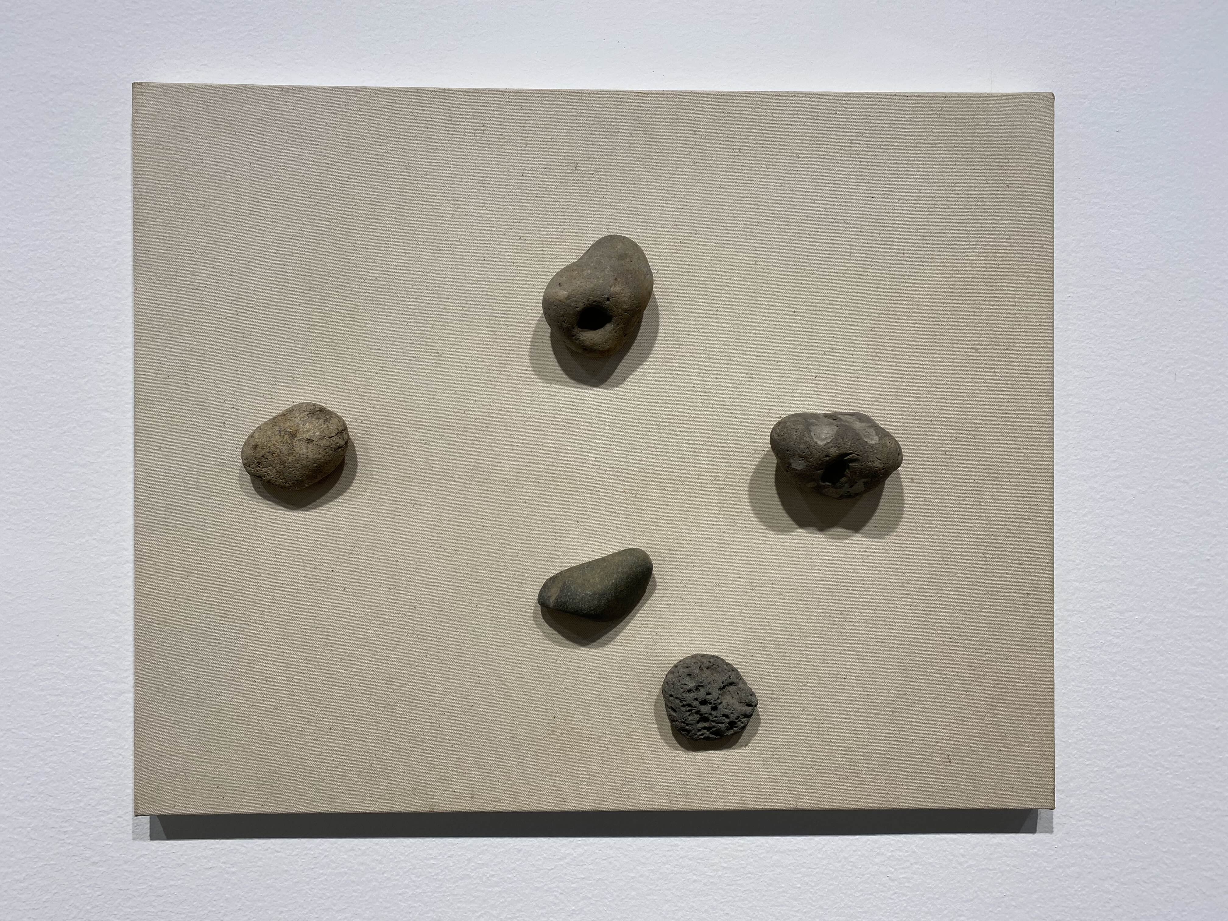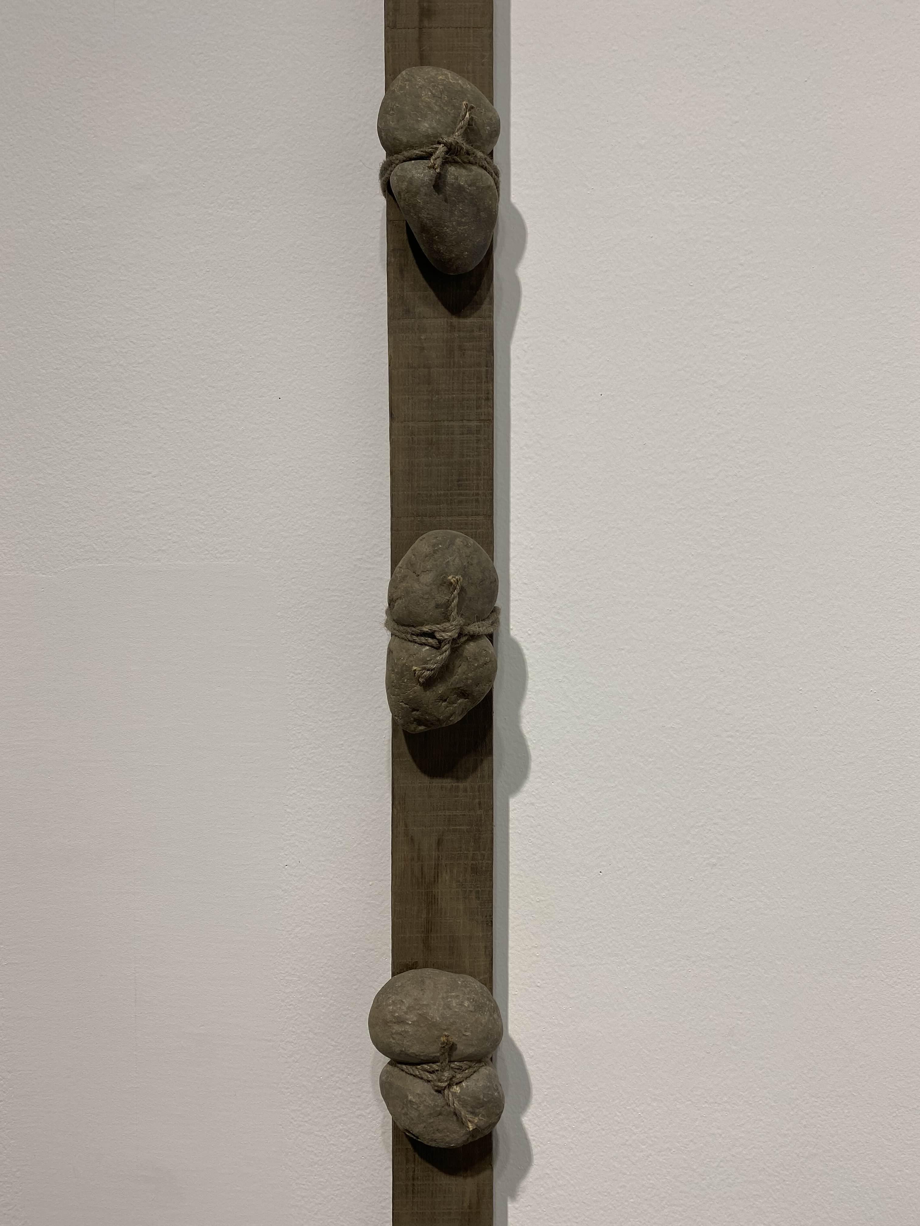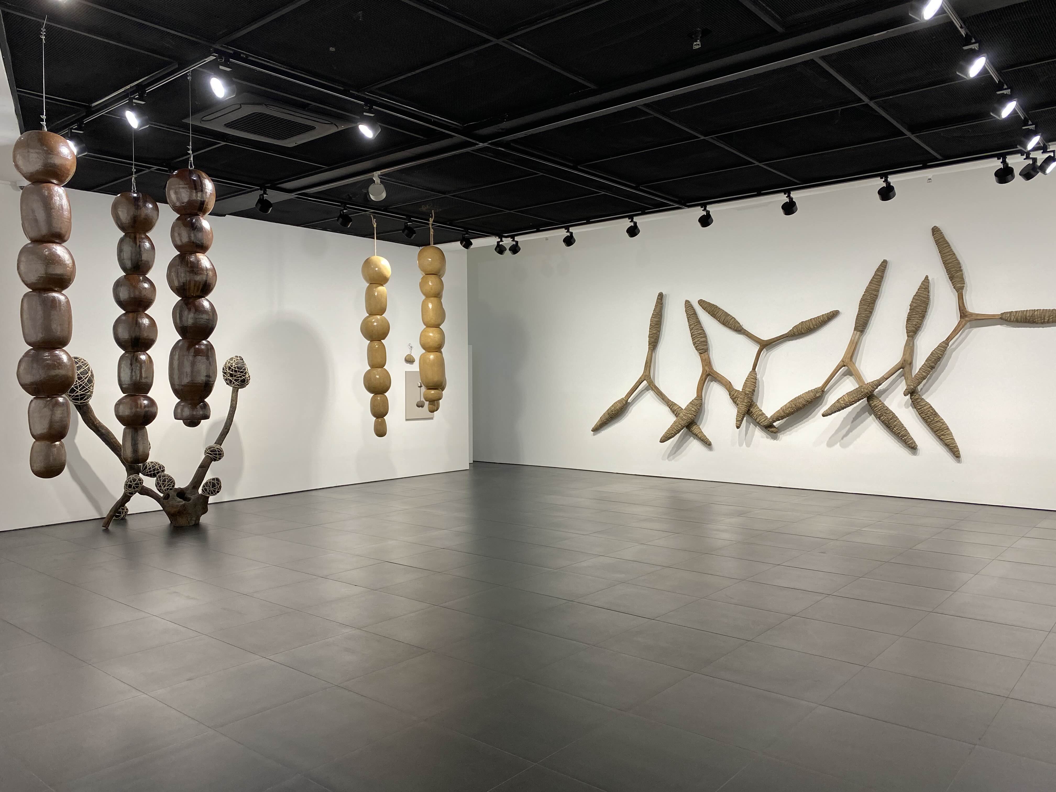 1층 전시장은 묶음 연작의 핵심 재료로써 ‘역설의 시각화’를 담당하는 노끈을 활용한 <종이 판화>, <매어진 백자>, <매어진 캔버스>, <노끈 캔버스> 시리즈의 대표작들로 구성된다. 2층 전시장에서는 고서와 돌, 도자기를 오가는 ‘묶음’ 시리즈의 끝없는 변주를 확인한다. 관람객은 수많은 작품이 집적된 작가의 작업실을 닮은 모습으로 연출된 공간에서 형식과 맥락이 서로 이어지되 끊임없이 변화하는 작품의 흥미로운 양상을 조망할 수 있다. 노끈에 매인 흔적을 선명하게 드러내는 ‘묶기’ 작업과 노끈으로 캔버스를 단순히 둘러 매는 <매어진 캔버스>는 이내 노끈이 아닌 머리카락 등 다른 재료에 매인 캔버스 작업으로 이어진다. 지하 전시장은 ‘비조각’의 출발점이 되는 작품 <고드랫돌>(1957/1960년대)과 ‘묶기’ 어법이 적용된 대형 스케일의 작업 <오지> 등이 전시된다. 이 공간의 관전 포인트는 재료의 본래의 성질과 상관없이 물렁물렁해 보이는 작업들을 마주하는 우리의 눈과 뇌 사이의 거리다.