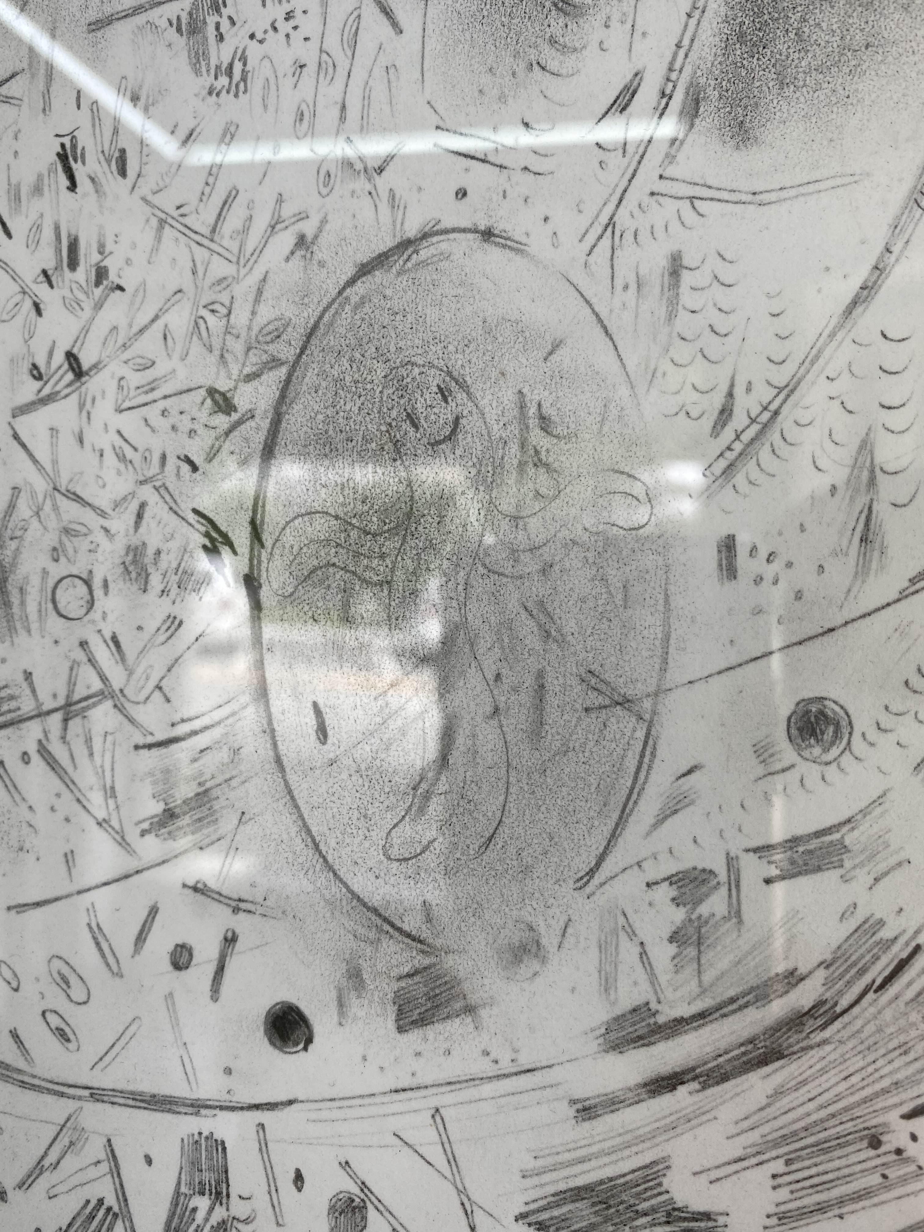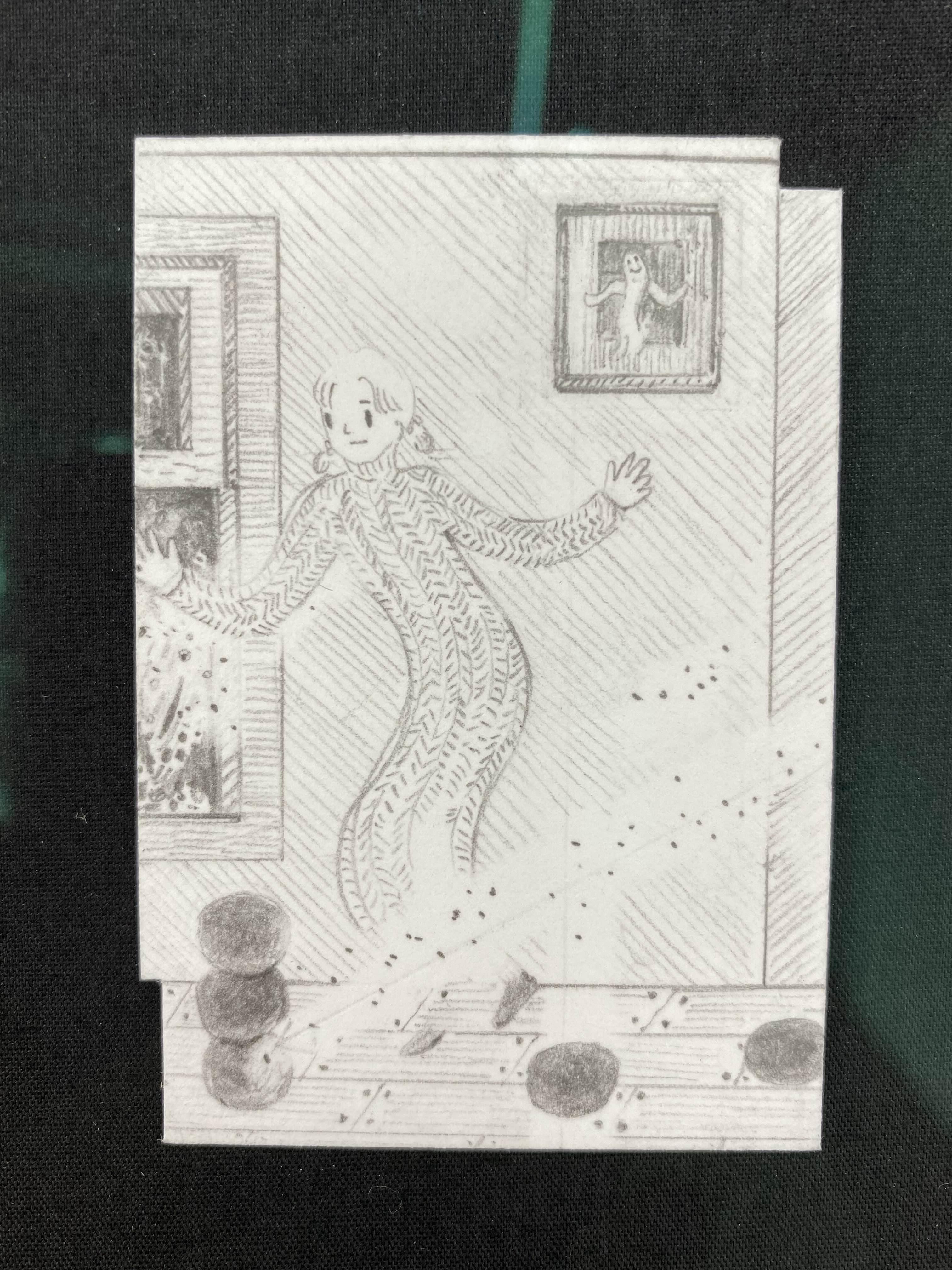 아이를 밴 시간 동안 작가는 양가적인 감정을 한 몸에 안고 있었다. 그래서 “무서운데 재미있고, 즐거운데 짜증 나며, 기쁜데 슬펐다”고 말한다. 전시의 제목을 의태어로 삼은 것은 일단 여러 감정들이 자기 안에서 동시다발적으로 일어나는 움직임을 포착하기 위함이었을지도 모른다. 꿀렁꿀렁하고 쑤욱쑤욱하고 쓰윽쓰윽하게 몸 안팎의 변화가 일어나고 있음을 작가는 원거리에서 의태어로 적는다. 그리고 근거리의 결들은 다시 드로잉으로 정돈된다. 김미래는 자신의 몸 안쪽에서 여러 온도의 감정이 뒤섞이고 변하는 과정을 겪는다. (전시 서문 中)